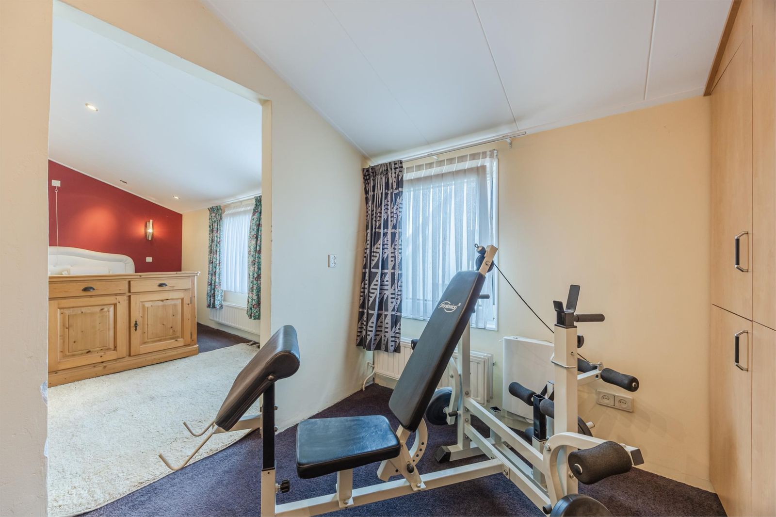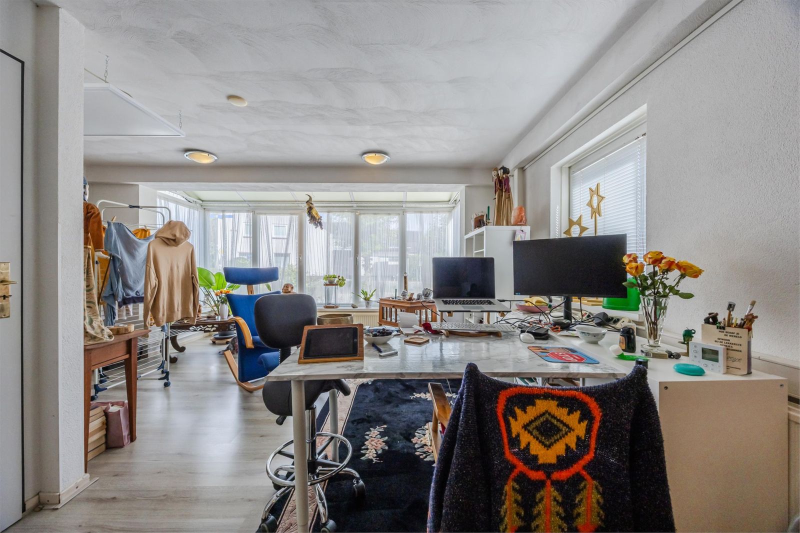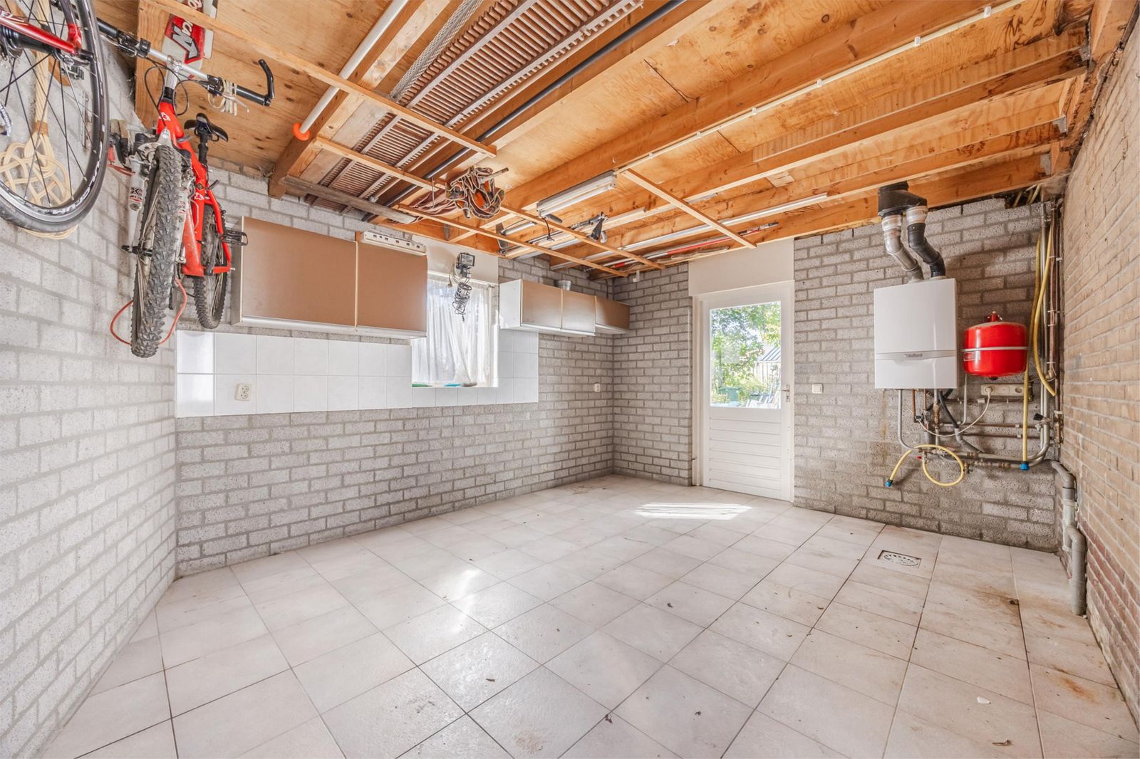 Een zelfstandige ruimte die momenteel wordt gebruikt als kantoor. Deze is ook prima in te richten als buitenkeuken of hobbyruimte. Een grote schuifpui geeft direct toegang tot de tuin.