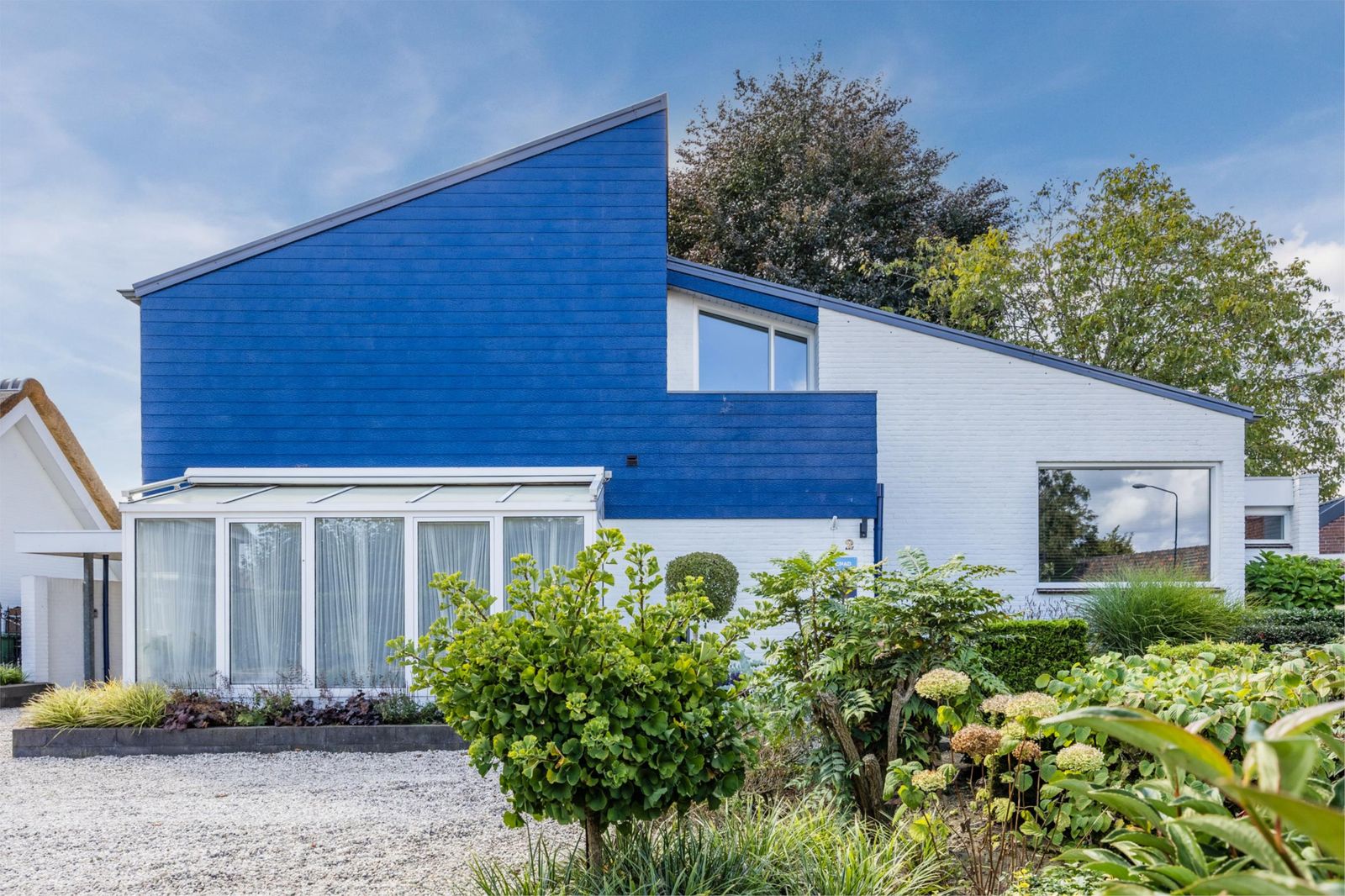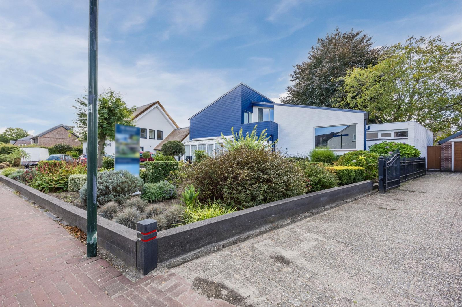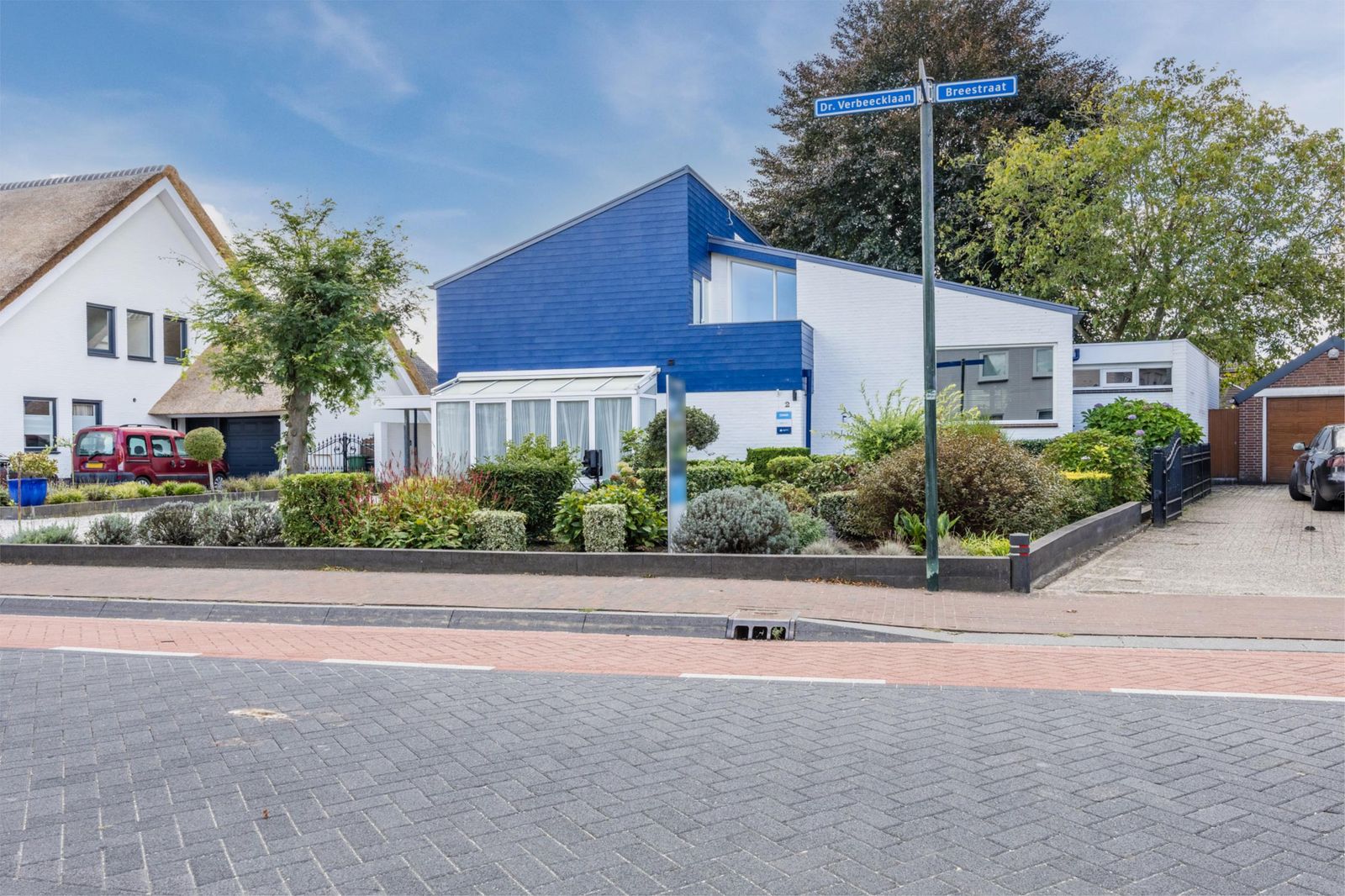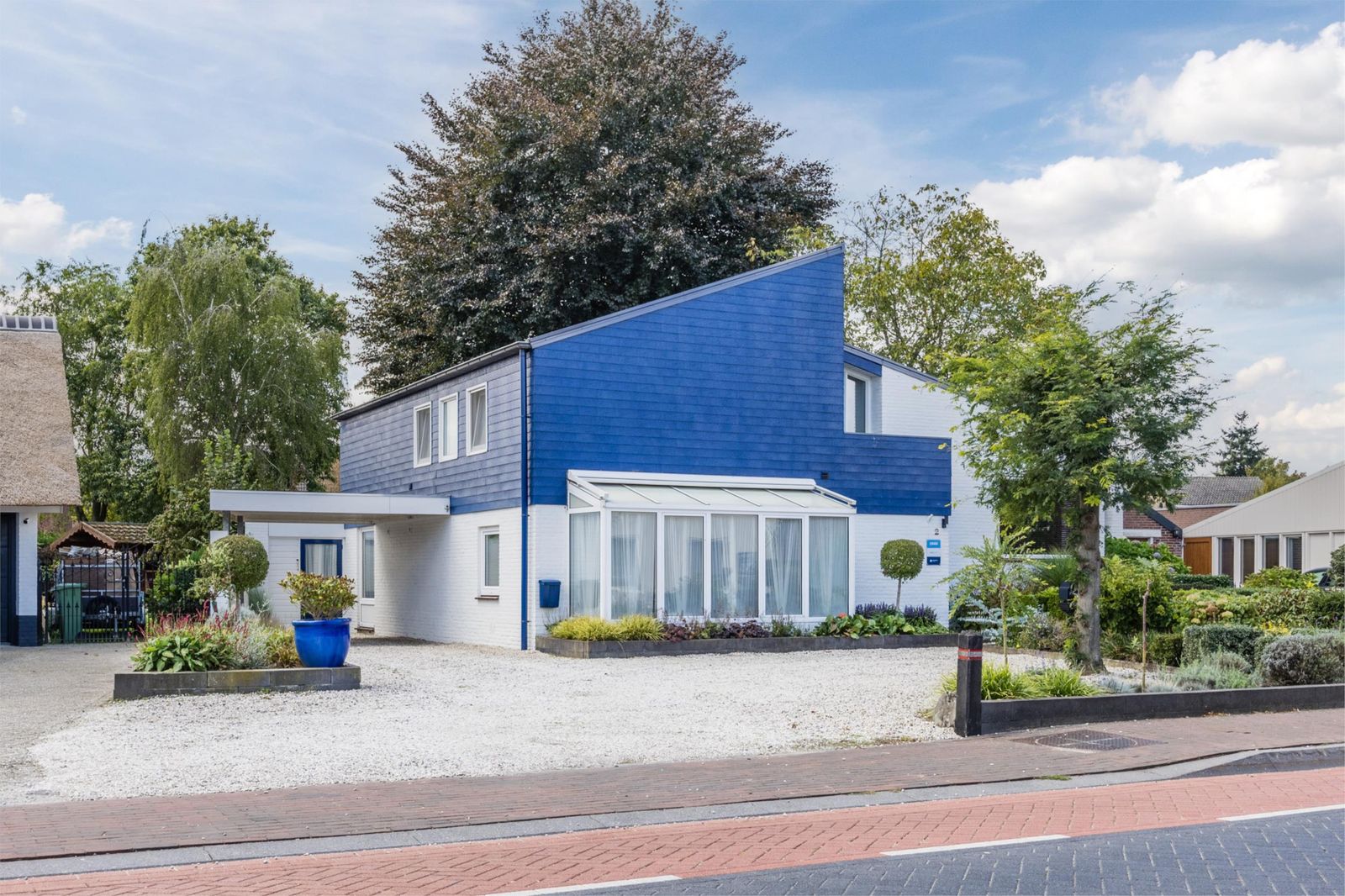 De voortuin is verzorgd aangelegd en biedt ruimte voor vier auto’s. Ook is er een eigen laadpaal voor elektrische voertuigen aanwezig.