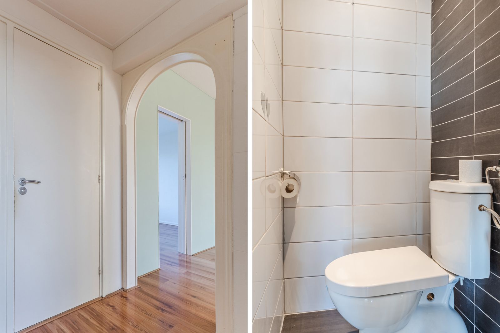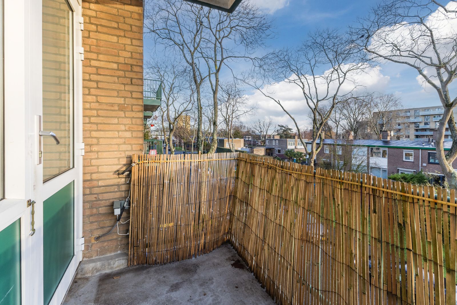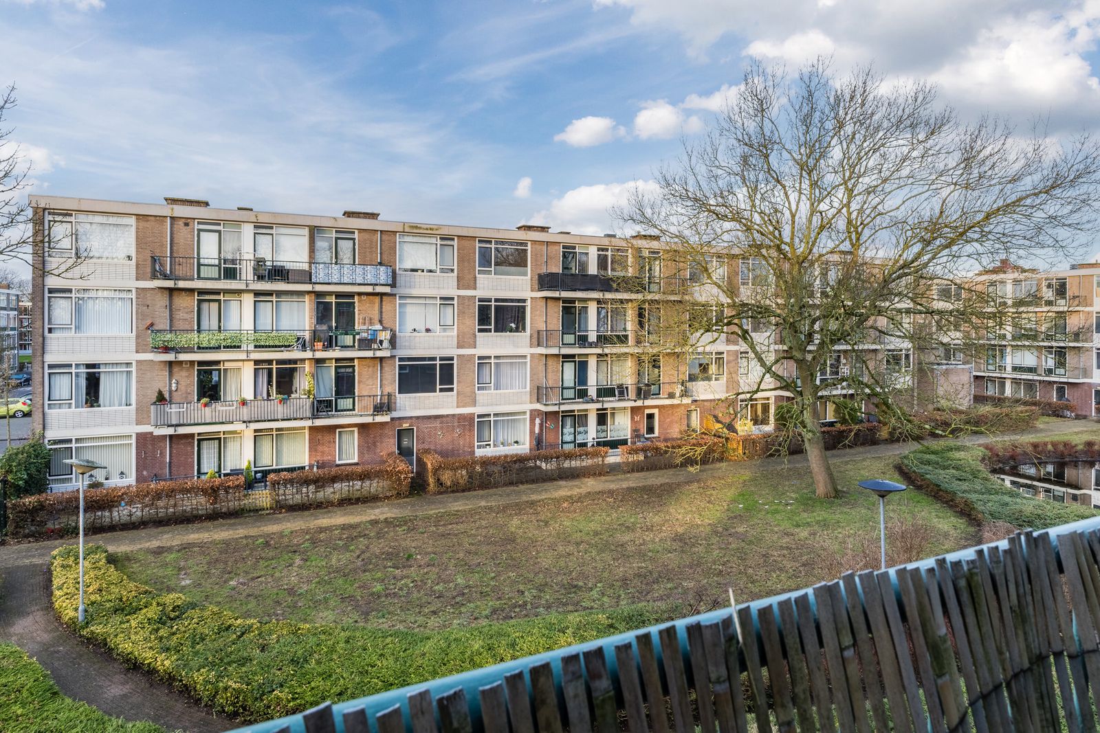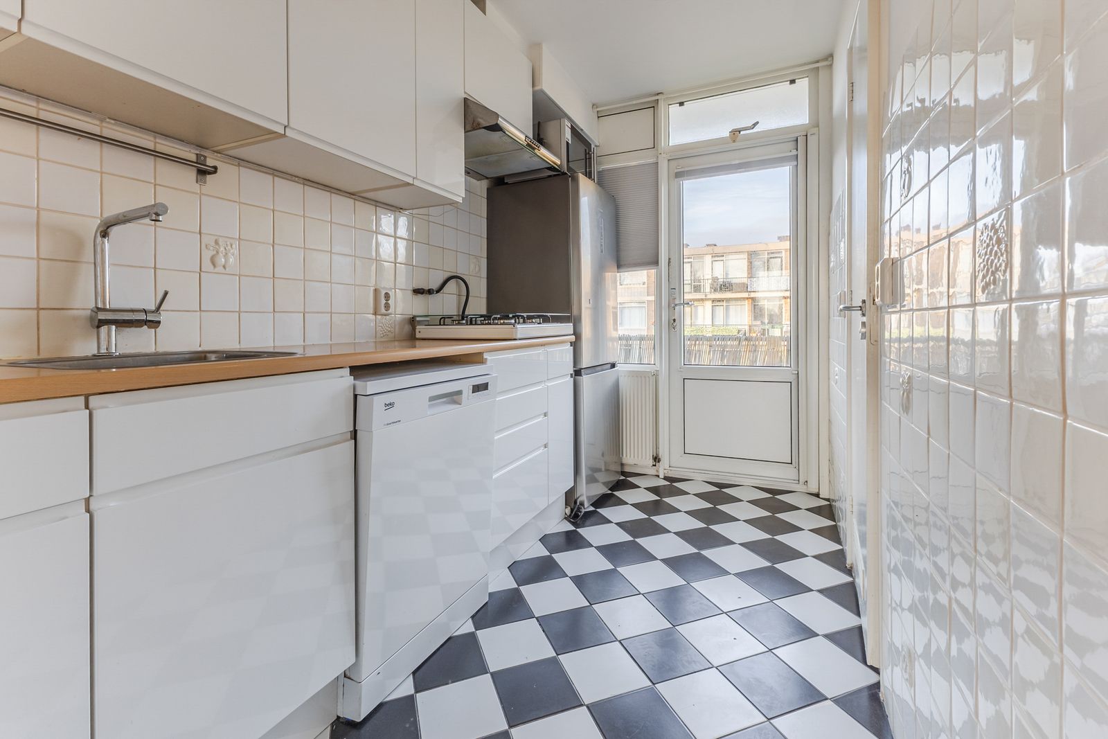 De keuken is uitgevoerd in een rechte opstelling en voorzien van afzuigkap en losse apparatuur, waaronder een 4-pits gaskookplaat, vaatwasmachine, combimagnetron en koel-/vriescombinatie. Vanuit de keuken is er toegang tot het balkon aan de achterzijde, gelegen op het westen, met vrij uitzicht over het plantsoen – een fijne plek om van de middag- en avondzon te genieten. Vanuit de keuken is tevens de badkamer bereikbaar.
