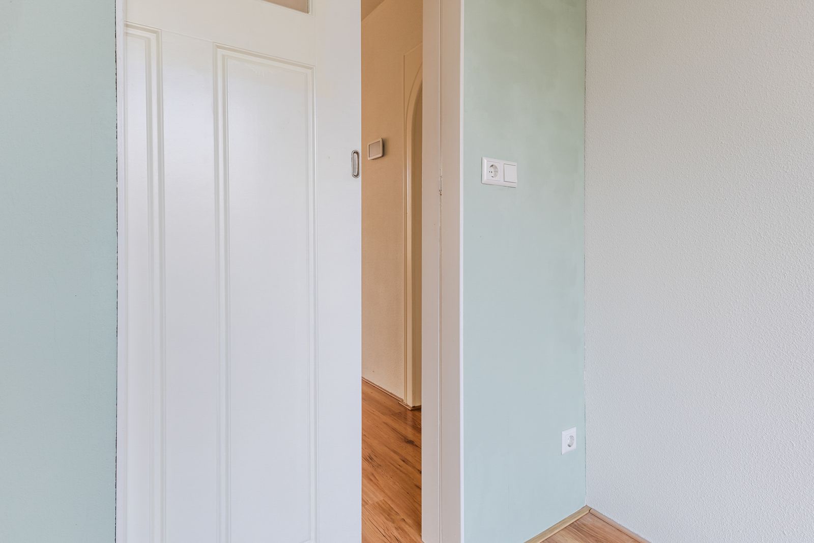 Slaapkamer 3 is gelegen aan de achterzijde, bereikbaar vanuit de hal en voorzien van een vaste kast.