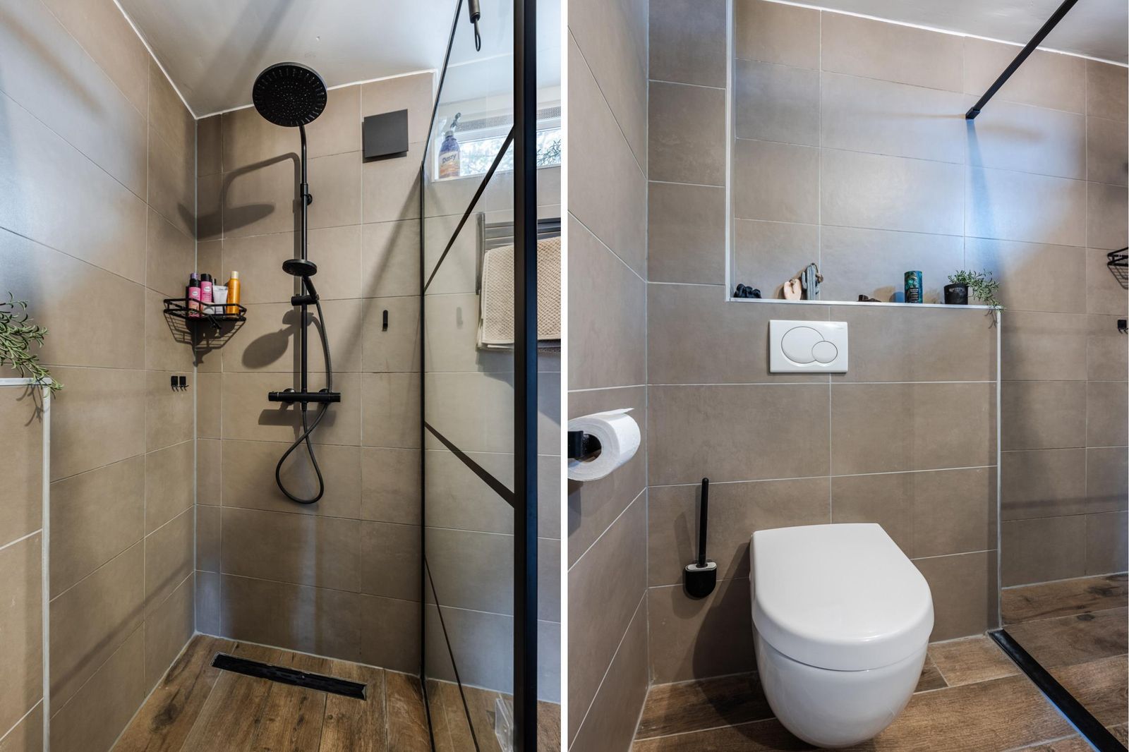 Boven drie slaapkamers en een moderne badkamer met inloopdouche. Op zolder ruime kamer die verdeeld is in twee ruimtes. Op de overloop voorzieningen voor wasmachine en droger.