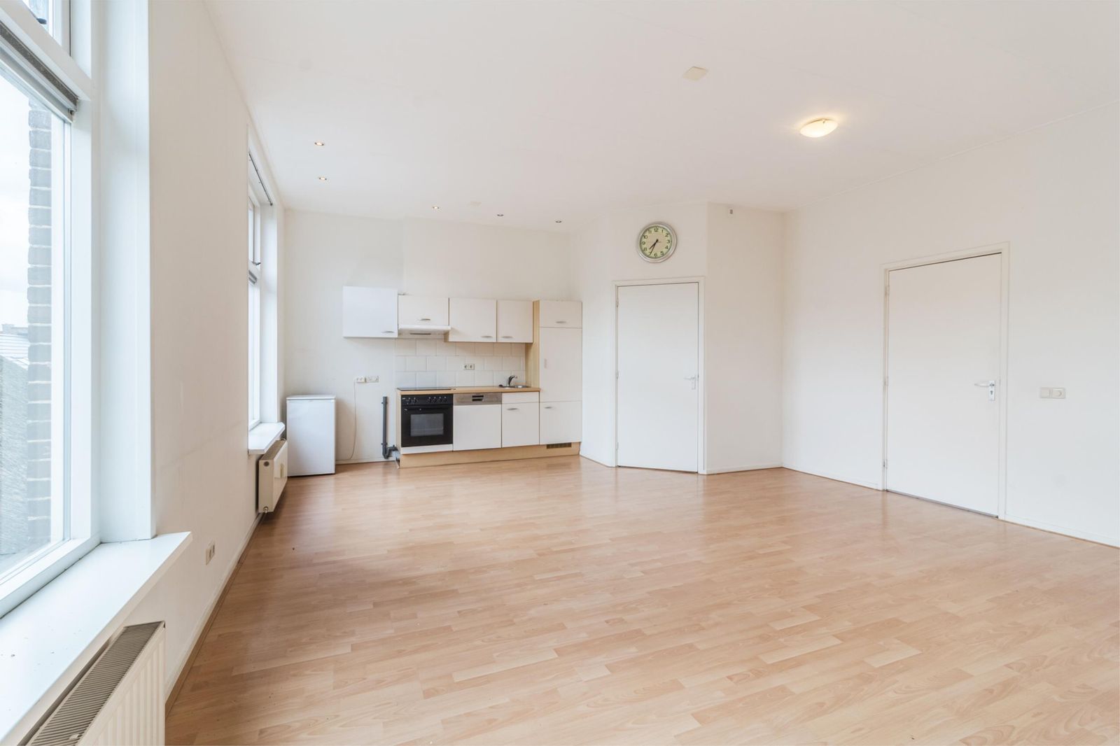 Entree, studio-appartement van totaal circa 40 m2 met twee zijramen met veel lichtinval (georiënteerd op het zuidoosten), open keuken v.v. rechte opstelling met o.a. vaatwasser, kookplaat, oven, afzuigkap en wasmachine-aansluiting.