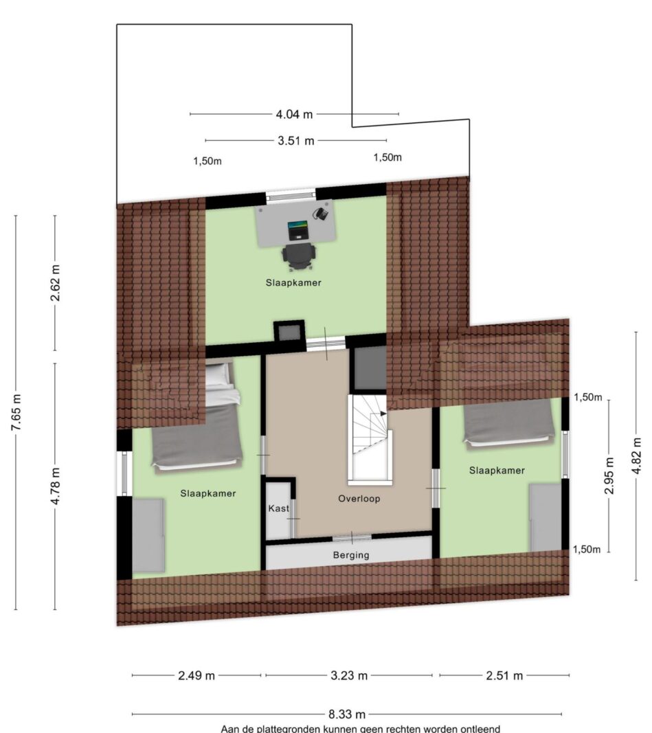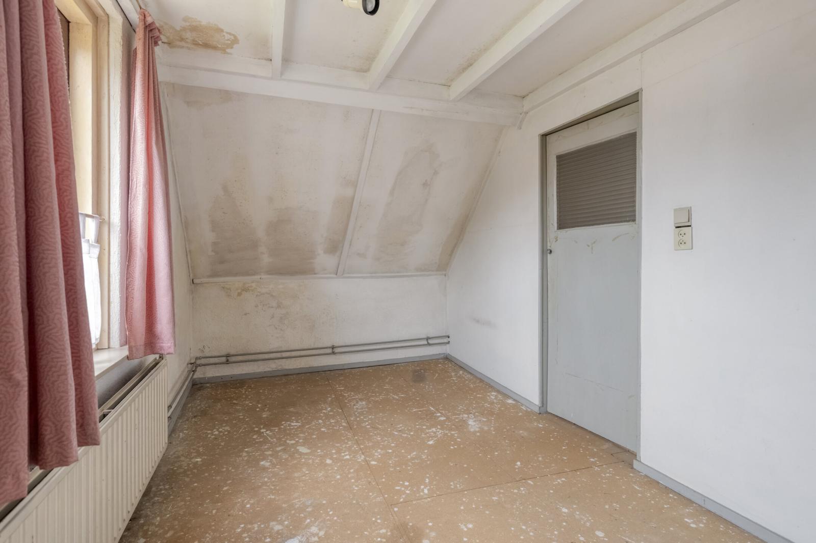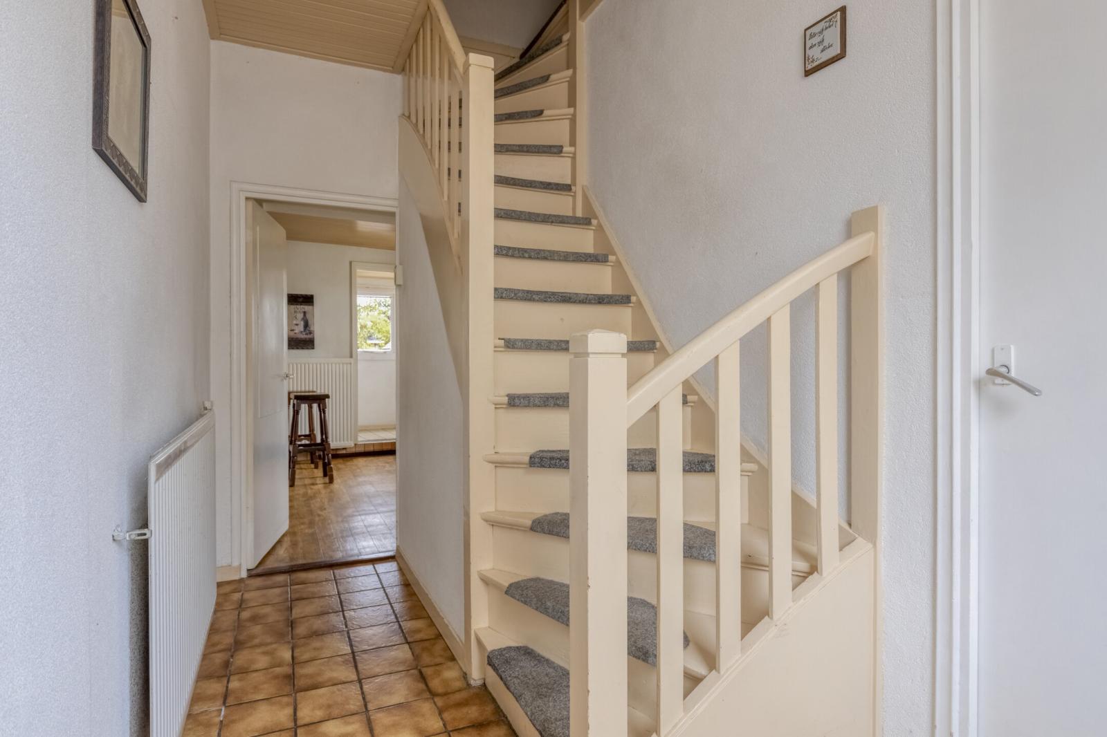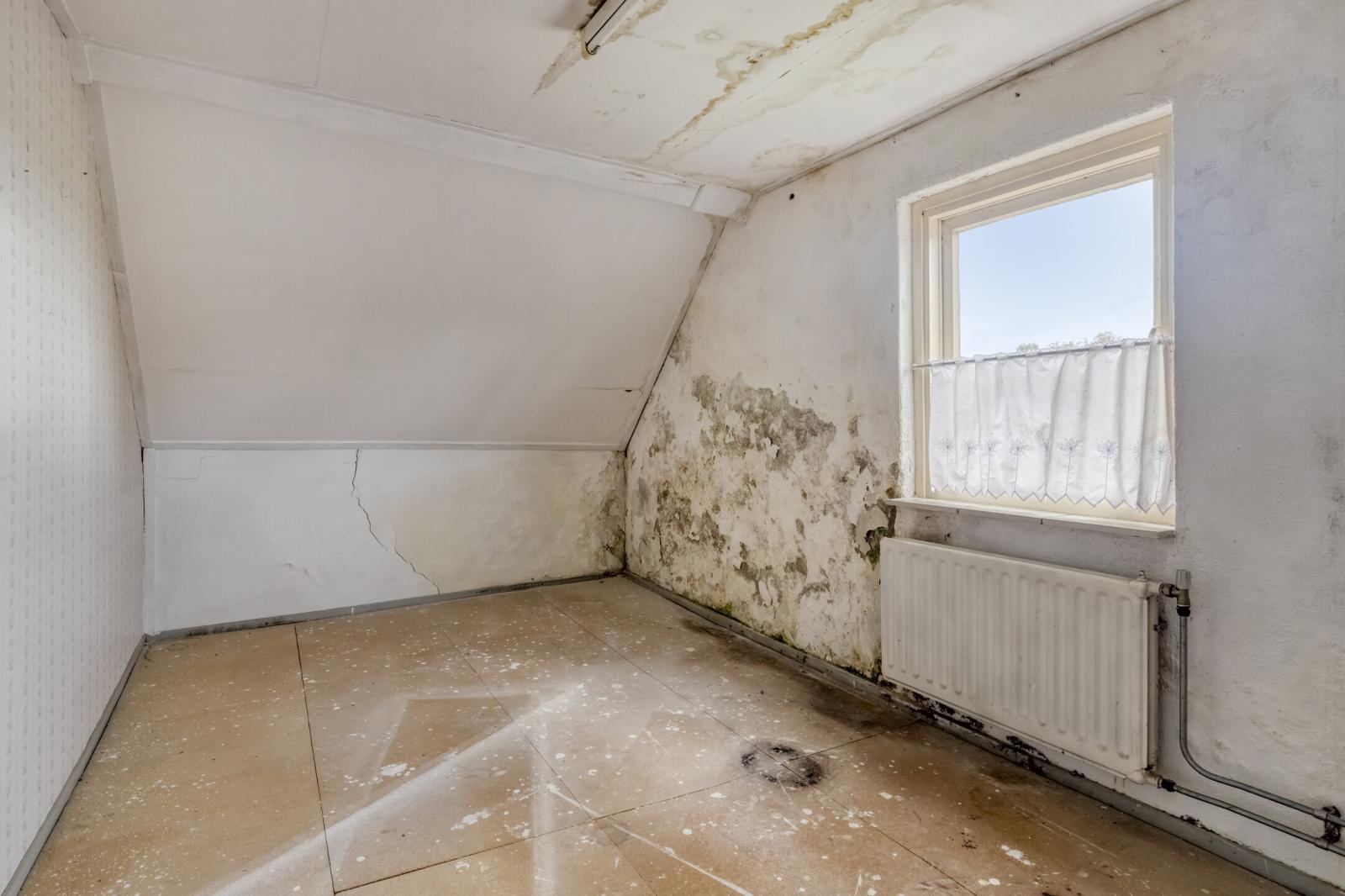 Via de trapopgang in de entreehal bereikt u de overloop met vaste kast en toegang tot drie slaapkamers en een berging. De slaapkamers en het dak zijn aan een grondige renovatie toe.