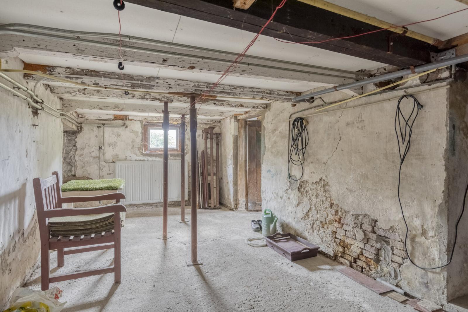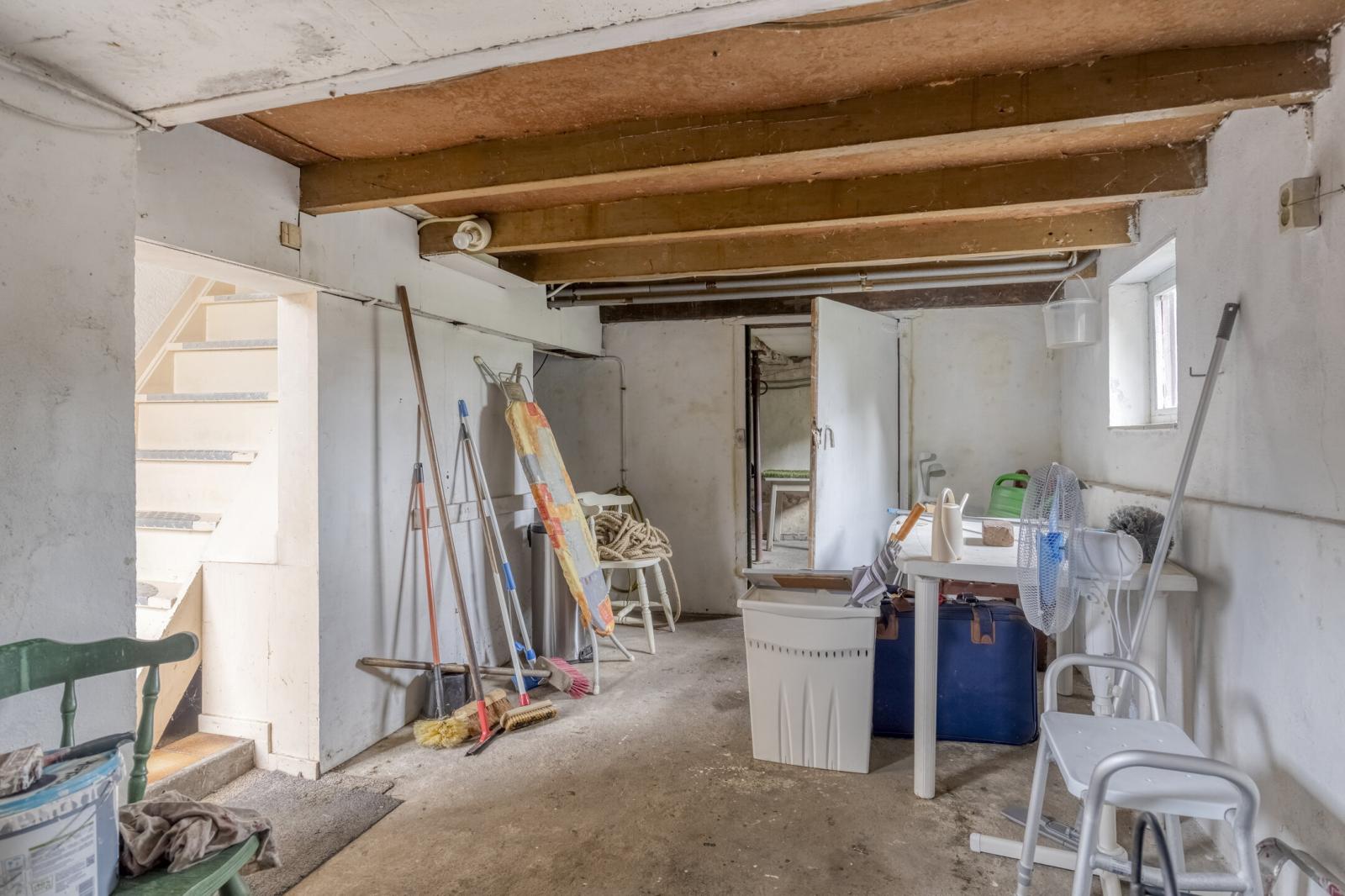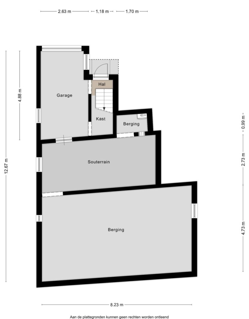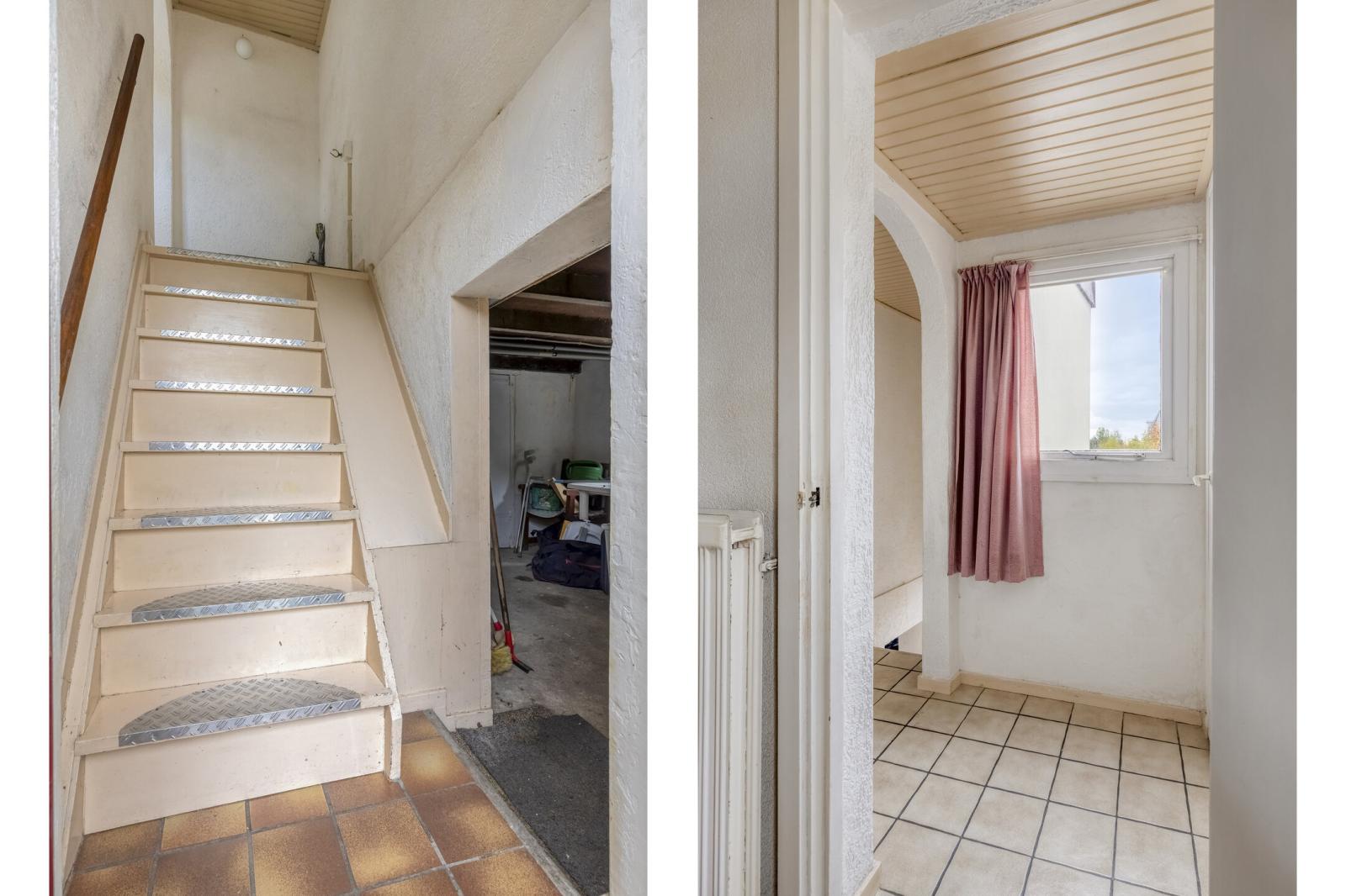 Vanuit de gang op de begane grond bereikt u via de trap het souterrain met daarin de achterdeur en de toegang tot de garage. Vanuit de garage bereikt u de zeer ruime berging met een beperkte hoogte, die nagenoeg onder het gehele huis doorloopt. In deze ruimte is de cv-combiketel opgesteld.