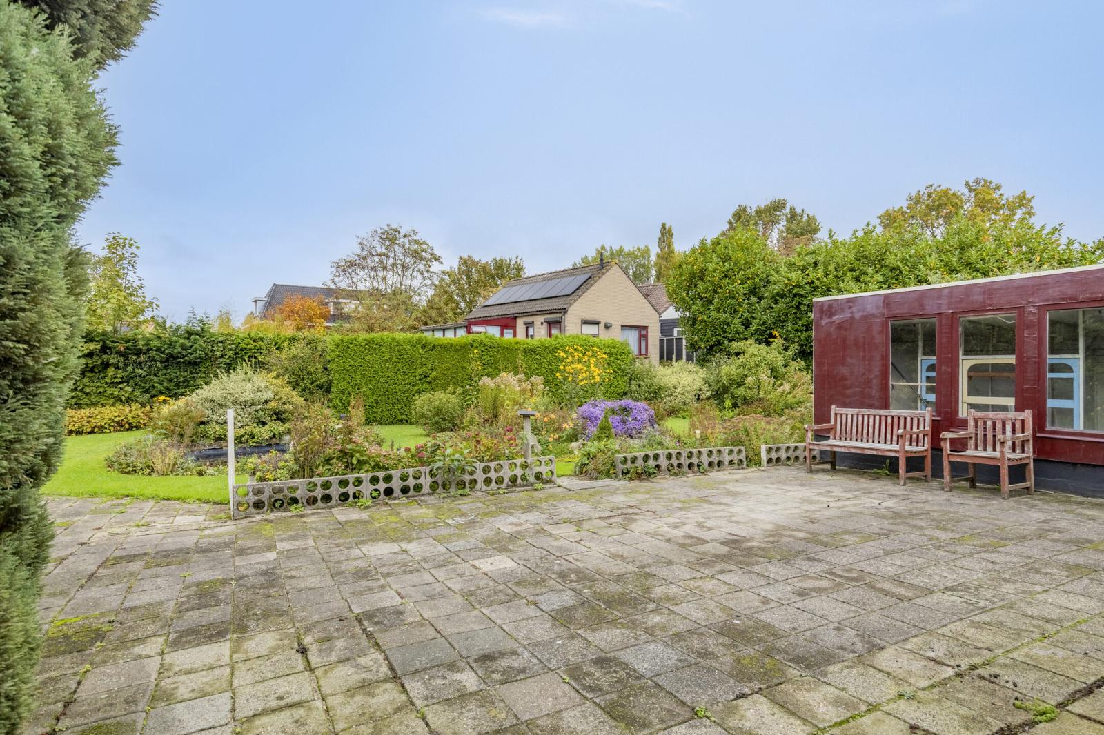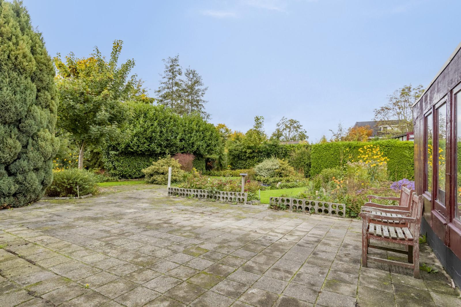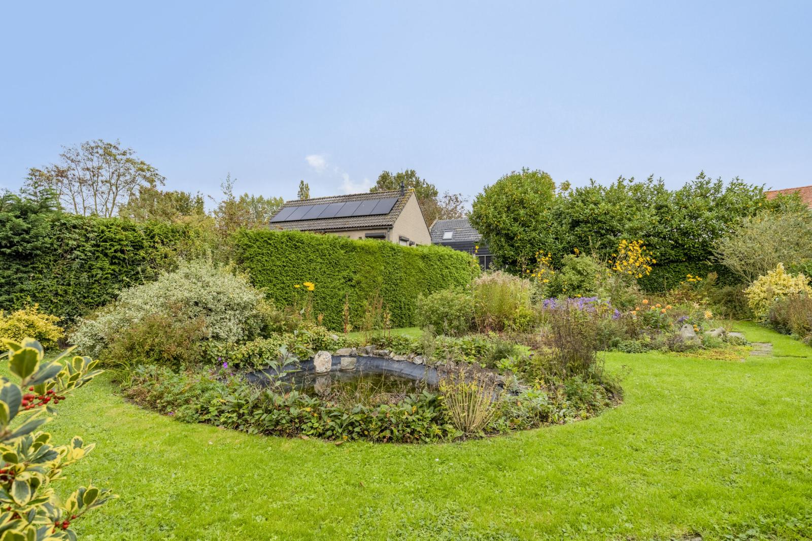 In de achtertuin bevindt zich een ruime berging. De achtertuin heeft een leuke vijver met daaromheen diverse vaste planten en een zeer ruim gazon-gedeelte. Aan de zuidkant van de tuin bevindt zich een beschut gedeelte bomen en een wandelpad. Het perceel biedt voldoende mogelijkheden om (evt. vergunningsvrij) nog meer bouwwerken te realiseren (overkapping/schuur).