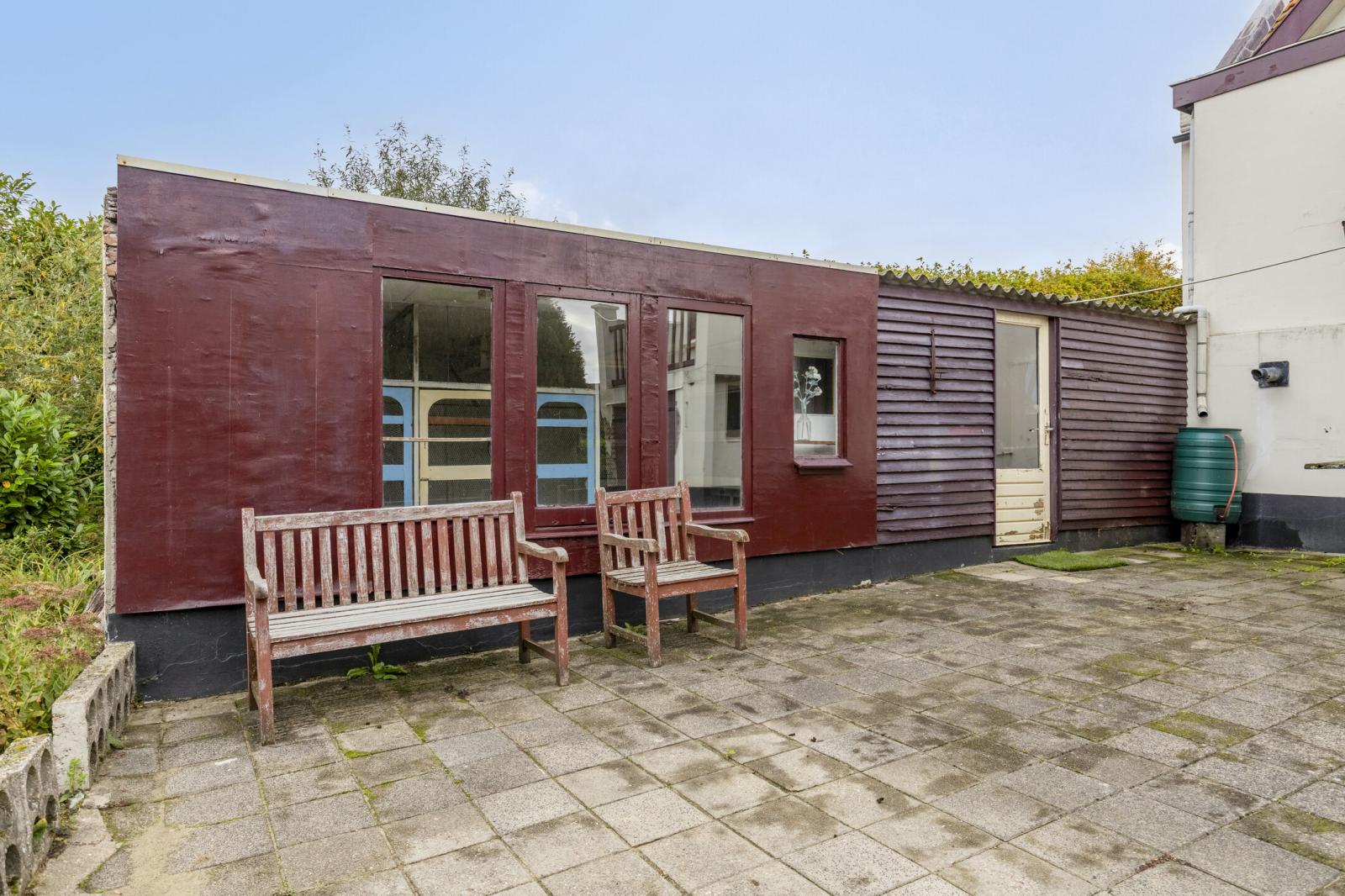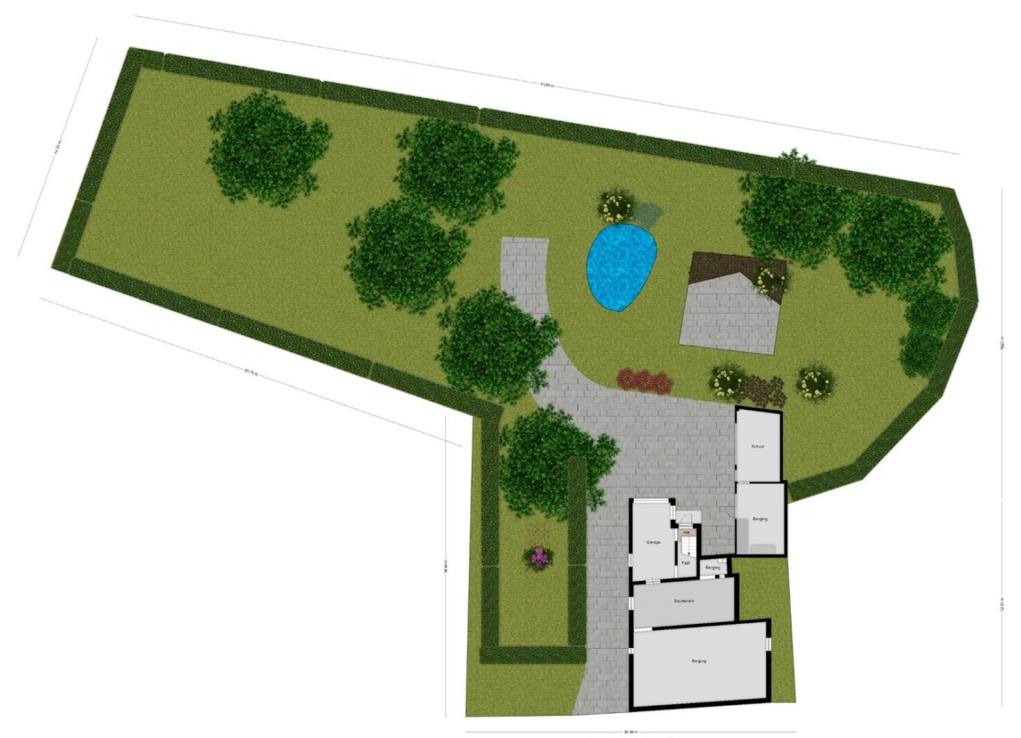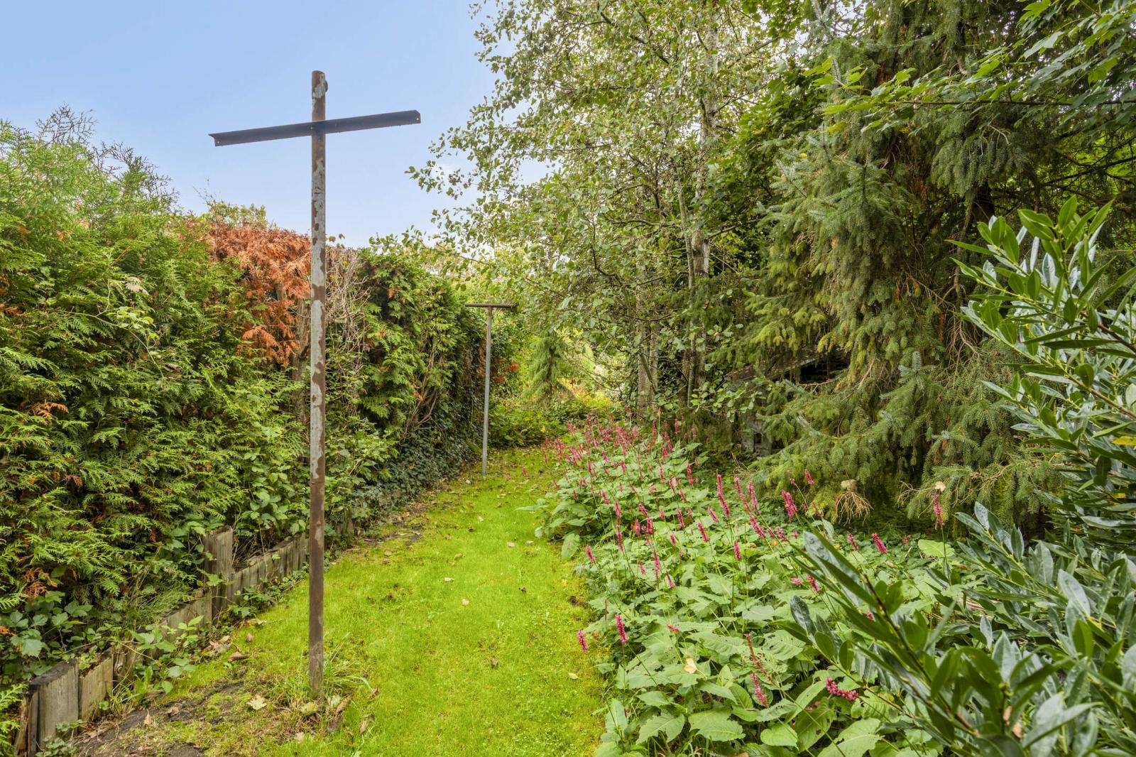 In de achtertuin bevindt zich een ruime berging. De achtertuin heeft een leuke vijver met daaromheen diverse vaste planten en een zeer ruim gazon-gedeelte. Aan de zuidkant van de tuin bevindt zich een beschut gedeelte bomen en een wandelpad. Het perceel biedt voldoende mogelijkheden om (evt. vergunningsvrij) nog meer bouwwerken te realiseren (overkapping/schuur).