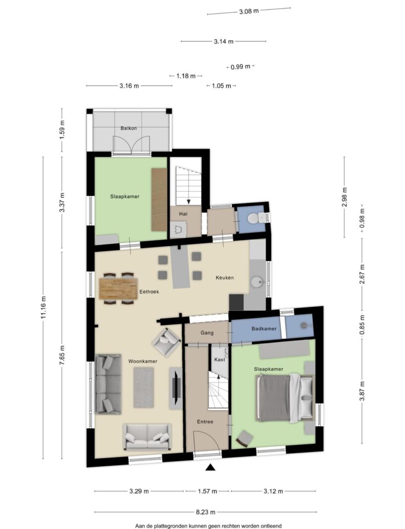 Via de voordeur komt u in de ontvangsthal. Hier bevinden zich de toegang tot de slaapkamer, de woonkamer met open keuken en de trapopgang naar de verdieping. Vanuit de woonkamer kijkt u uit over de zijtuin en over de landerijen. De woonkamer heeft sfeervolle houten togen en een bartafel tussen de woonkamer en de open keuken. Vanuit de woonkamer bereikt u een slaapkamer met balkon op de begane grond die uitziet op de achtertuin. Vanuit de keuken hebt u toegang tot de gang met daarin de trap naar het souterrain beneden en de toegang tot het toilet. Aan de andere kant van de keuken hebt u toegang tot de badkamer en de grote slaapkamer op de begane grond.