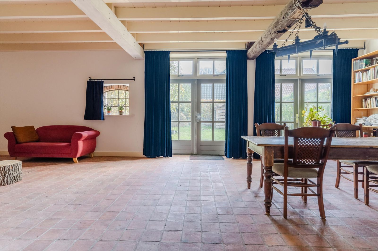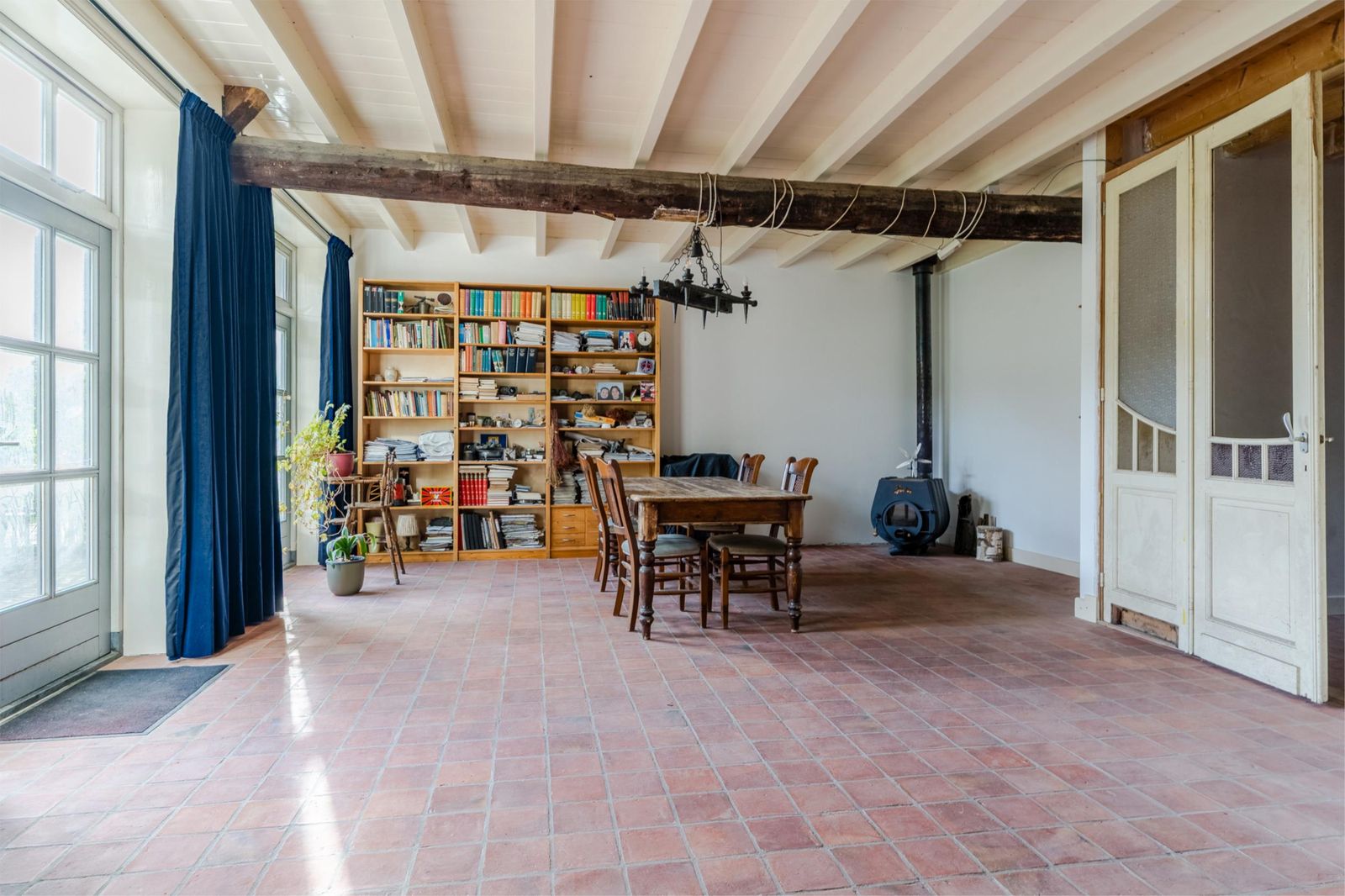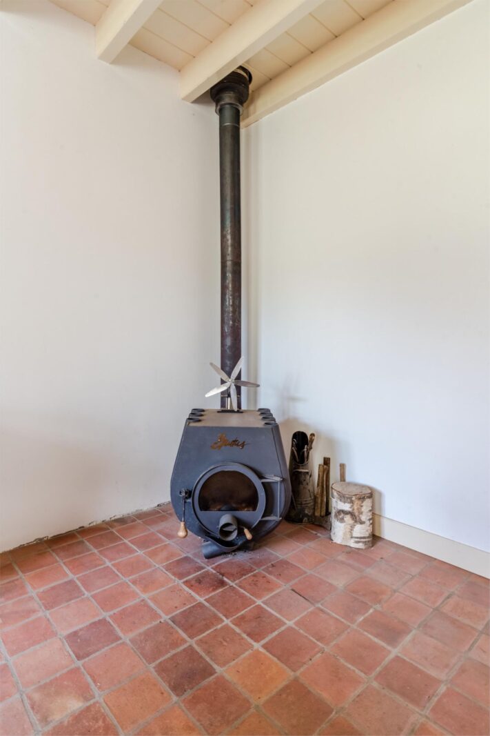 De huiskamer heeft vier openslaande deuren die uitzicht en toegang geven tot de tuin. De huiskamer heeft een oppervlakte van 52 vierkante meter en veel lichtinval door de tuindeuren op het zuidoosten. Een houtkachel in een hoek van de huiskamer zorgt niet alleen voor verwarming, maar ook voor een gemoedelijke sfeer.