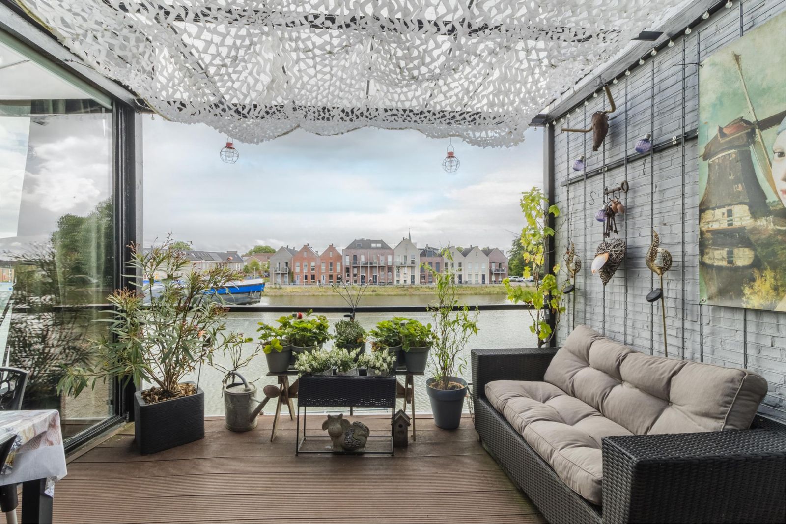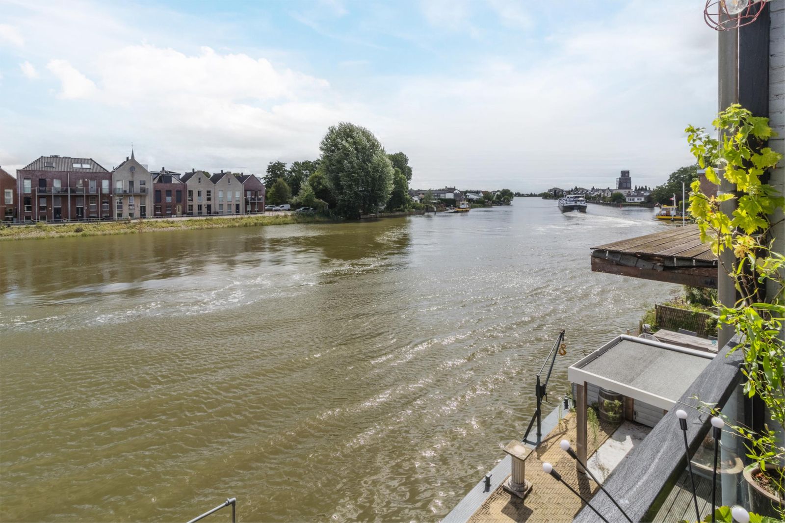 Geniet het hele jaar door van het buitenleven. Vanaf je terras van ca. 9 x 3 meter kijk je uit over de rivier en zie je het waterleven aan je voorbijtrekken. Rust, vrijheid en uitzicht – elke dag opnieuw.