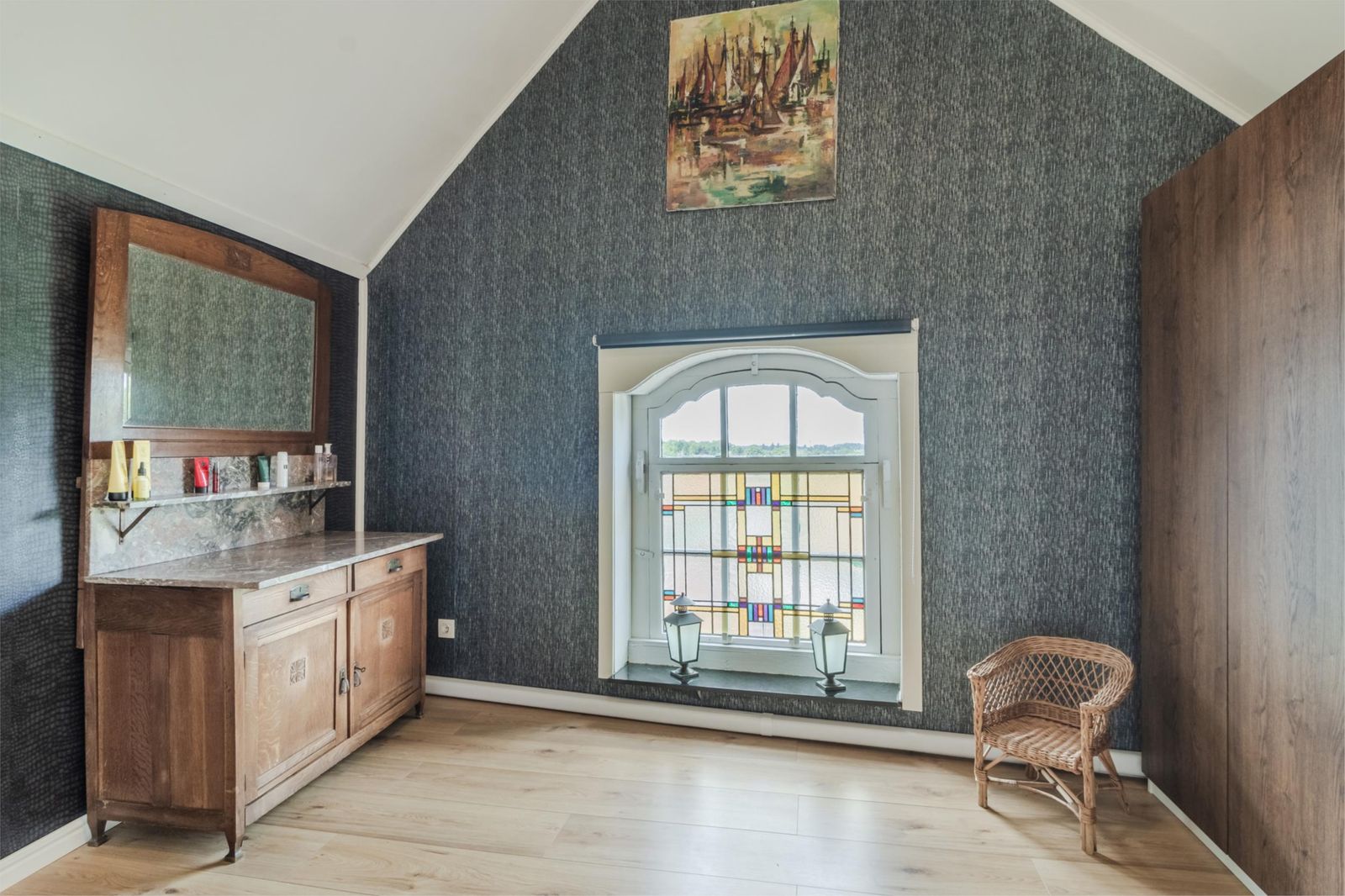 •Master bedroom ca. 5,50 x 3,50 m, aan de rivierzijde, voorzien van airco en toegang tot het platte dak (mogelijkheid voor dakterras)