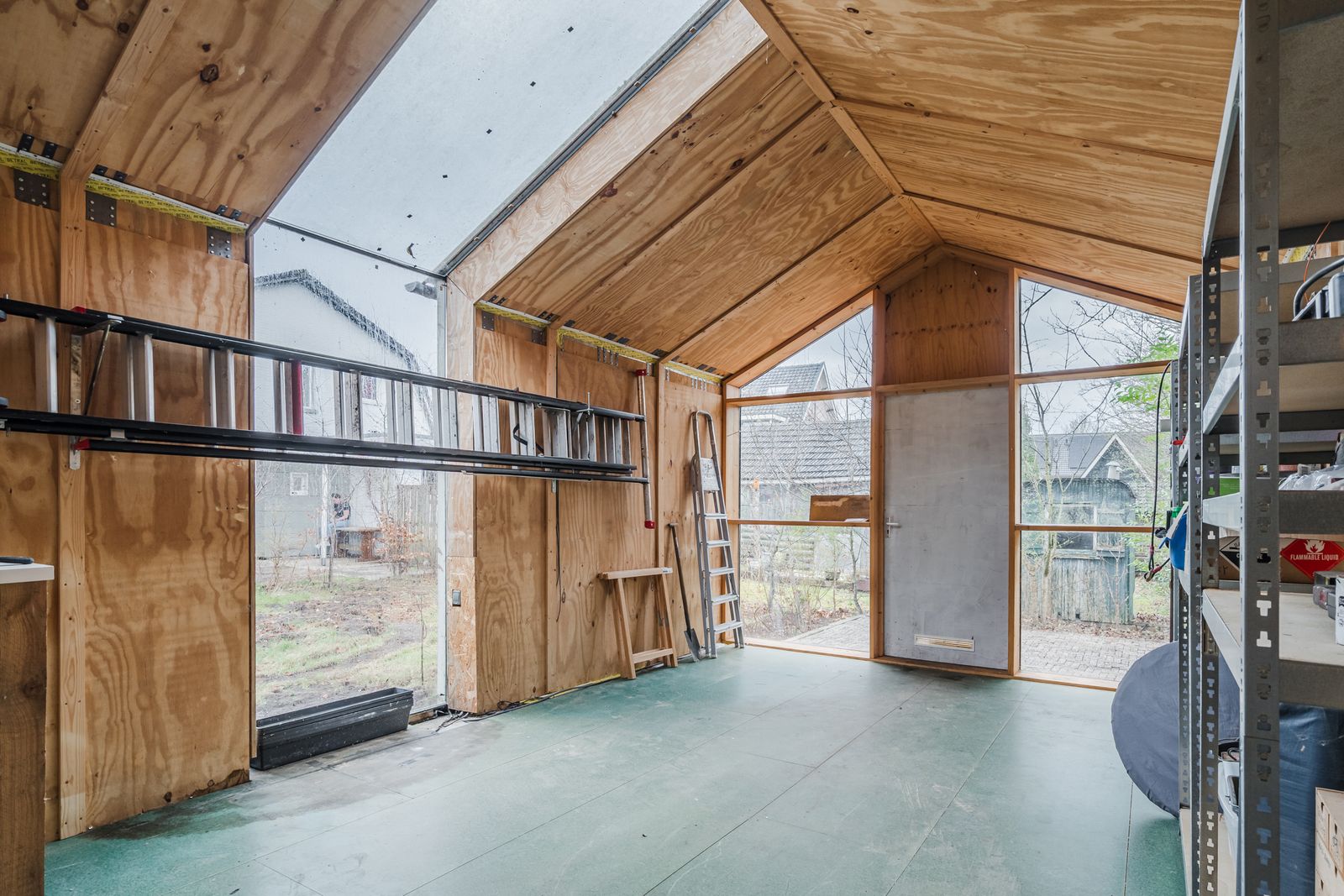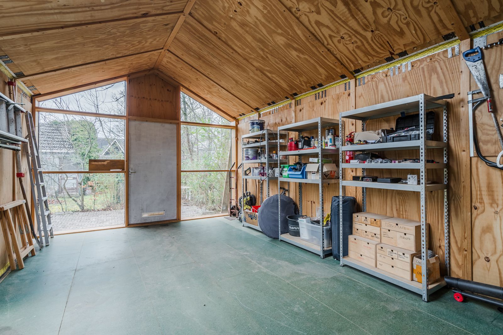 Het moderne bijgebouw (2020) is volledig geïsoleerd en voorzien van elektra, verlichting en ventilatie. Perfect als thuiswerkplek, atelier of hobbyruimte.