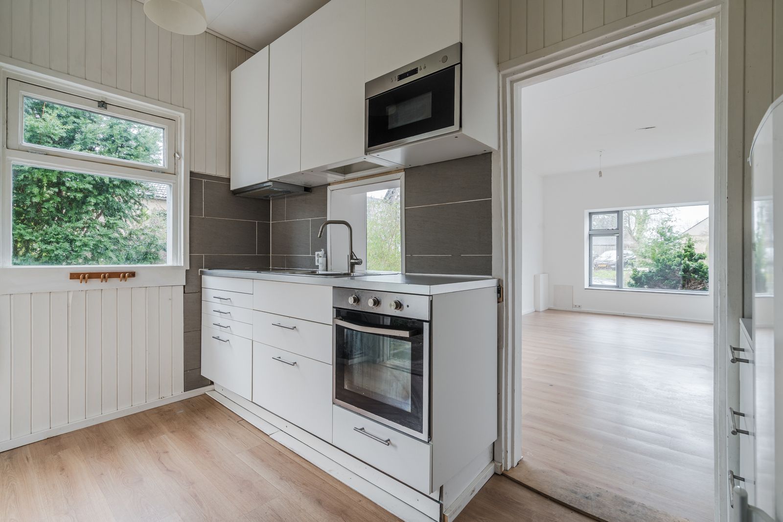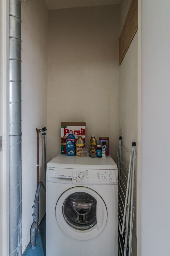 Begane grond: Via de achterentree bereikt u de keuken. De keuken (2019) is uitgerust met een inductiekookplaat, afzuigkap, oven en magnetron. De woonkamer is heerlijk licht en heeft een plafondhoogte van circa 3 meter, wat zorgt voor een extra ruimtelijk gevoel. Daarnaast bevindt zich op de begane grond een toilet met fonteintje. De gehele begane grond is voorzien van comfortabele vloerverwarming.