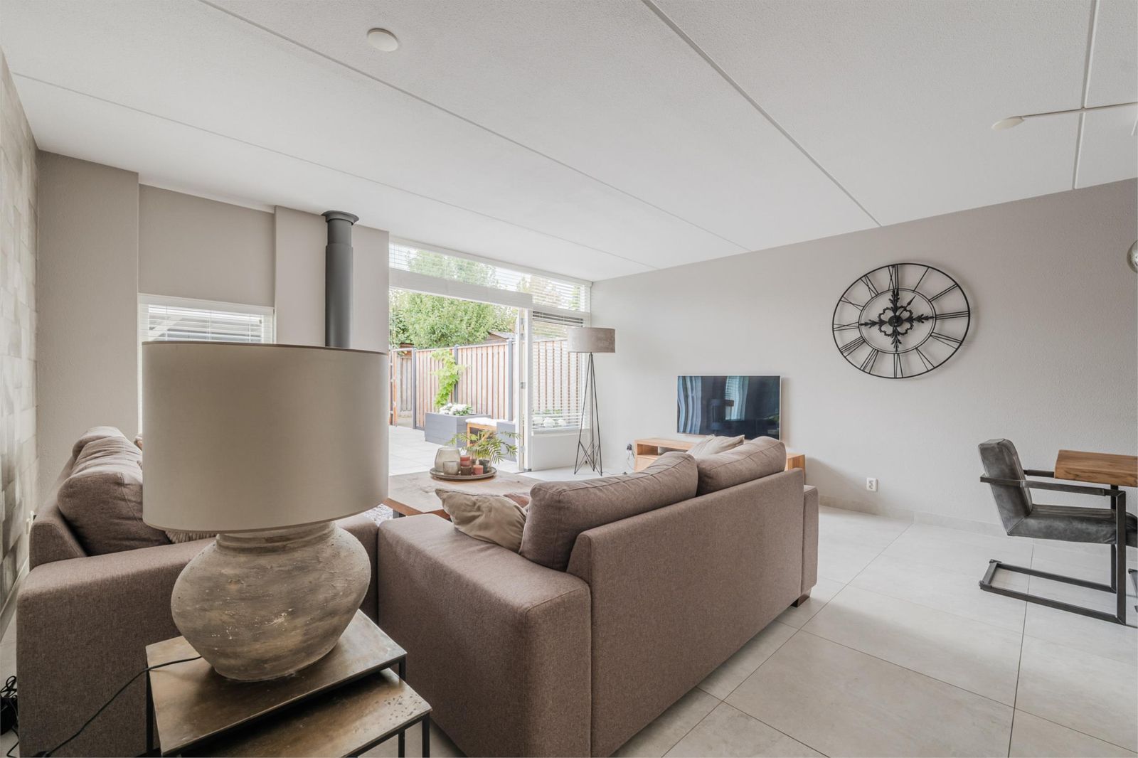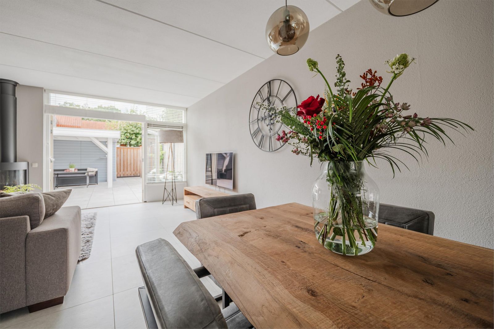 De uitgebouwde woonkamer is royaal en sfeervol, met veel lichtinval en een gezellige gaskachel. De gehele begane grond is in 2017 voorzien van vloerverwarming. Vanuit de openslaande deuren stap je de zonnige tuin in, compleet met zonwering, overkapping met verlichting en een berging met elektra. Een perfecte plek om het hele jaar door te genieten, van een zonnige zomeravond tot een knusse herfstdag.