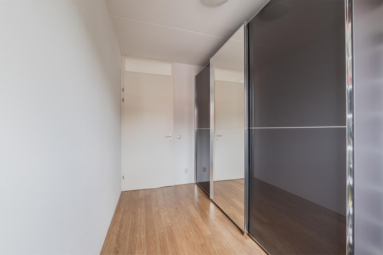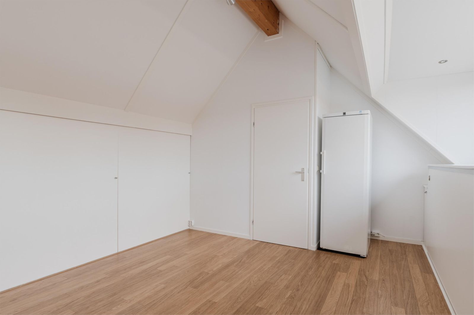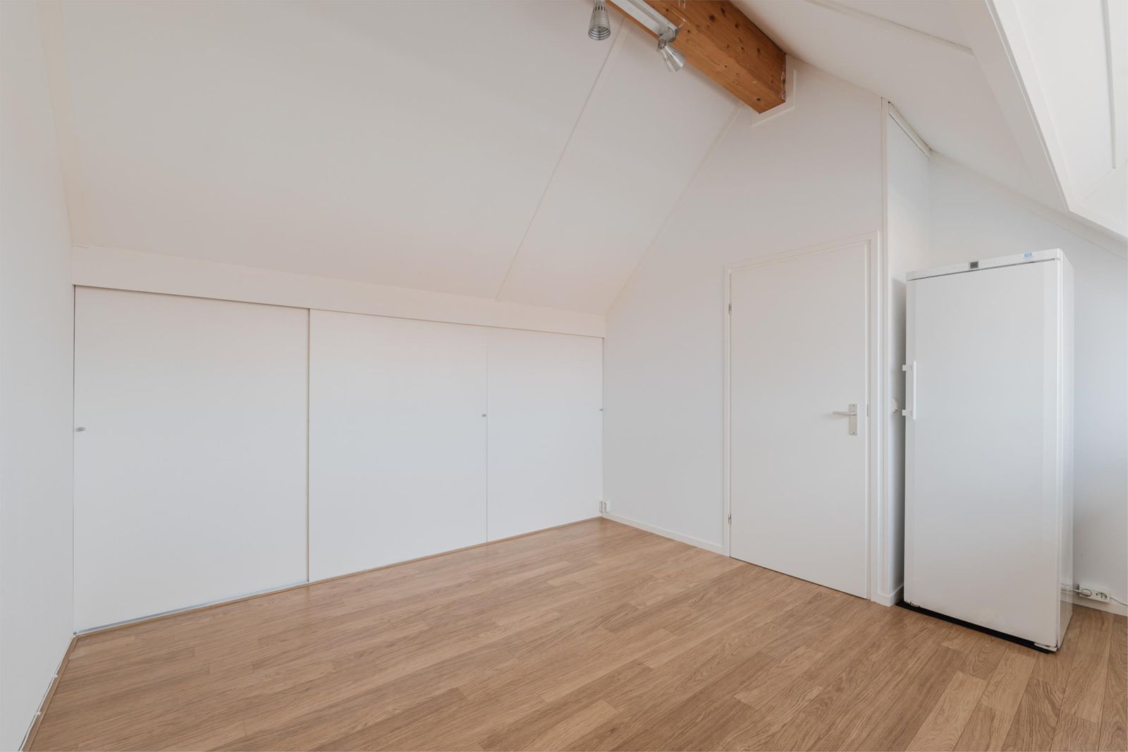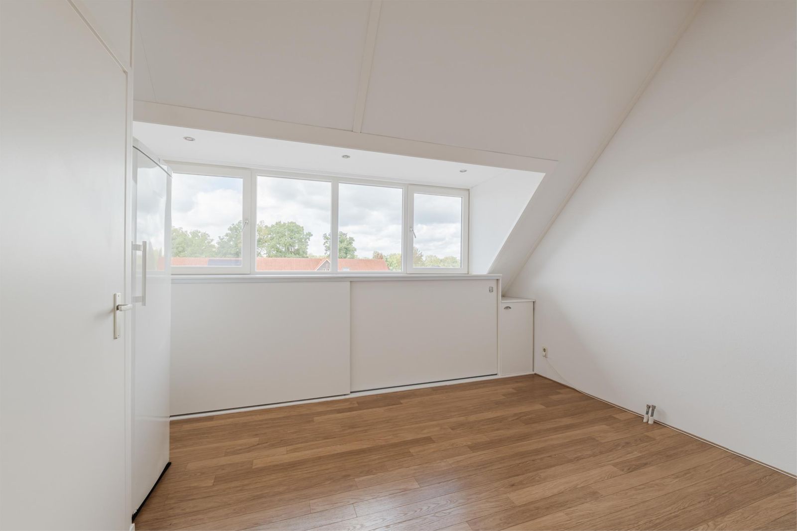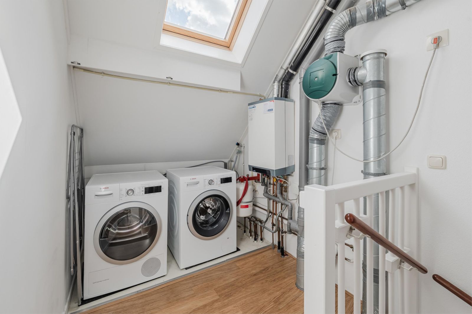 Hier bevindt zich de vierde slaapkamer met dakkapel voorzien van horren, rolluiken en vaste kastruimte aan beide zijden. Daarnaast is er een aparte was-/technische ruimte, praktisch en efficiënt.