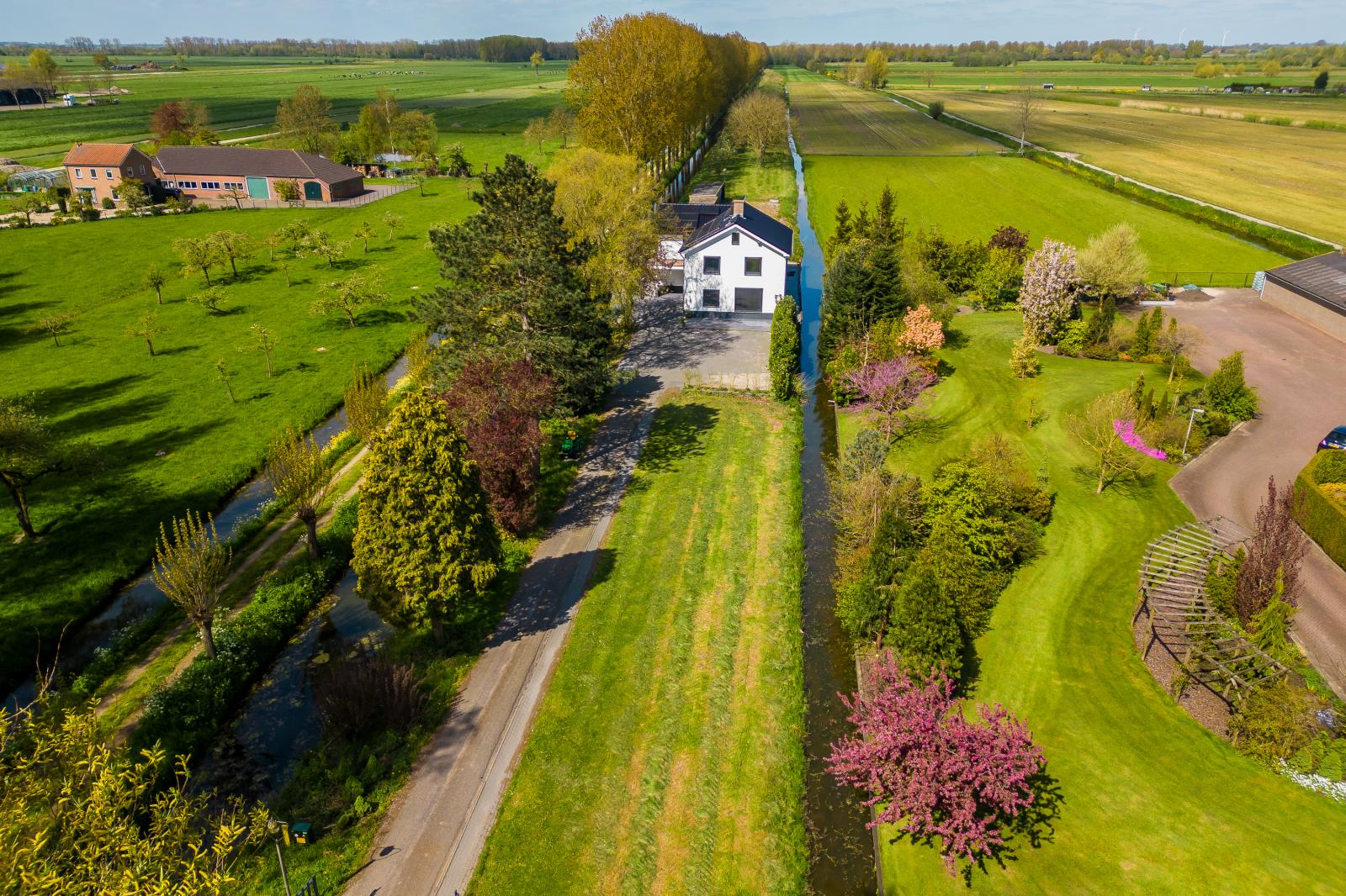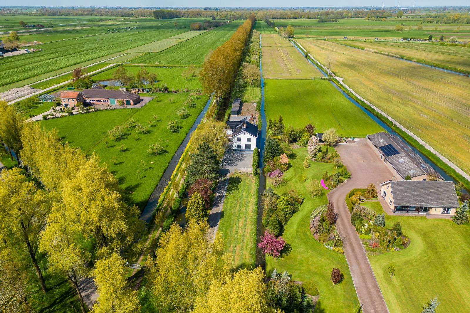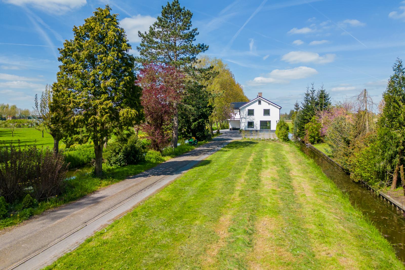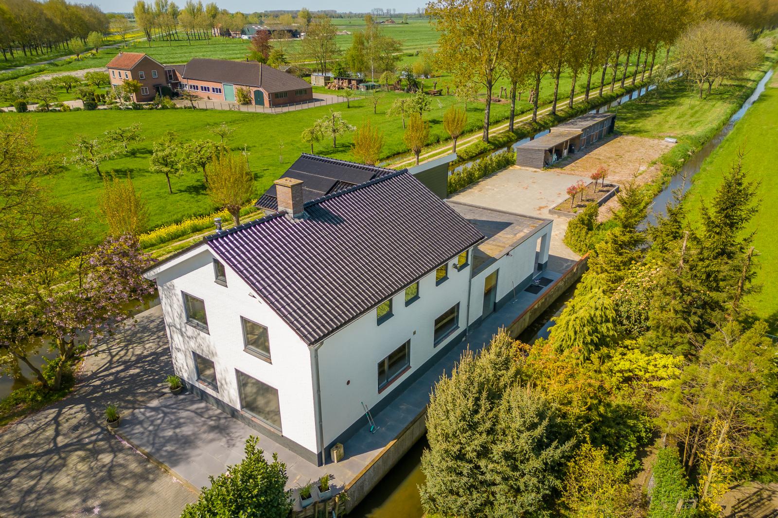 Rondom de woning ligt een fraai aangelegde tuin met meerdere terrassen, bijgebouwen en een boomgaard. Het royale perceel biedt diverse gebruiksmogelijkheden en een hoge mate van privacy. Hier ervaar je het buitenleven in alle rust en vrijheid.