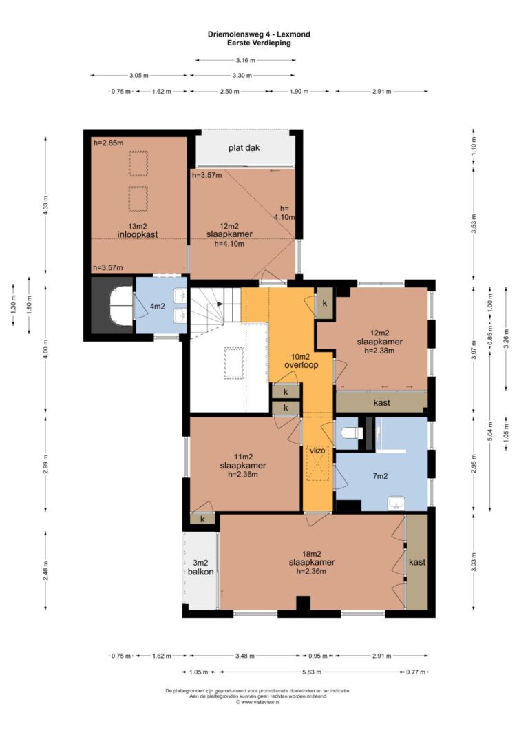 Vijf slaapkamers, waarvan twee met balkon en twee met inloopkast