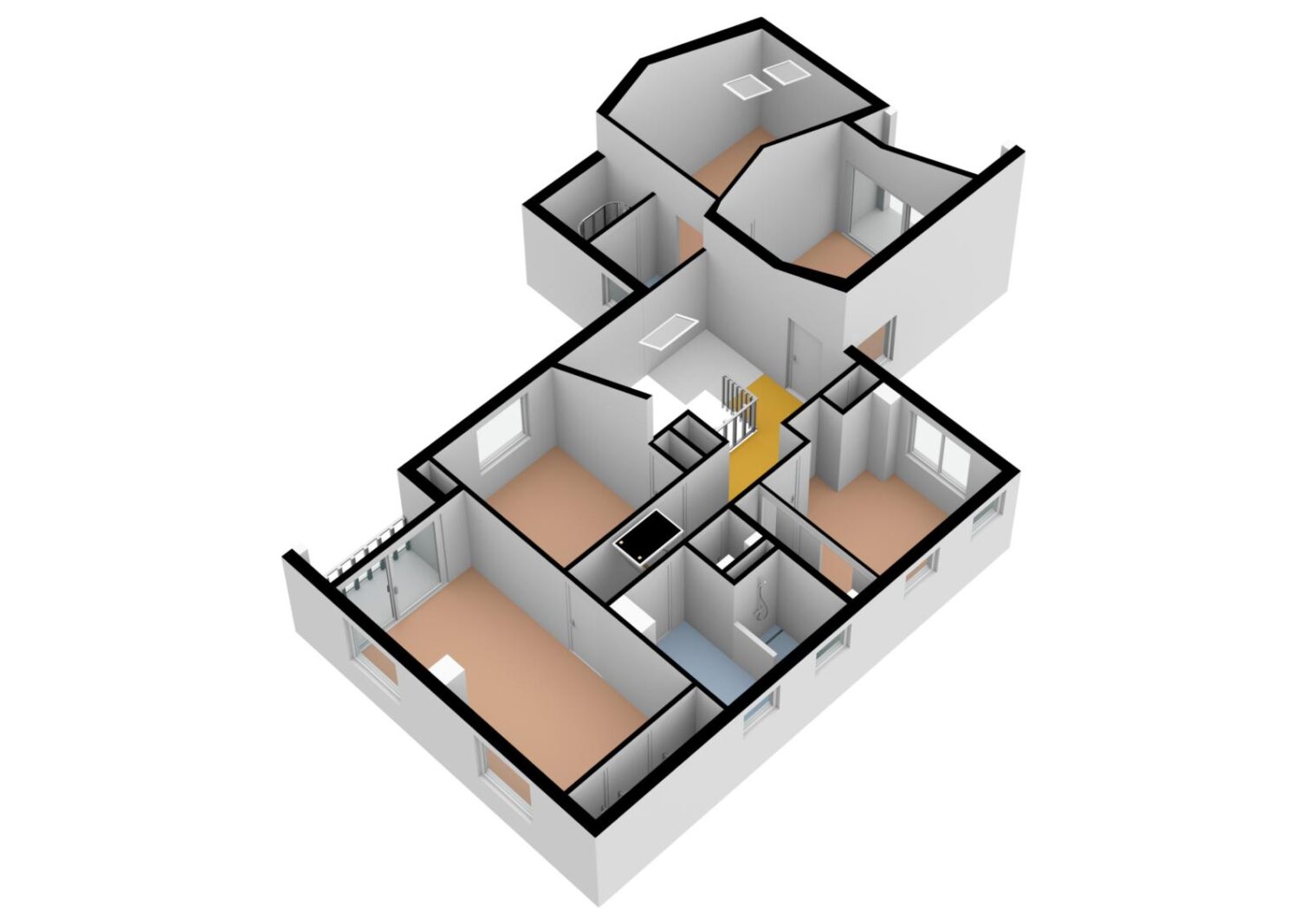 De eerste verdieping beschikt over vier goed bemeten slaapkamers, waarvan meerdere met een inloopkast. Daarnaast zijn er meerdere moderne badkamers aanwezig. De indeling is praktisch en biedt volop ruimte voor een gezin of werken aan huis.