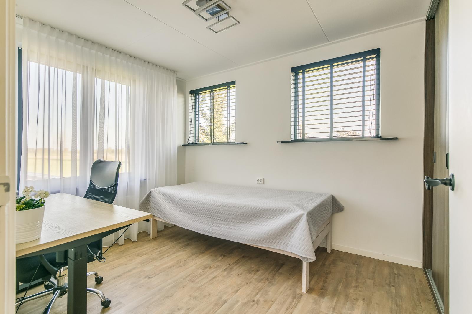 Op de begane grond bevindt zich tevens een slaapkamer met aansluitend een moderne badkamer. Dit maakt de woning uitermate geschikt voor levensloopbestendig wonen of het comfortabel ontvangen van gasten.