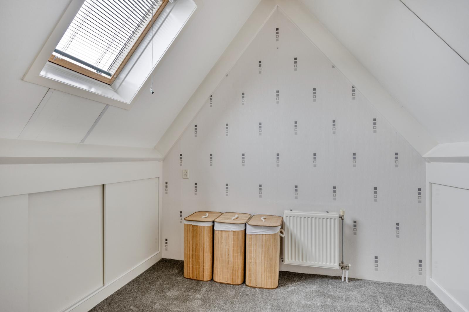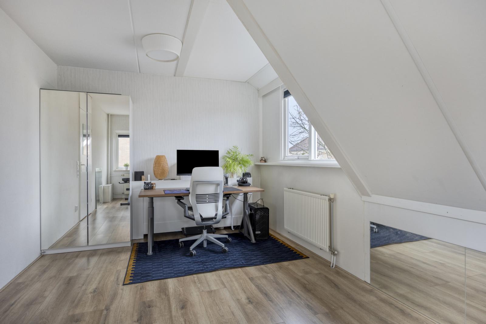 Middels een vaste trap te bereiken zolderverdieping met een extra kamer/kantoor. Tevens vindt u op deze verdieping de warmtepompboiler, wasmachine en droger aansluiting en de mechanische ventilatie unit.