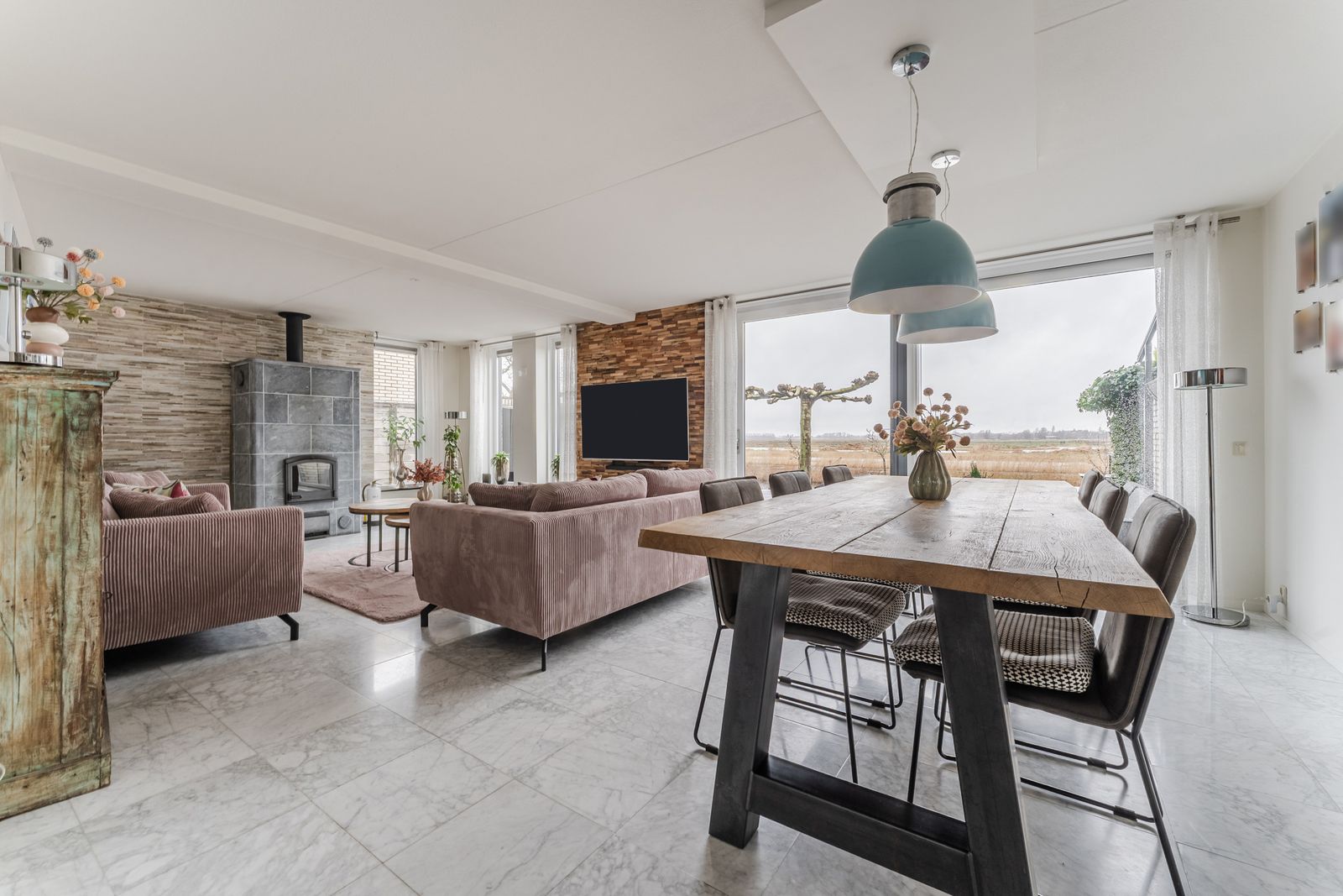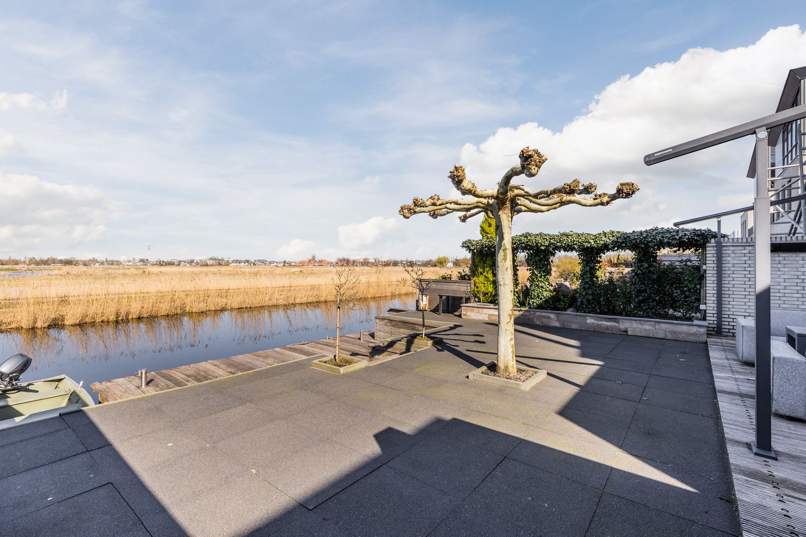 De woning staat op EIGEN GROND, beschikt over meerdere dakterrassen, een inpandige garage, royale tuin met steiger en opvaardok en biedt een zeldzame combinatie van ruimte, natuur en comfort.