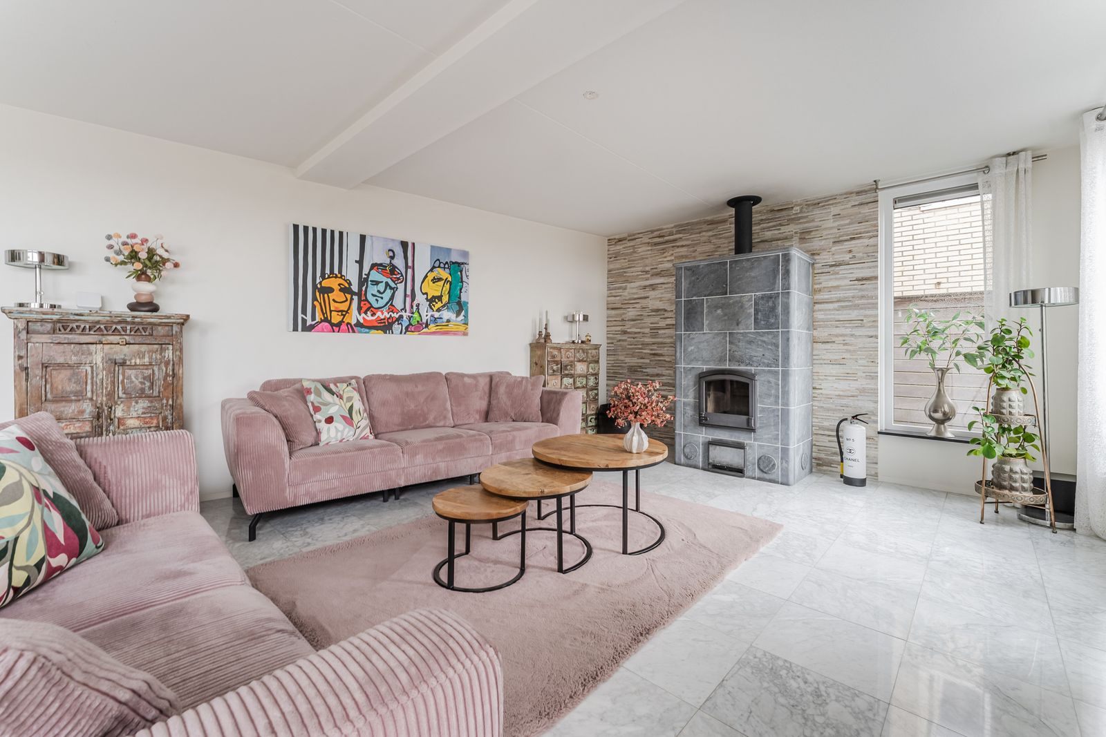 Een echte blikvanger in de woonkamer is de prachtige Tulukivi (Finse) speksteenkachel, die zorgt voor een aangename en gelijkmatige warmte en een sfeervolle uitstraling.