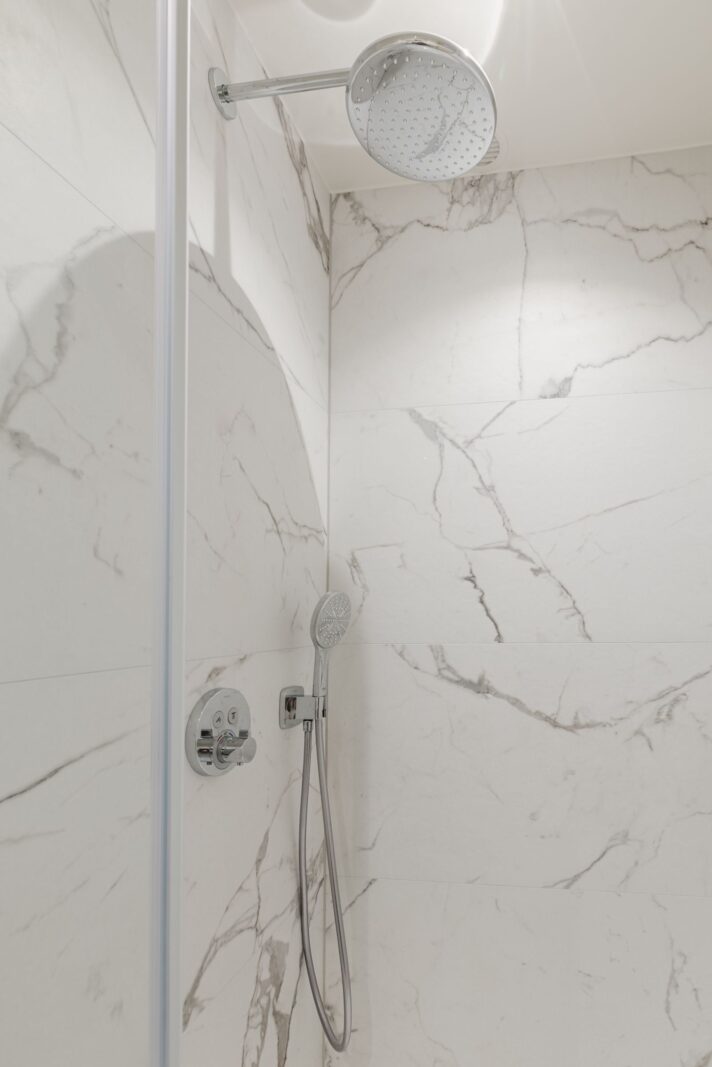 De nieuwe badkamer met regendouche biedt een luxe hotelbeleving. De woning is uitgerust met een energiezuinige boiler die specifiek is afgestemd op het gebruik van de regendouche, waardoor het warmwatercomfort ook bij langere douches optimaal blijft.