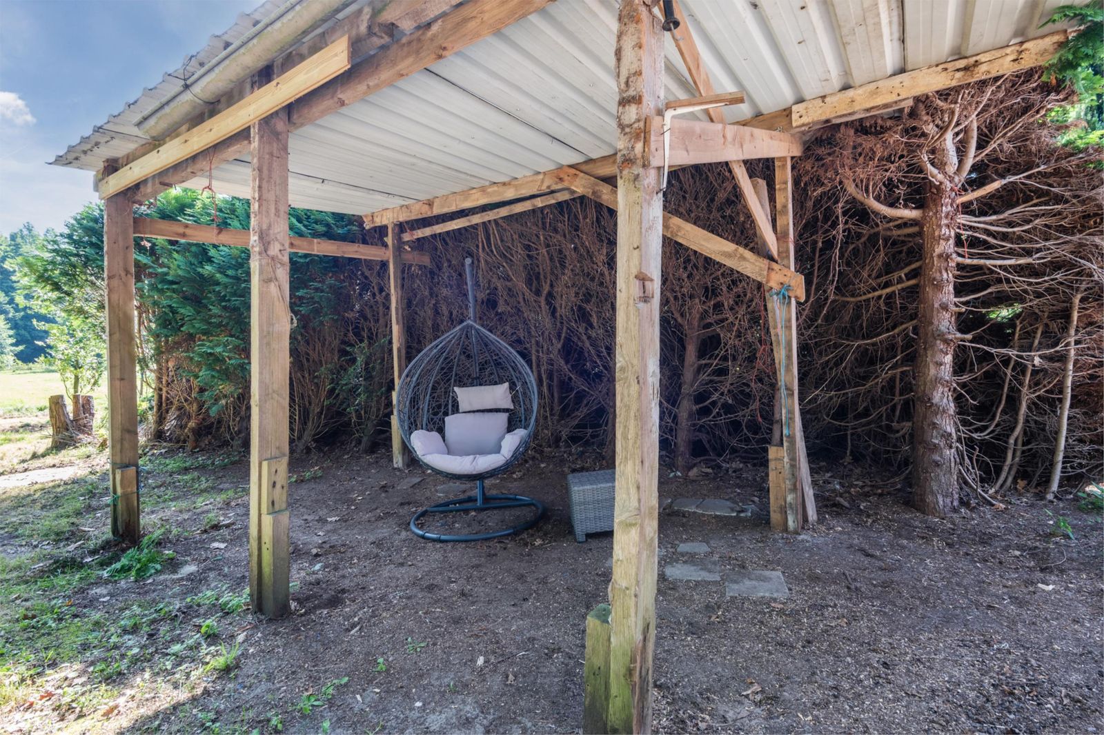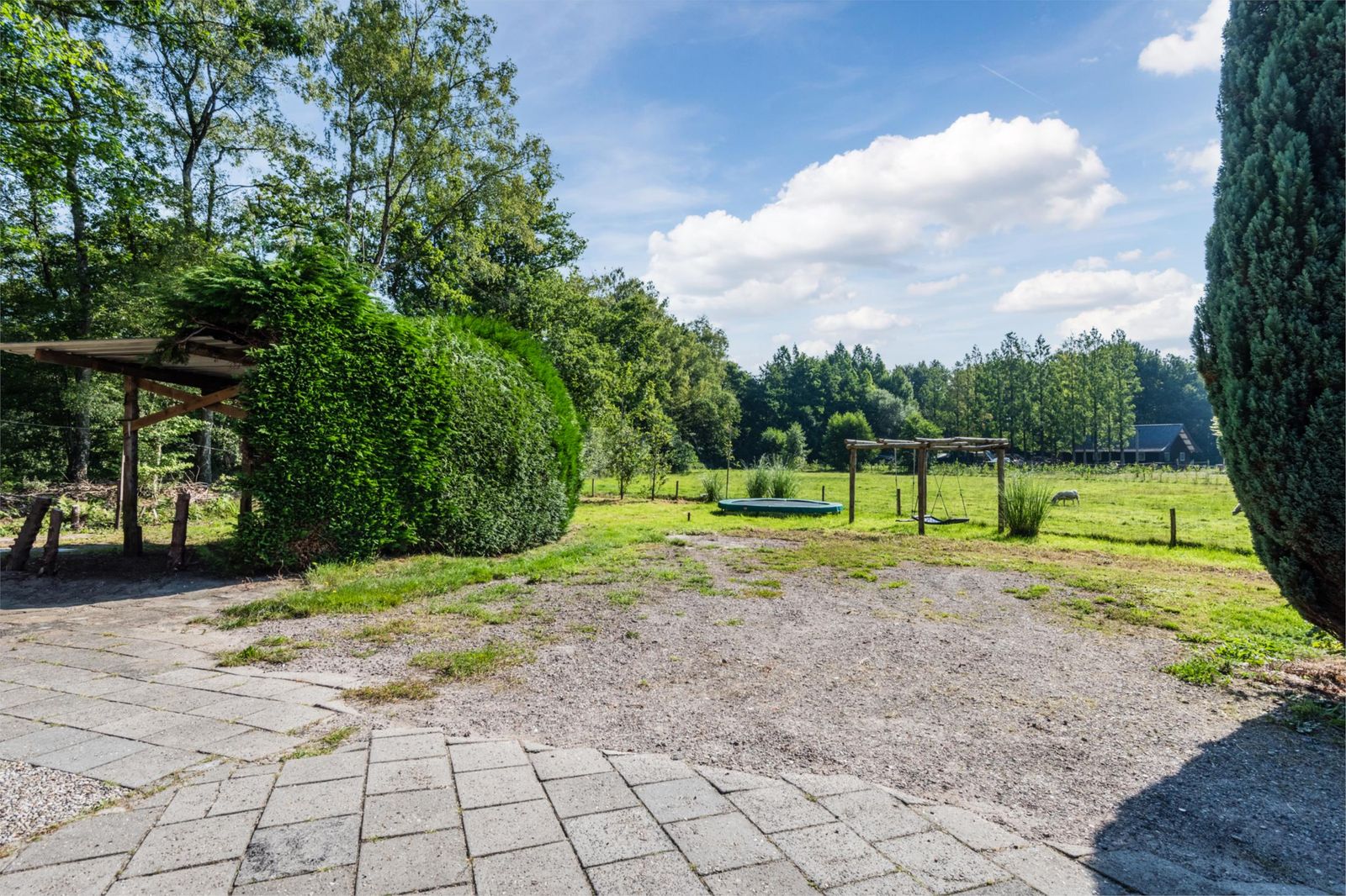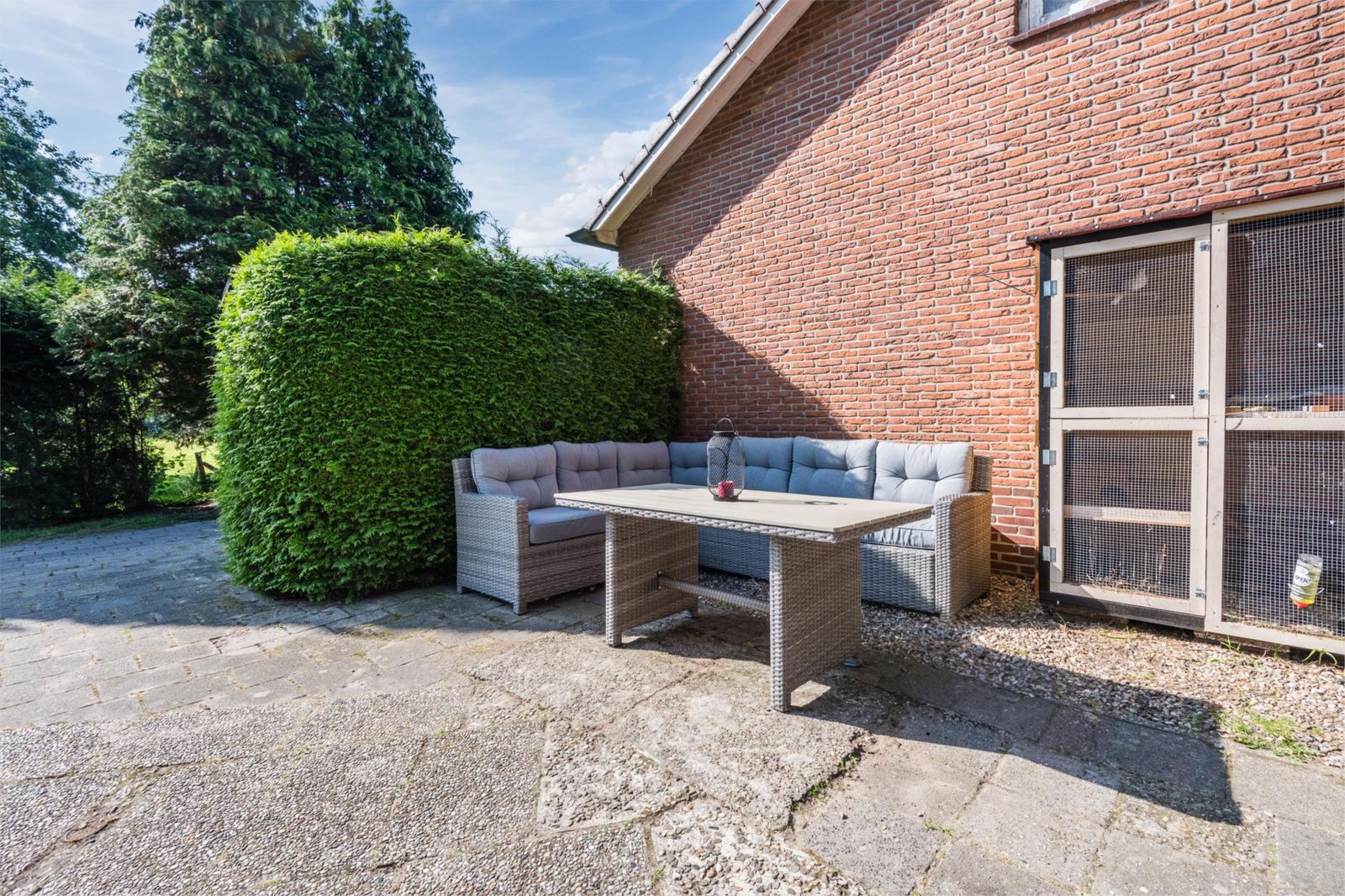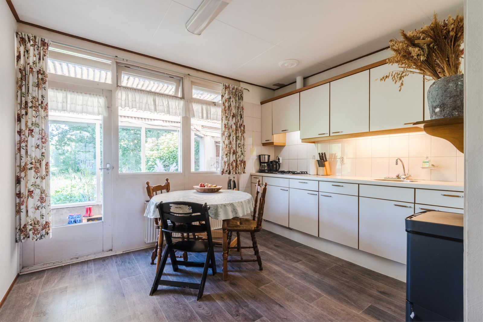 Via de keuken is de tuinkamer (eenvoudige aanbouw) bereikbaar en aansluitend de houten berging. Op het perceel staat verder nog een vrijstaande houten garage, een carport en diverse oude opstallen.