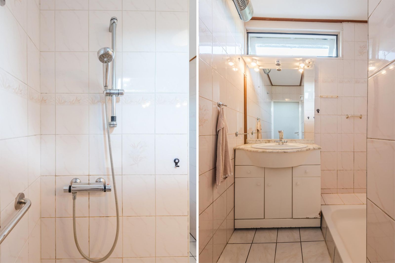 Aan de achterzijde van de woning 2 slaapkamers. Badkamer met douche en wastafelmeubel.