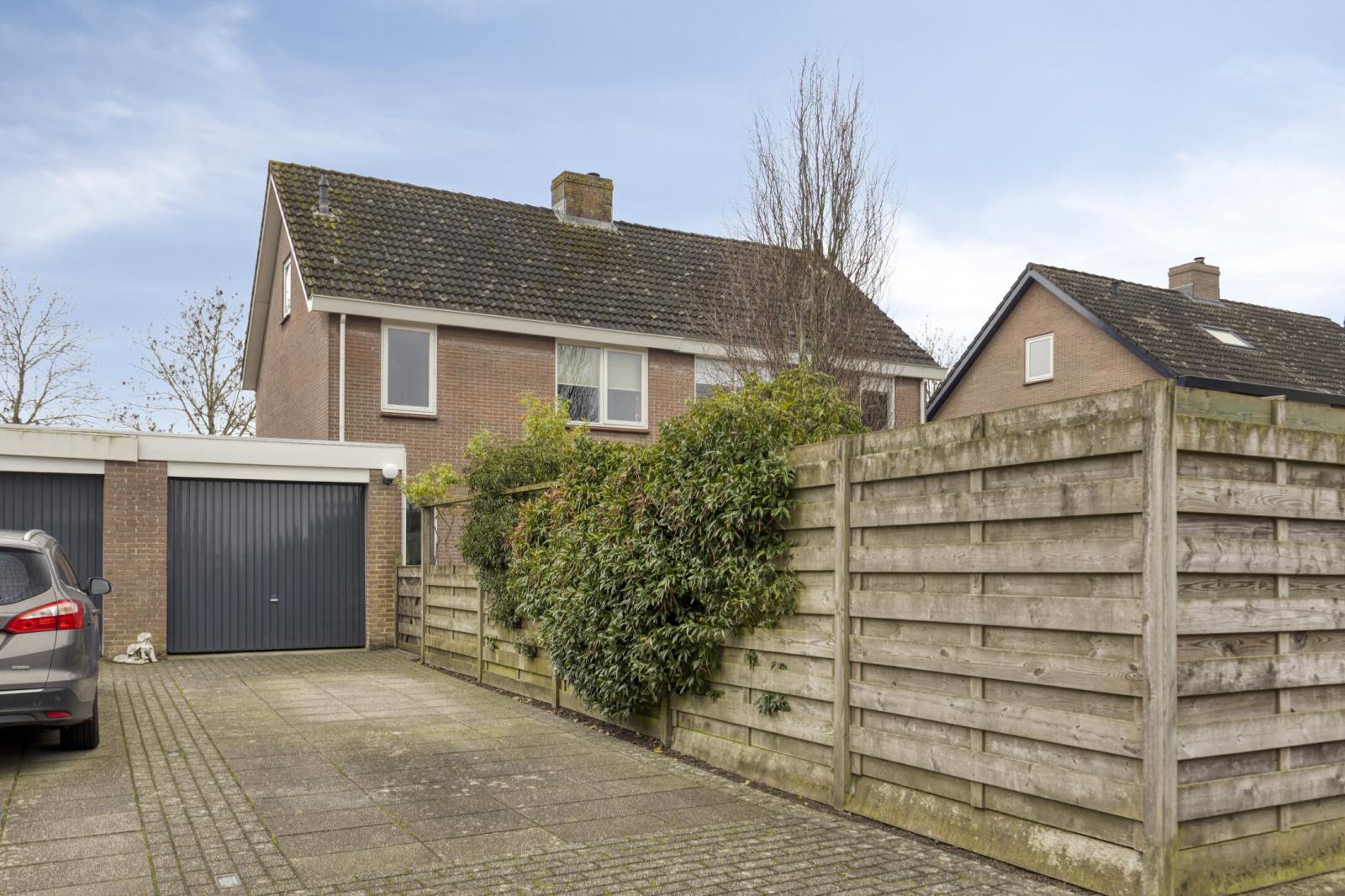 Aan de zijkant van de woning bevindt zich een eigen garage met royale oprit, waar je meerdere auto's kunt parkeren.