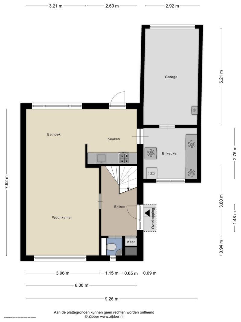 Via de keuken is er toegang tot de bijkeuken en de garage. Ook de achtertuin is zowel via de keuken als de bijkeuken bereikbaar.