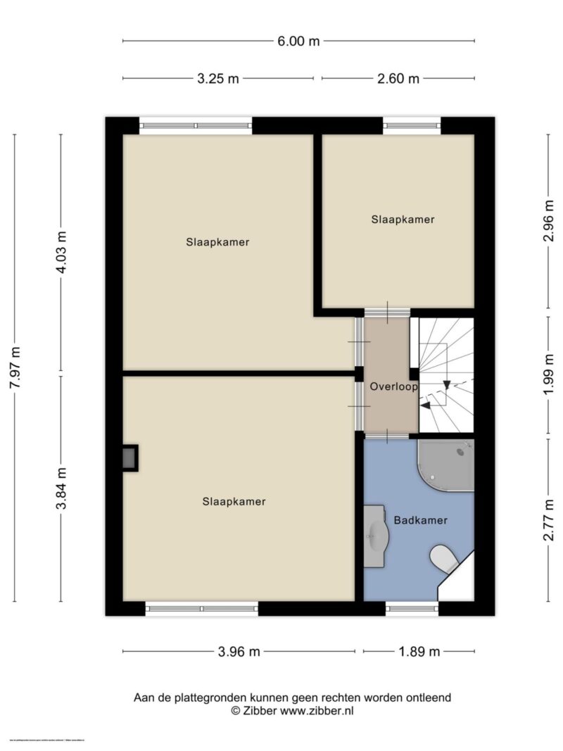 _ Slaapkamer 2 (ca. 13 m²) en slaapkamer 3 (ca. 8 m²) zijn aan de achterzijde gelegen.