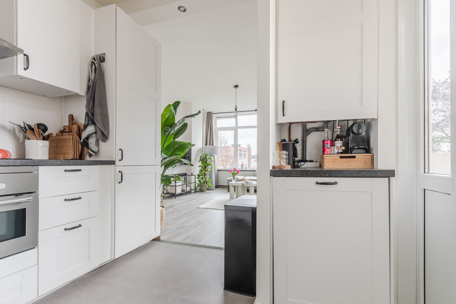 Het appartement beschikt over drie slaapkamers. De lichte woonkamer is een prettige leefruimte en heeft vrij uitzicht. In 2023 is de keuken samengevoegd met de woonkamer en is voorzien van inbouwapparatuur (koel-vriescombi, vaatwasser, combi magnetron/oven, inductiekookplaat). Vanuit de keuken opent een opbergruimte met aansluiting voor witgoed. Ook het balkon is toegankelijk vanuit de keuken.