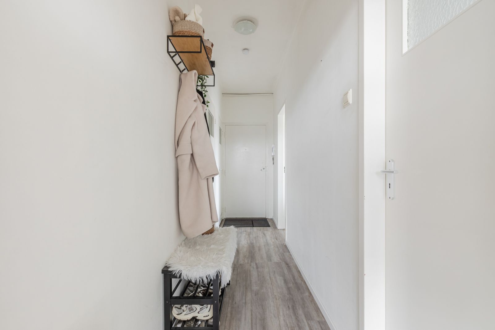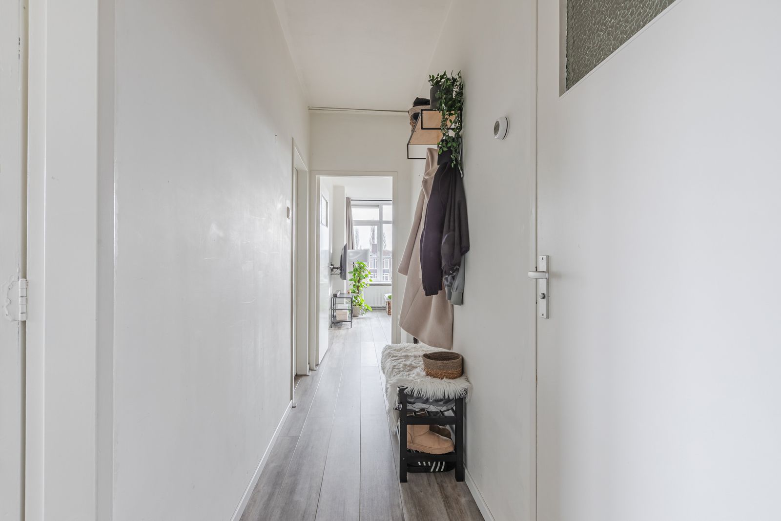 Via de entree kom je in de gang, die toegang biedt tot alle ruimtes. Het woonoppervlakte bedraagt ca. 66m2.