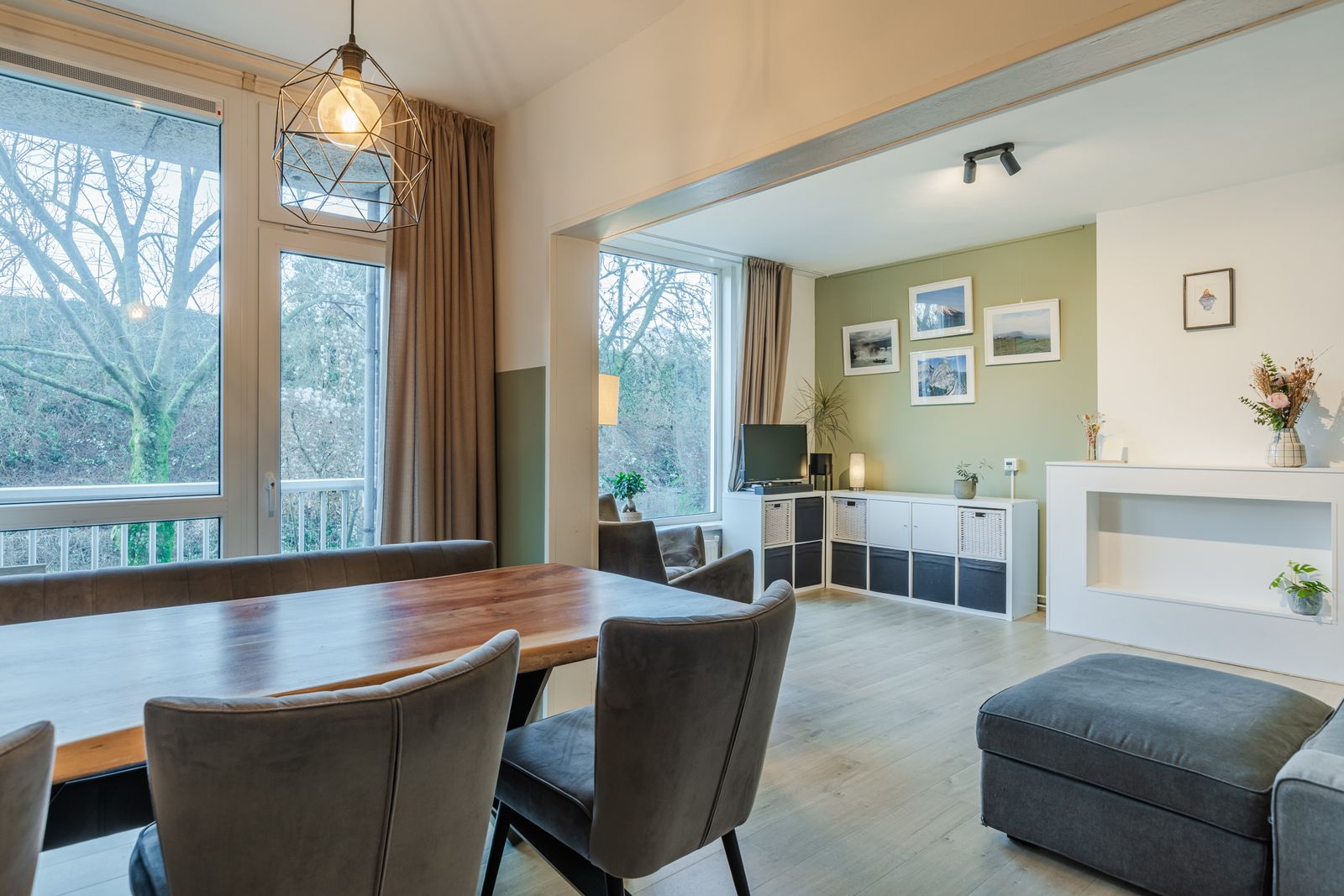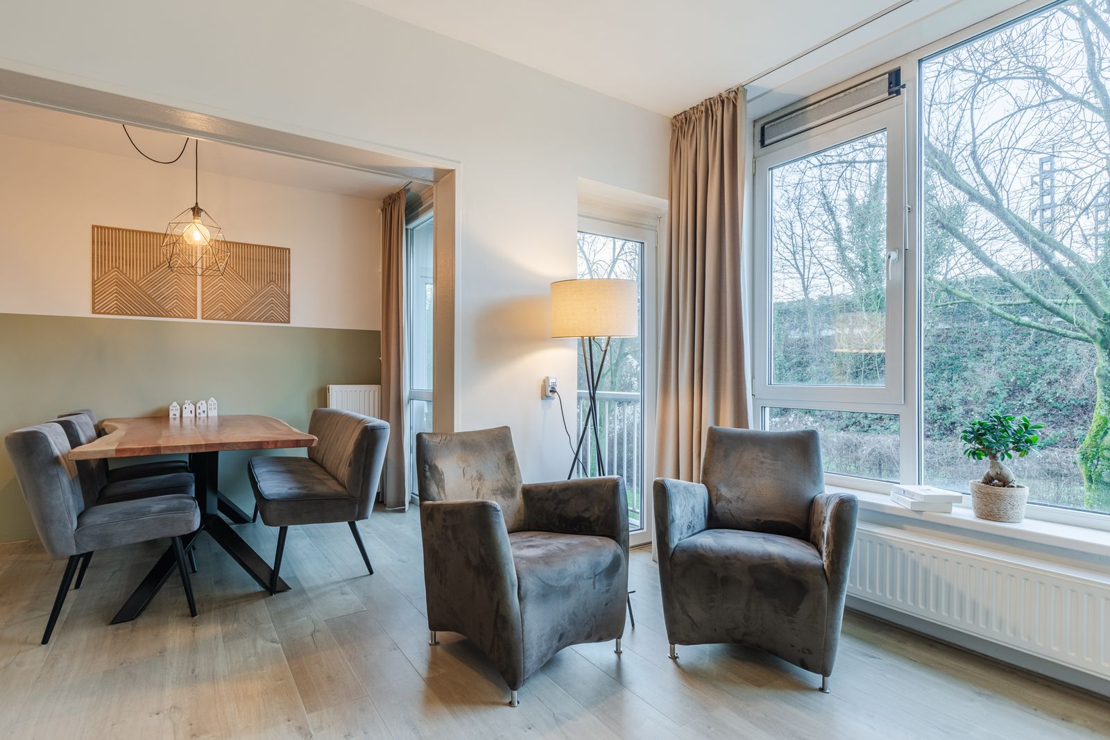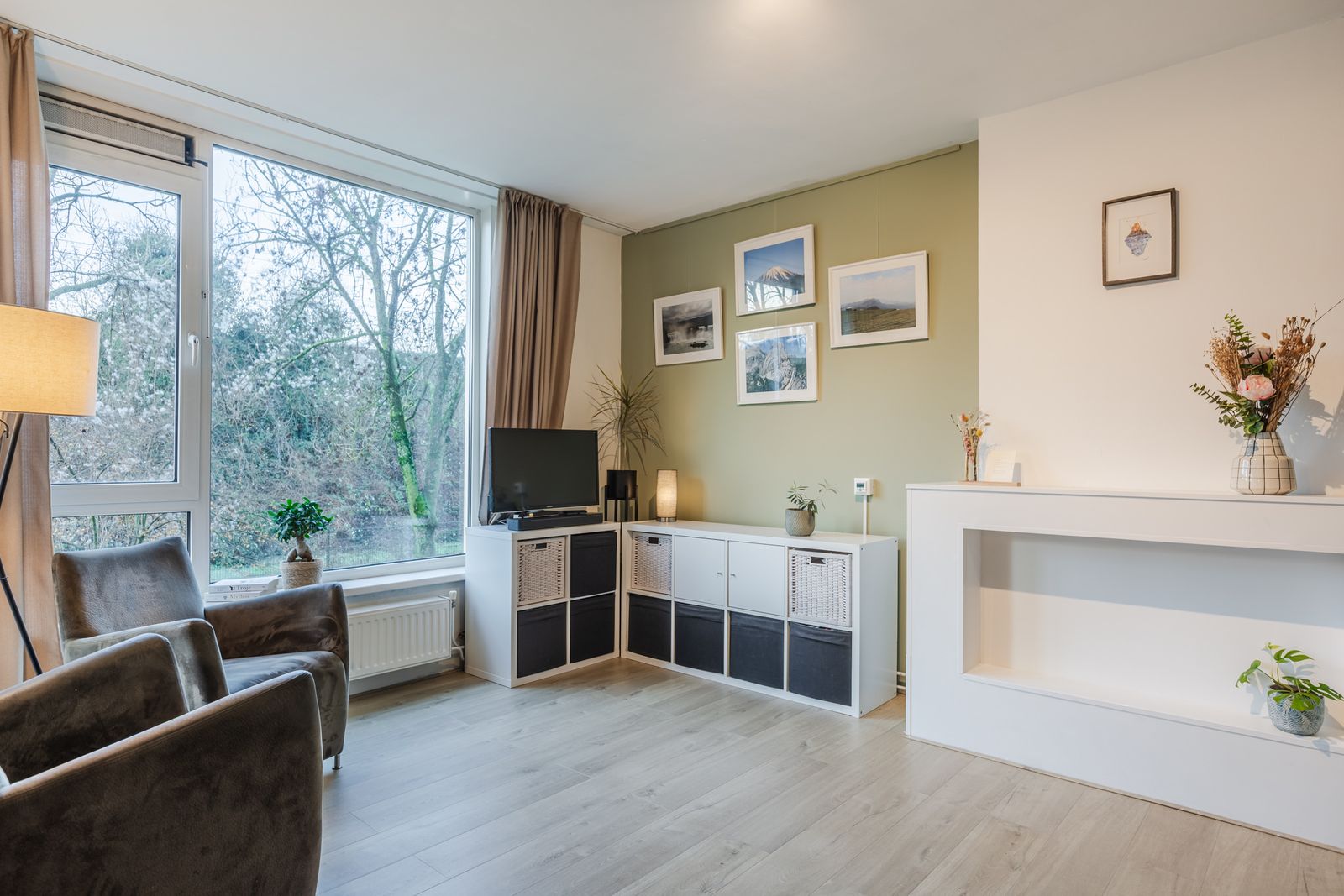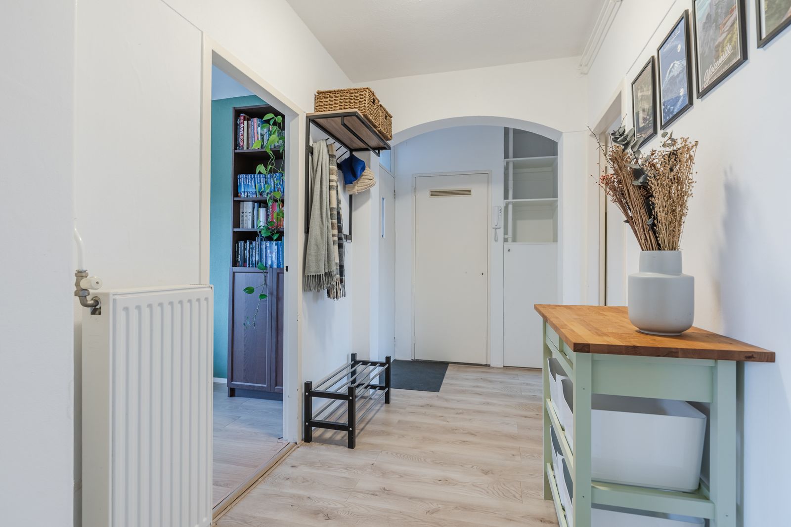 Entree/hal met meterkast en toegang tot alle vertrekken. Ruime en lichte woonkamer voorzien van elektrische vloerverwarming, een fraai groen uitzicht en toegang tot het balkon aan de achterzijde. De gesloten keuken is uitgerust met inbouwapparatuur en biedt toegang tot het tweede balkon aan de voorzijde.