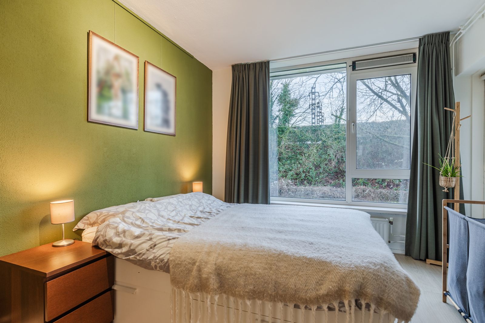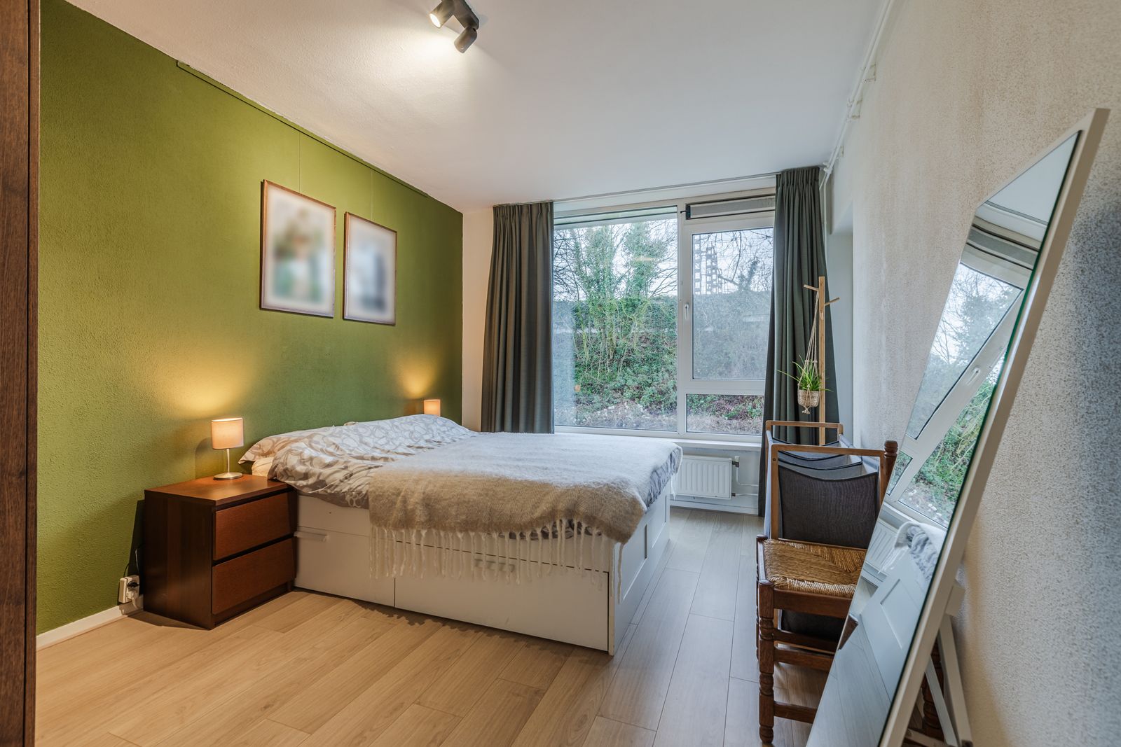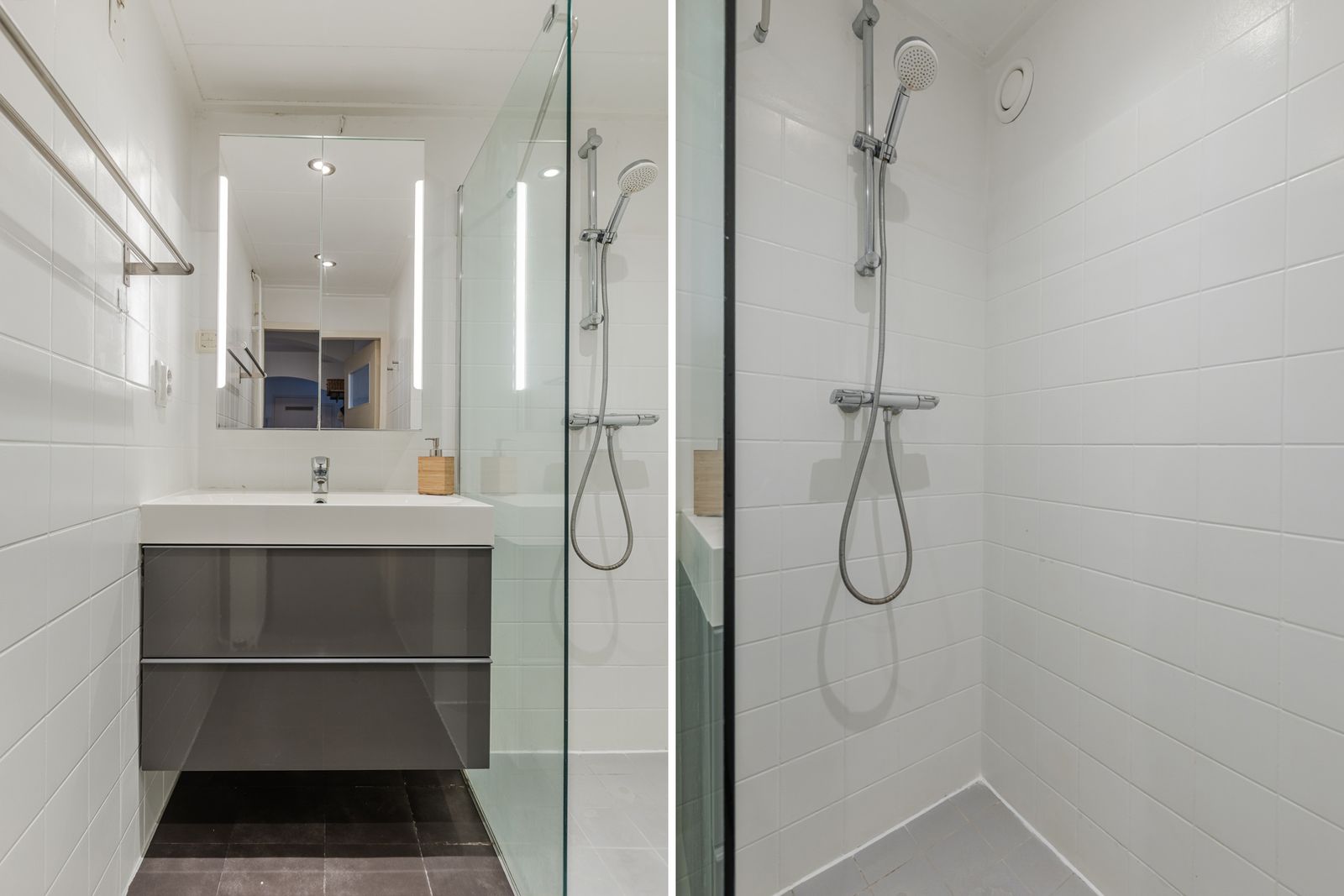 De woning beschikt over twee slaapkamers, waarvan de grote slaapkamer is voorzien van een elektrische screen. De badkamer is ingericht met een douche, wastafel en wastafelmeubel. Er is een separaat toilet aanwezig.
