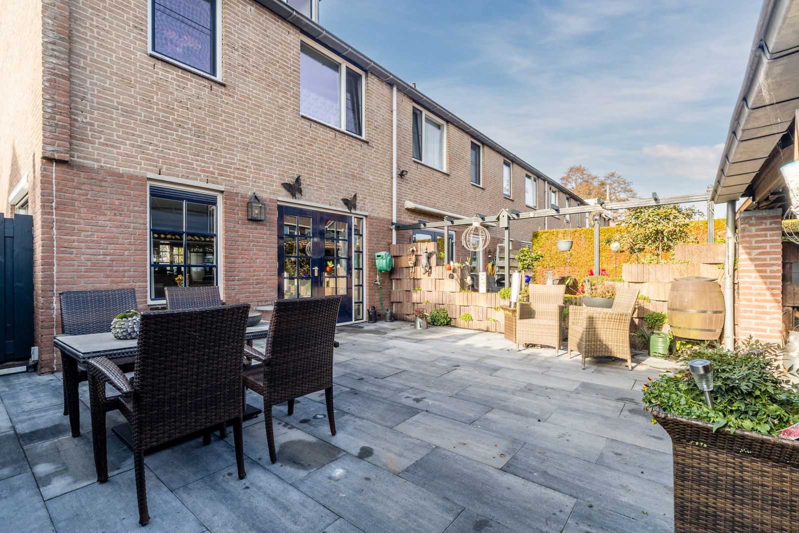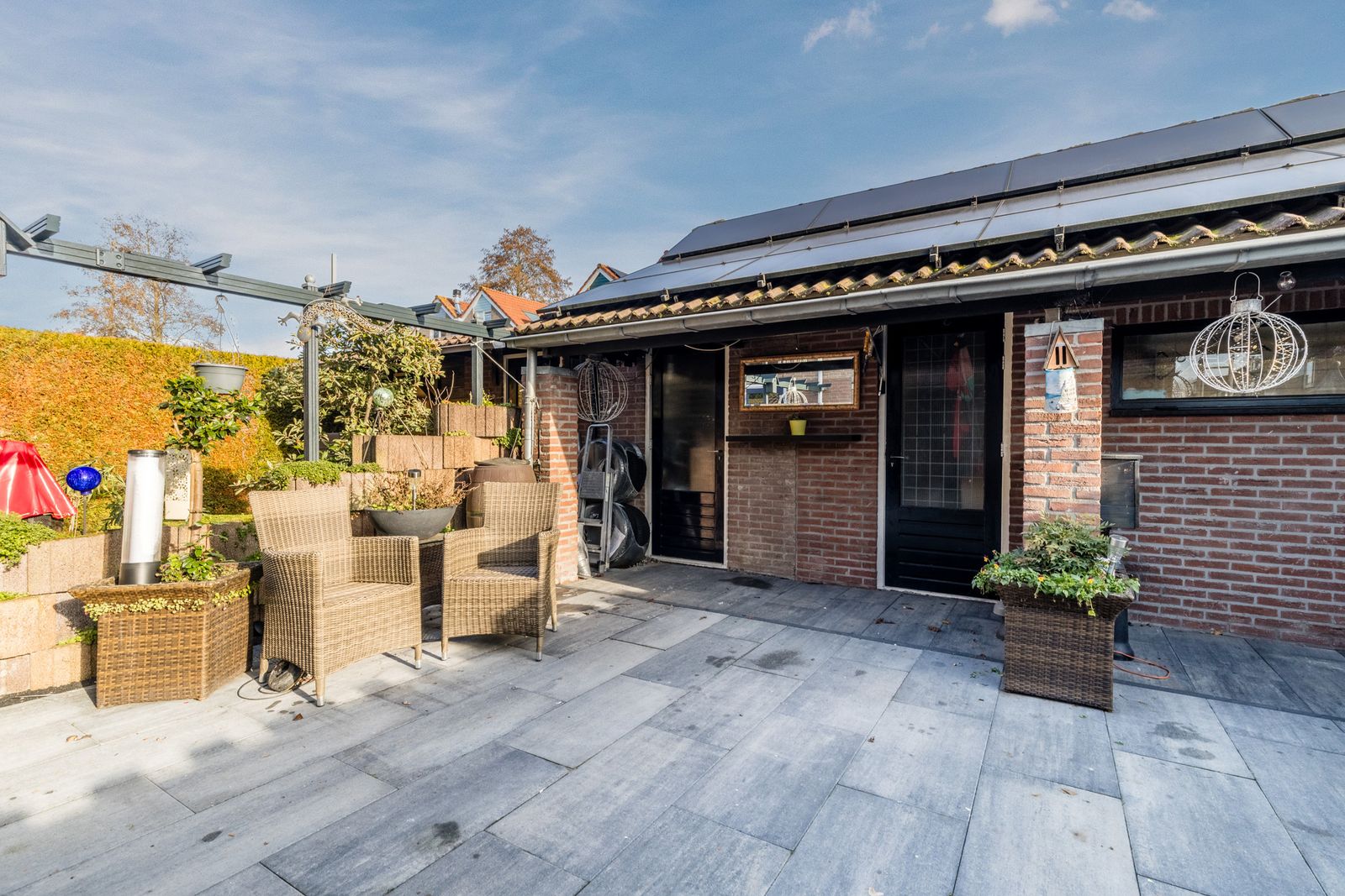 Ruime tuin met toetreding via de zijkant met brede poortdeur.