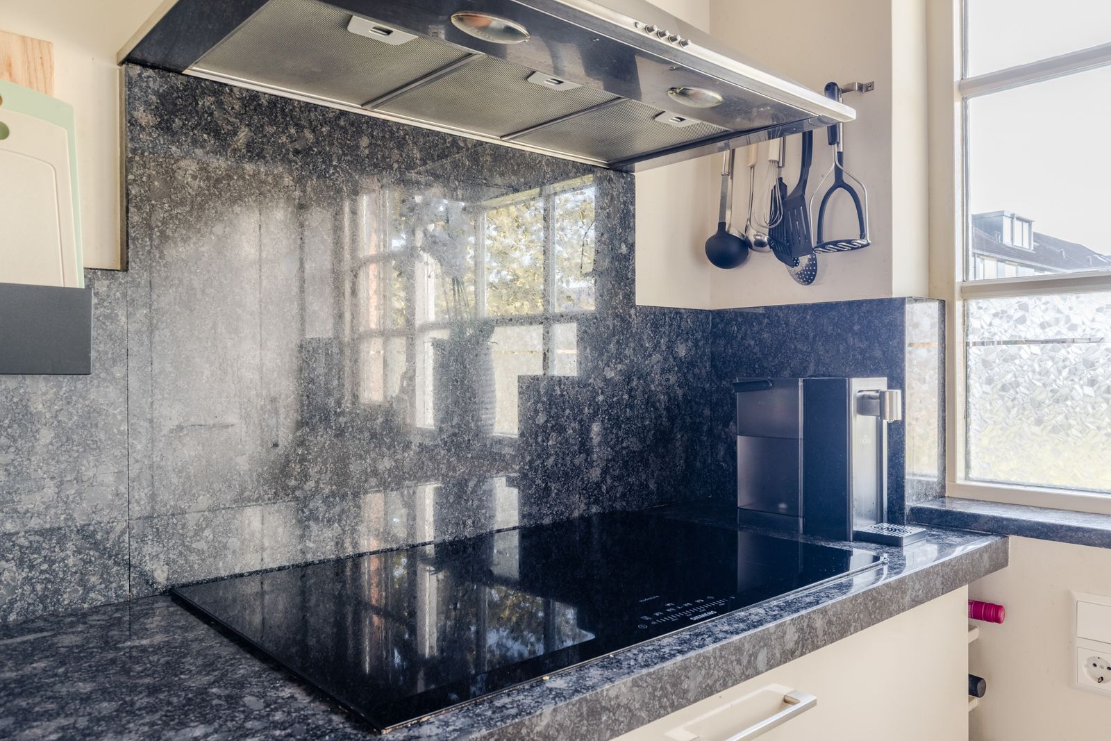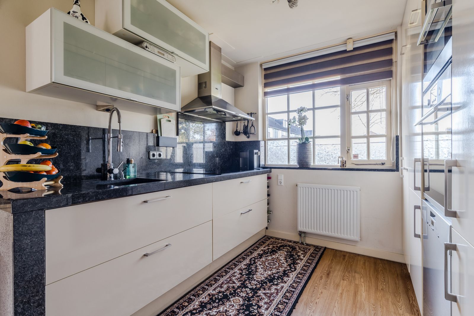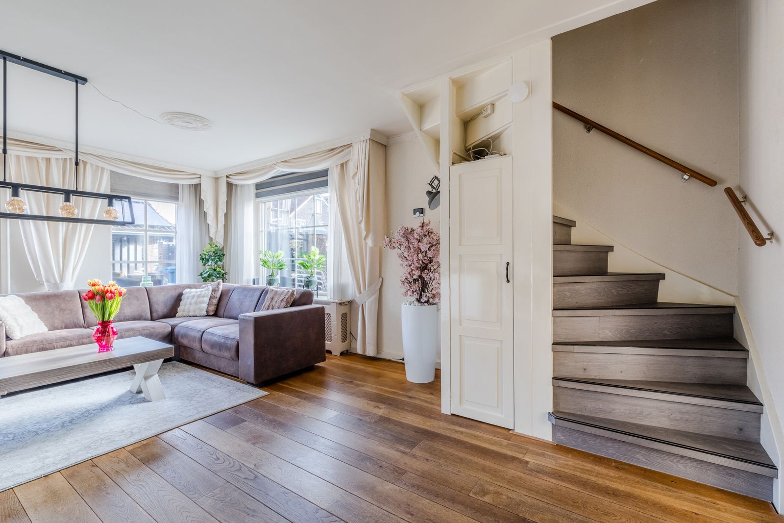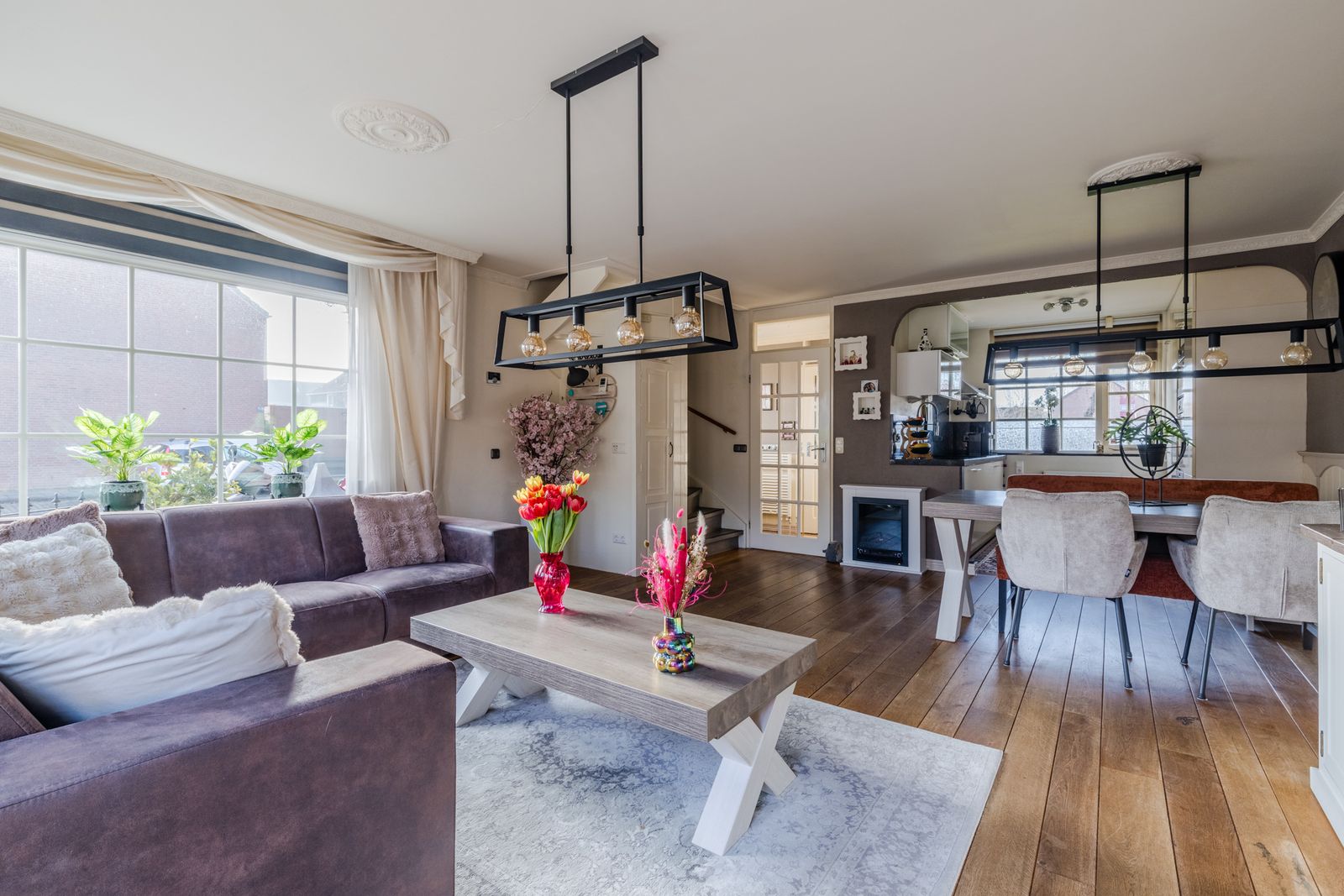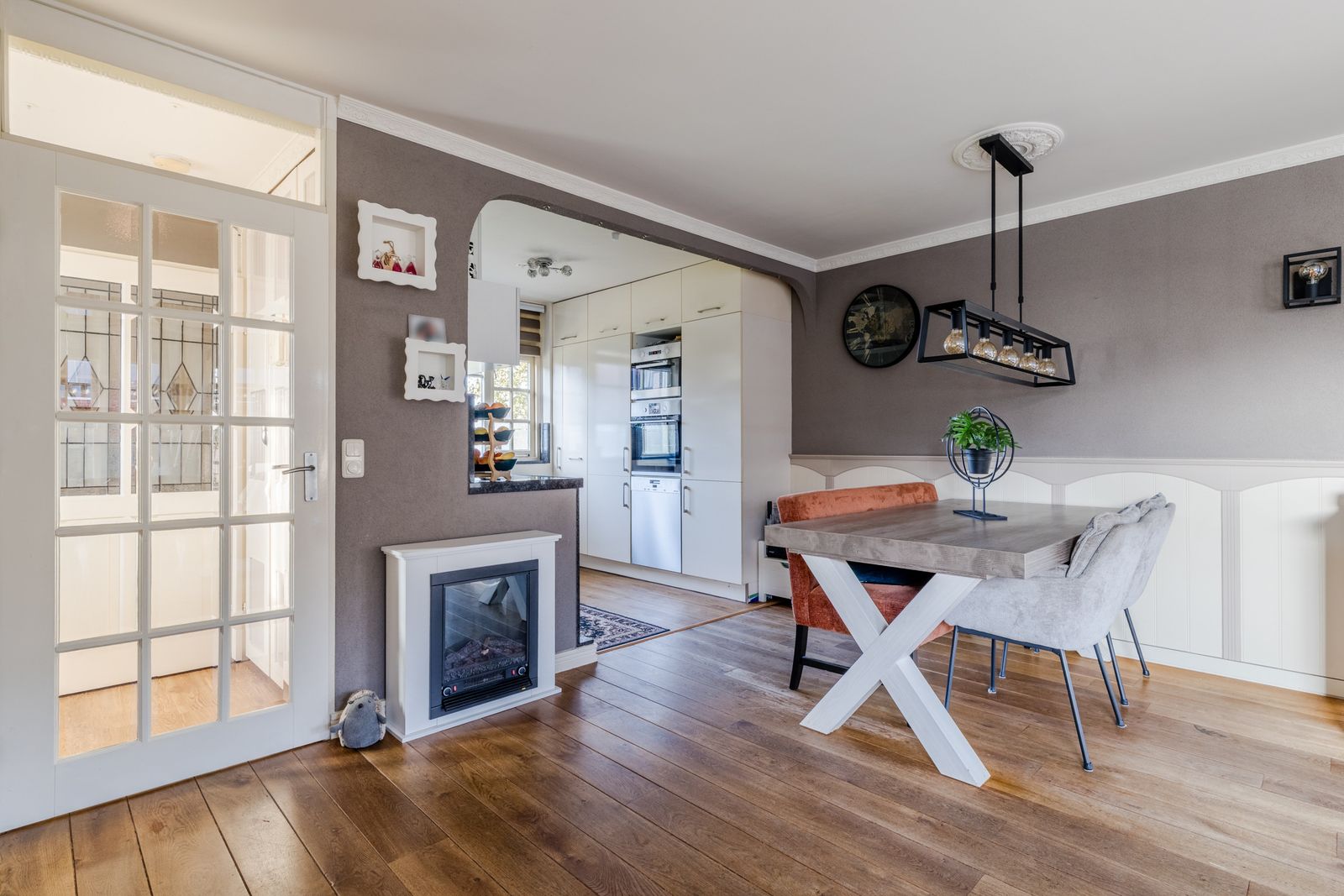 Woonkamer en keuken strak afgwerkt qua stucwerk.