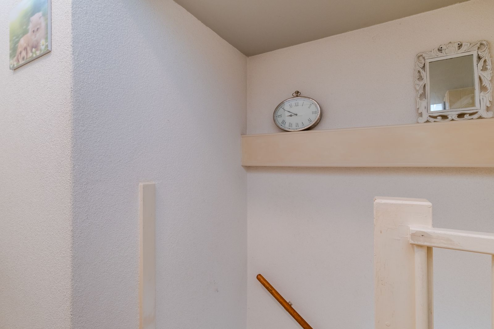 In de woonkamer zit nog een weggewerkte openhaard kanaal die nog volledig door het dak zit.