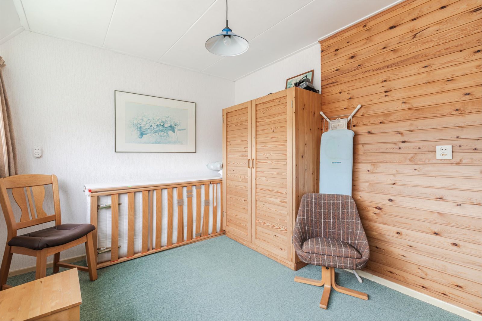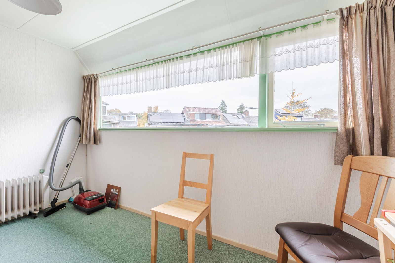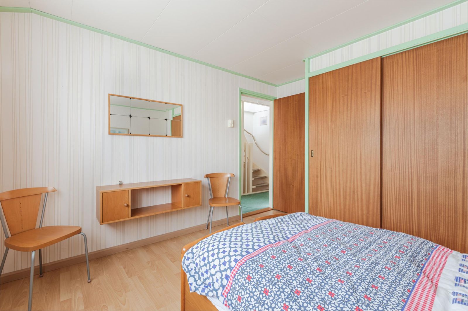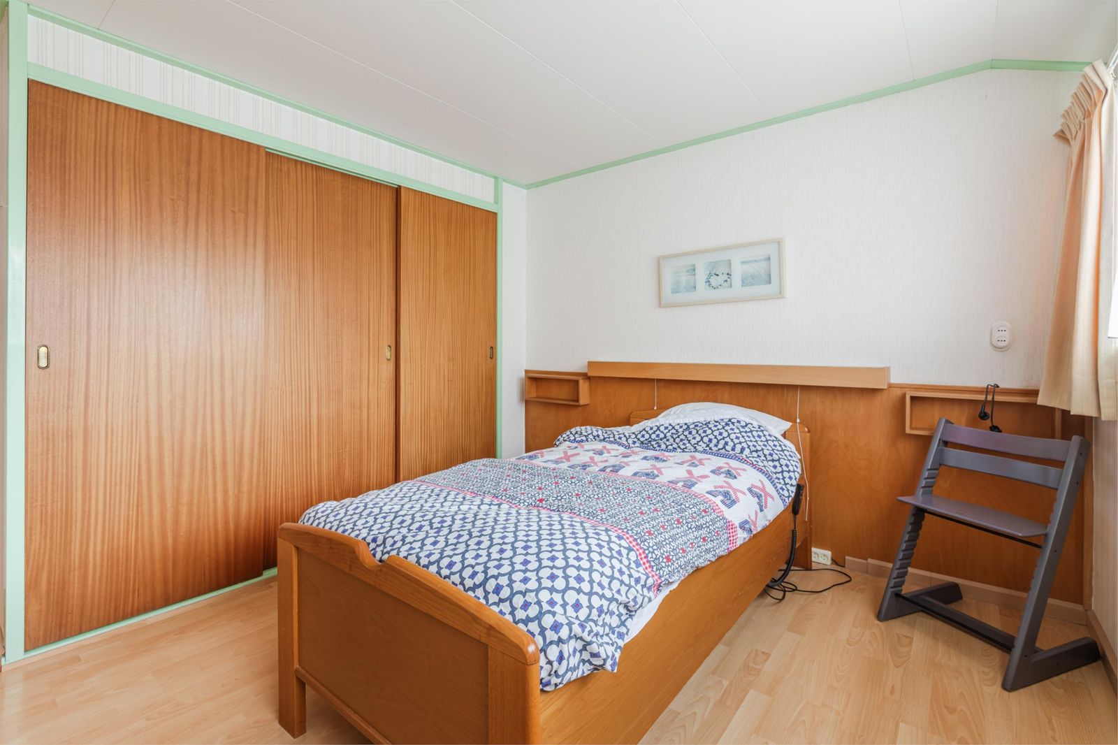Vanaf de overloop zijn twee ruime slaapkamers te bereiken, één ervan is voorzien van een ruime vaste kast voor kleding en andere spullen. Beide slaapkamers zijn groot genoeg om een tweepersoonsbed neer te zetten. Het uitzicht aan de voorzijde is fraai, richting het plantsoen met bomen en een bankje. Aan de achterzijde kijk je vrijuit over de tuin en is er ook geen inkijk. De kleine (slaap) kamer is thans in gebruik als wasruimte en extra wc boven. De doucheruimte bevind zich aan de voorzijde.