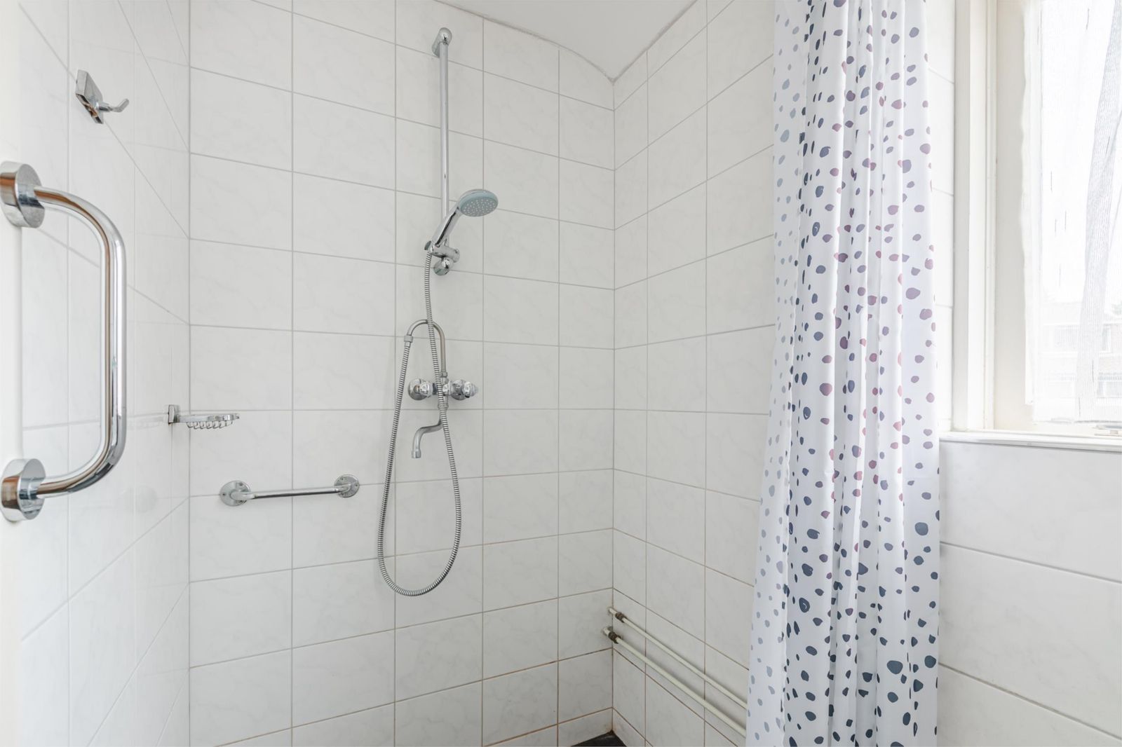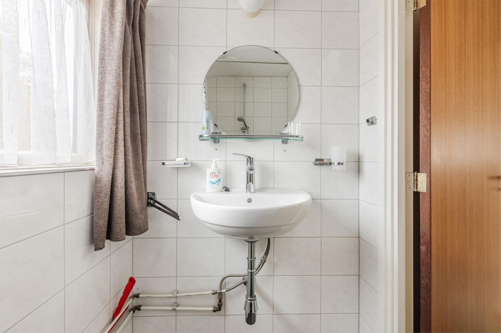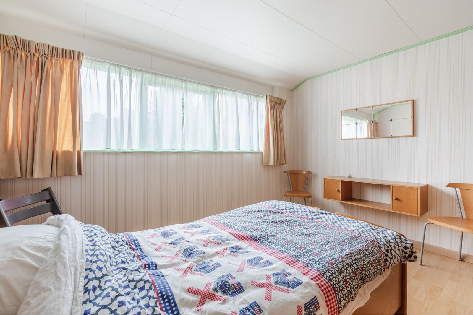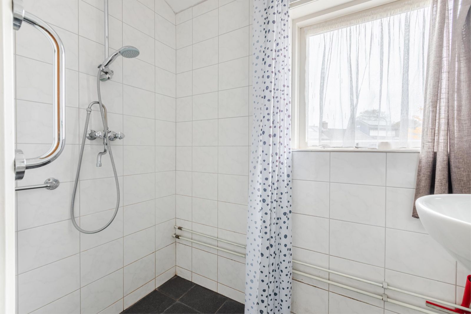 Vanaf de overloop zijn twee ruime slaapkamers te bereiken, één ervan is voorzien van een ruime vaste kast voor kleding en andere spullen. Beide slaapkamers zijn groot genoeg om een tweepersoonsbed neer te zetten. Het uitzicht aan de voorzijde is fraai, richting het plantsoen met bomen en een bankje. Aan de achterzijde kijk je vrijuit over de tuin en is er ook geen inkijk. De kleine (slaap) kamer is thans in gebruik als wasruimte en extra wc boven. De doucheruimte bevind zich aan de voorzijde.