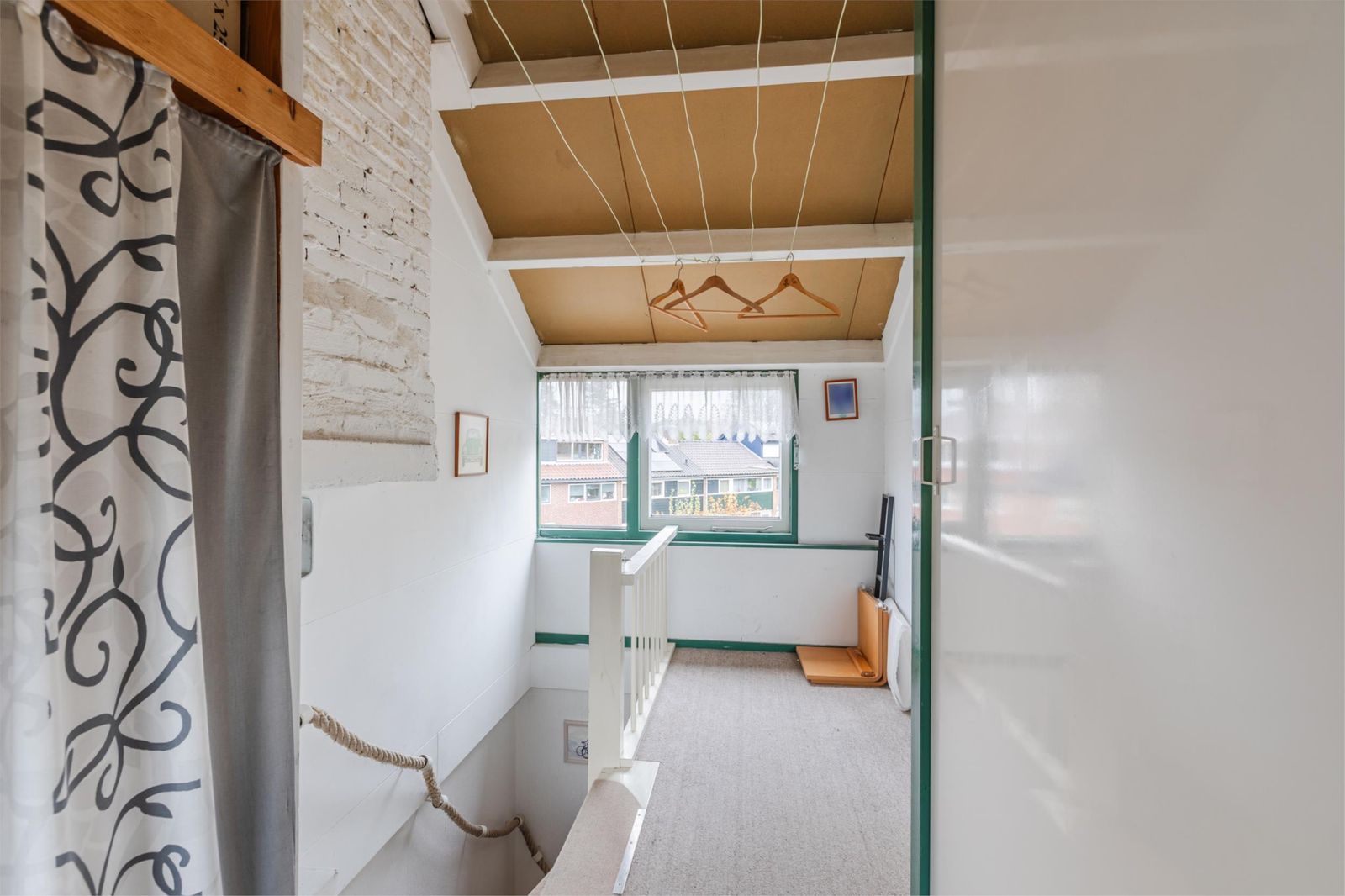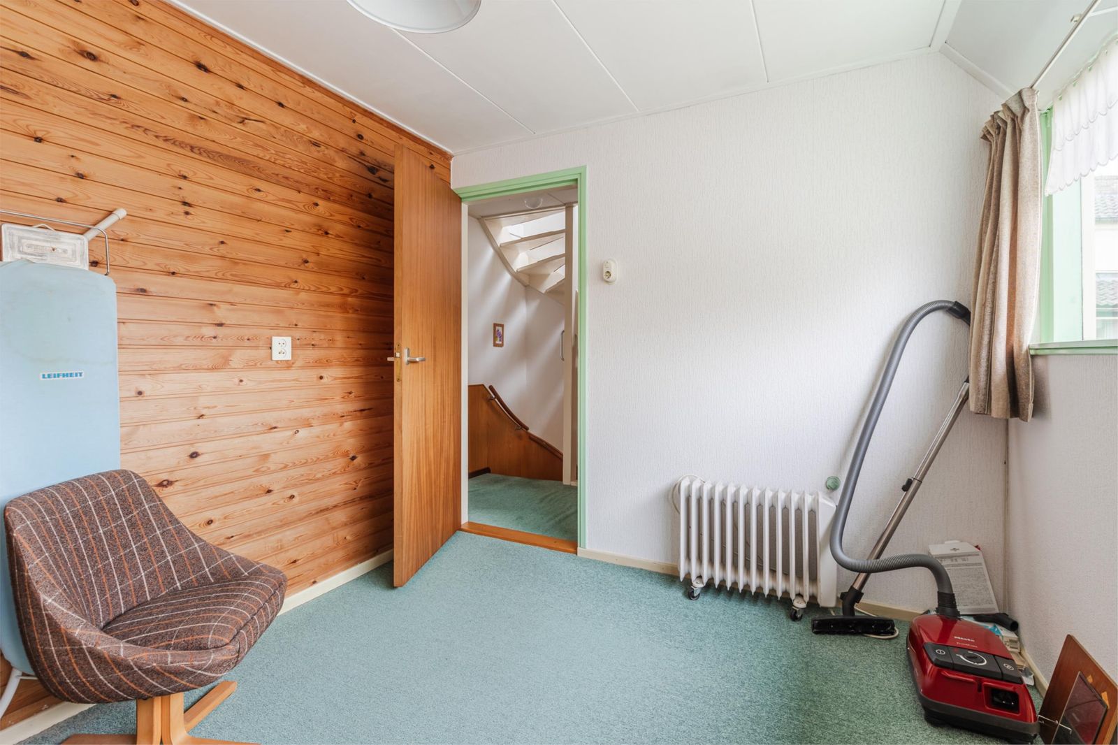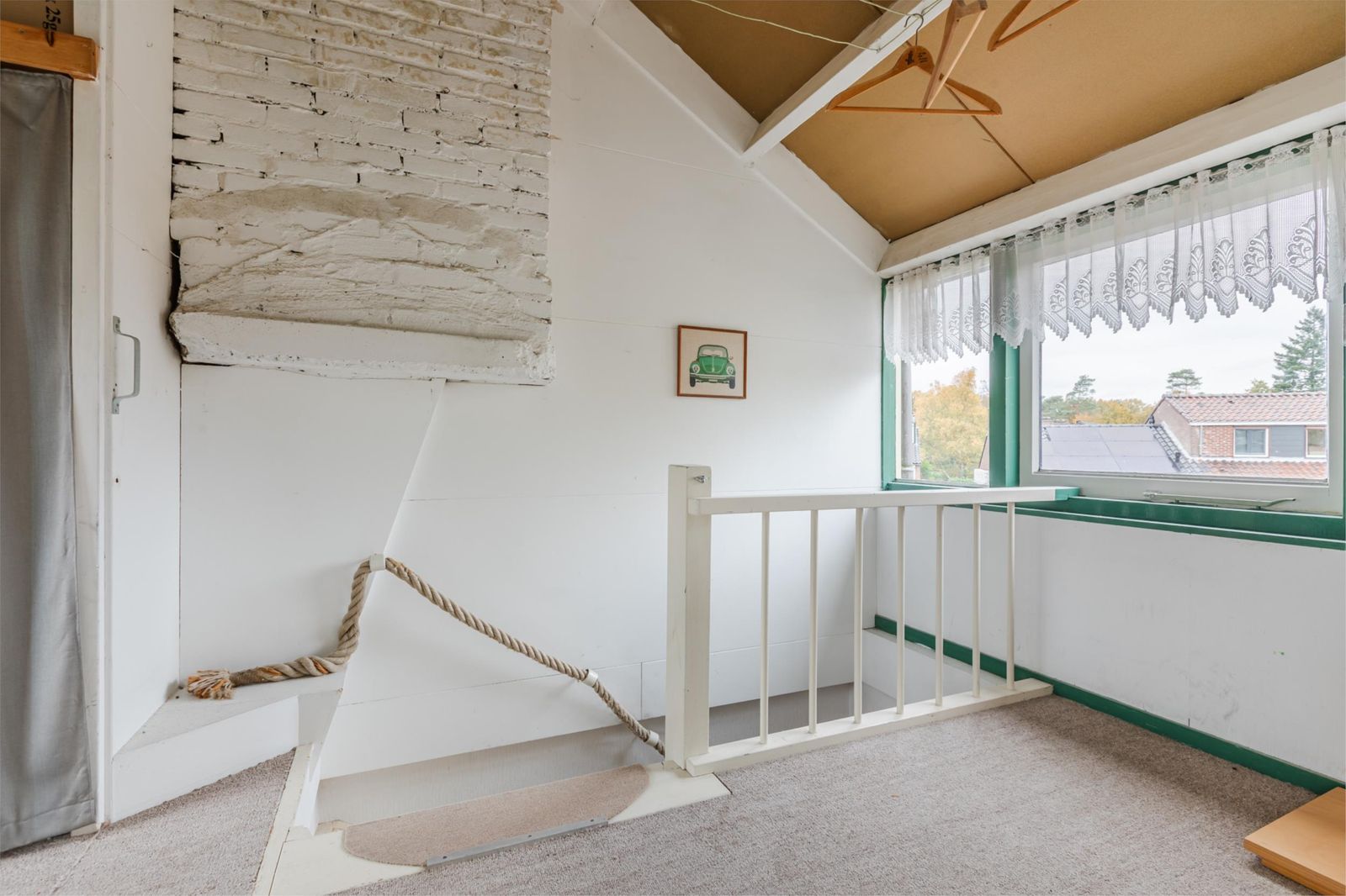De vaste trap brengt u naar de dakopbouw, met isolatie, geplaatst waardoor de zolder is getransformeerd in een ruime voorzolder en (slaap)kamer. Deze kamer heeft lichtinval aan twee zijden en vaste kasten
