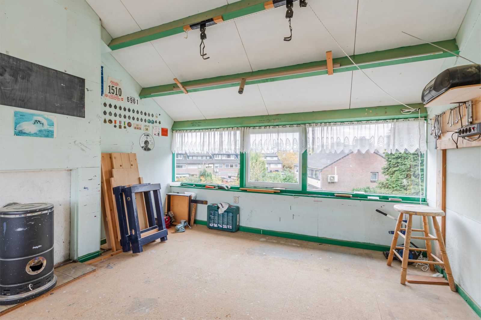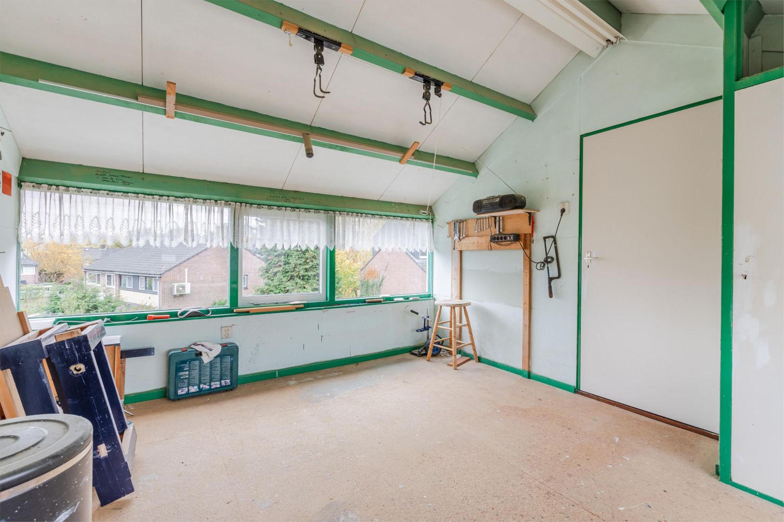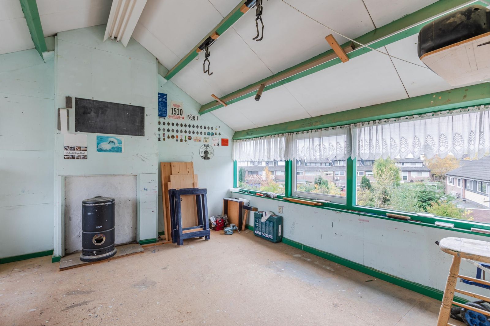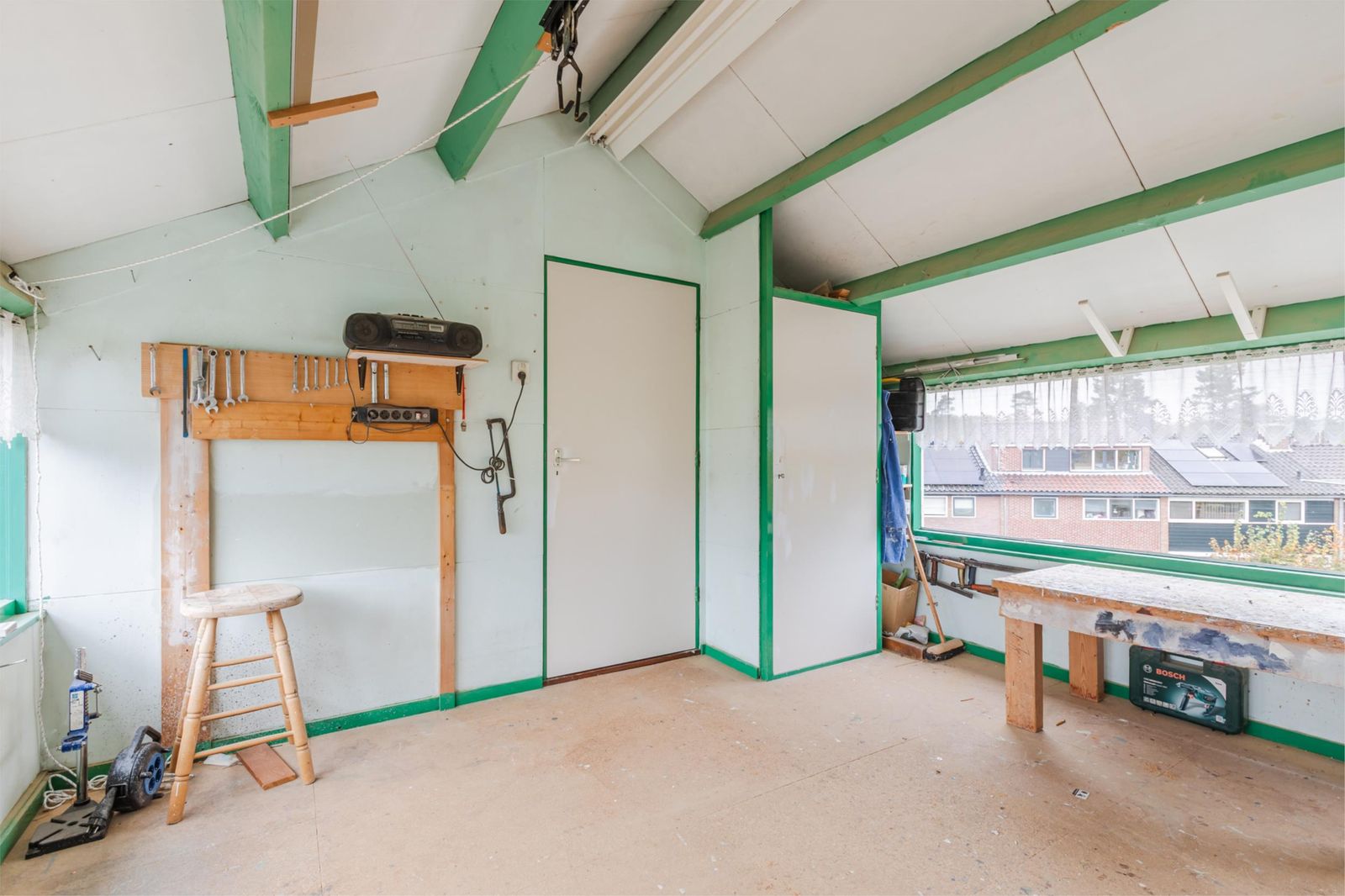 De vaste trap brengt u naar de dakopbouw, met isolatie, geplaatst waardoor de zolder is getransformeerd in een ruime voorzolder en (slaap)kamer. Deze kamer heeft lichtinval aan twee zijden en vaste kasten