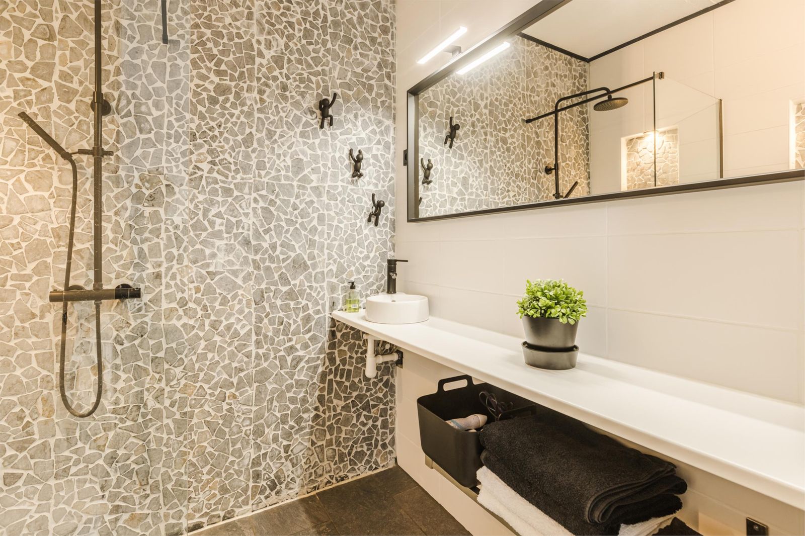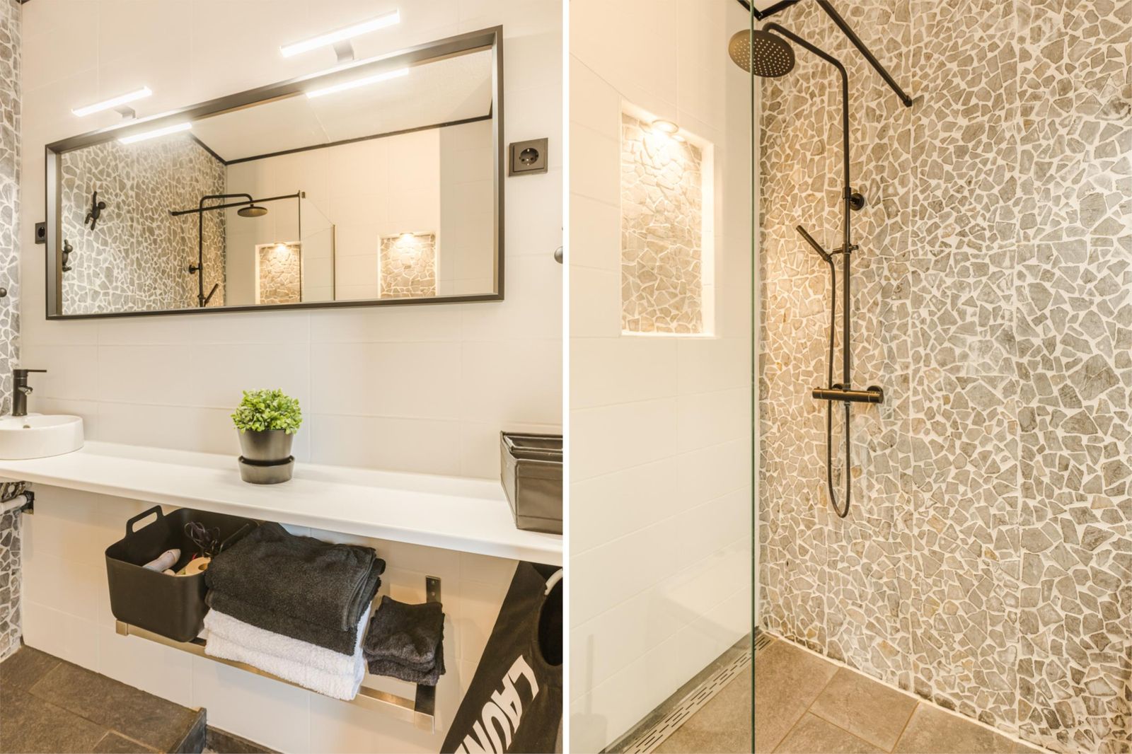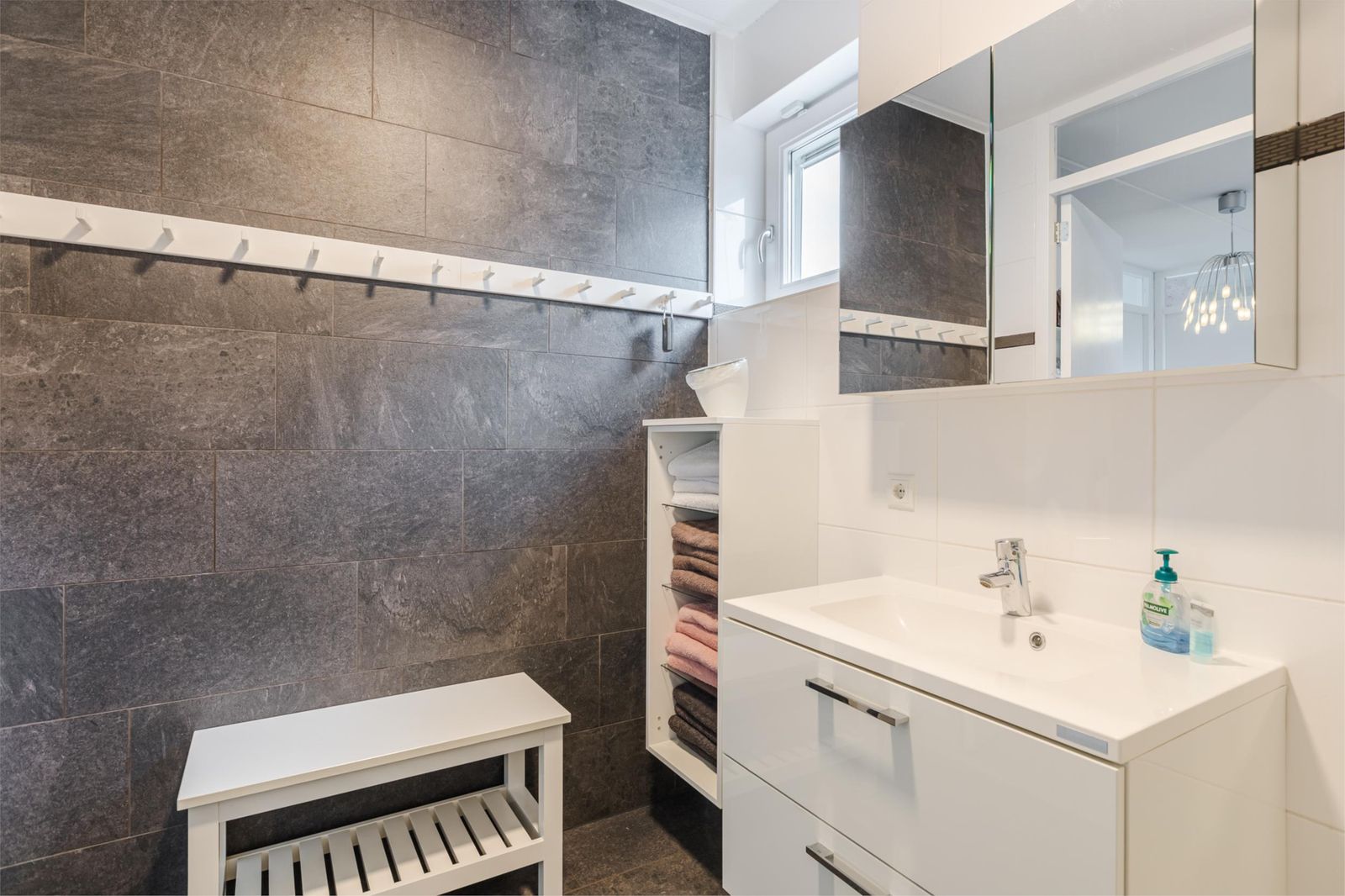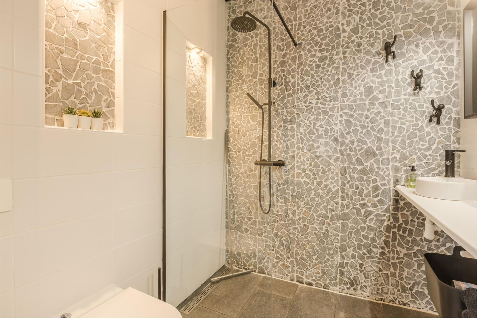 De badkamer is voorzien van een regendouche, hangend toilet en wastafel. Uiteraard ook voorzien van vloerverwarming.