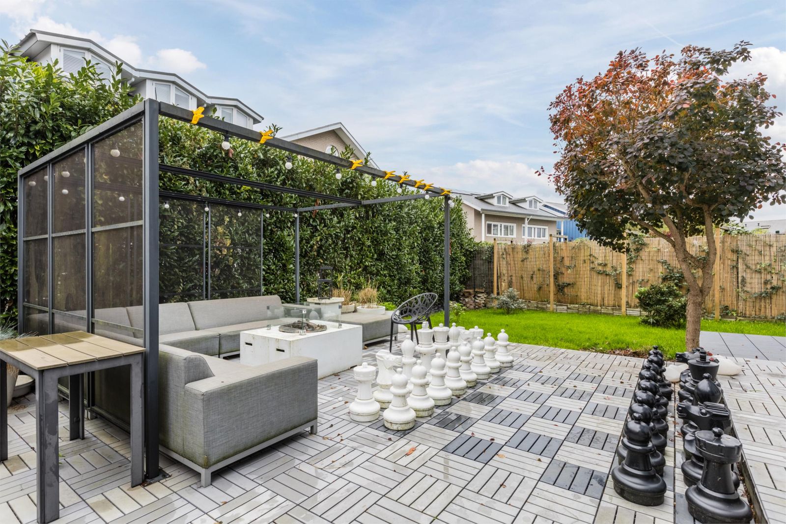 Doordat de woning rondom over veel buitenruimte beschikt, is er altijd een fijne plek in de zon of in de schaduw te vinden.