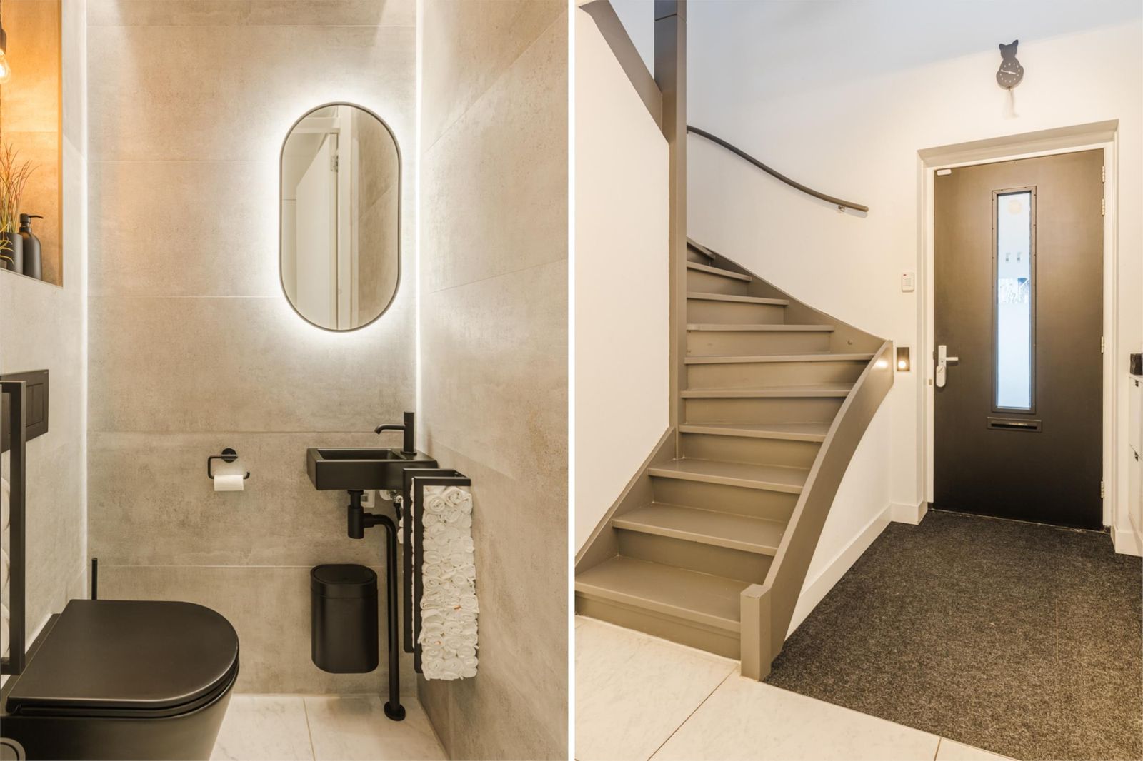 Op de verdiepingen ligt hoogwaardig PVC, perfect geschikt voor vloerverwarming, onderhoudsvriendelijk, comfortabel en stijlvol. De woning beschikt over drie luxe badkamers en ruime slaapkamers, allen hoogwaardig afgewerkt en met oog voor detail ontworpen.