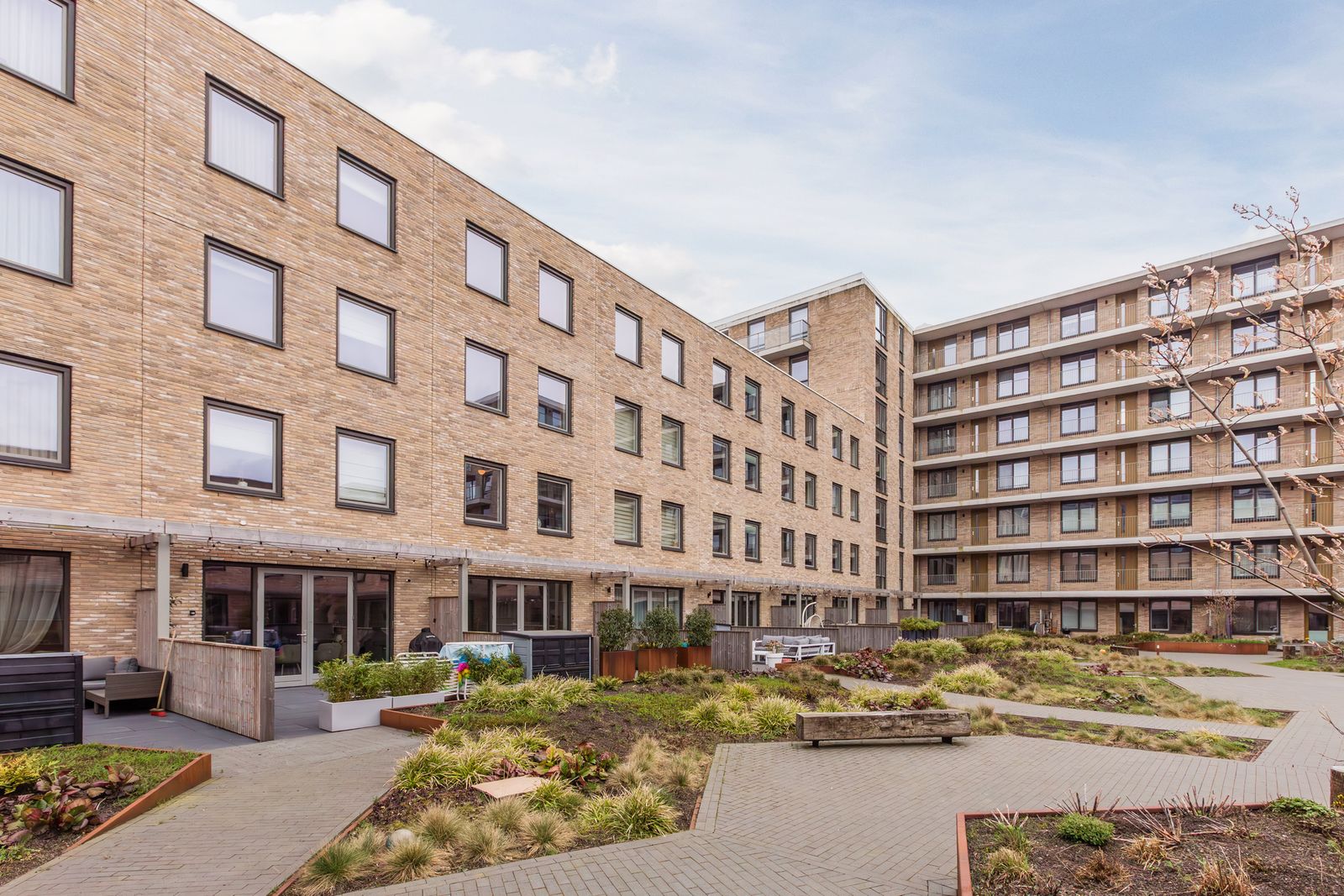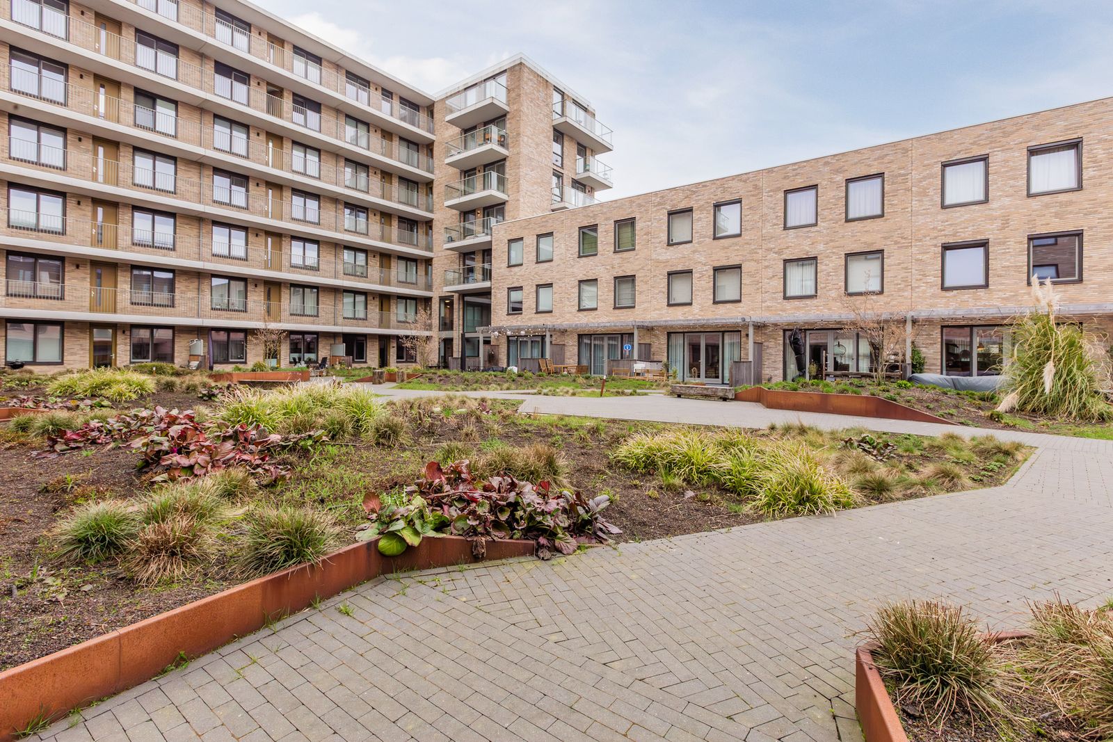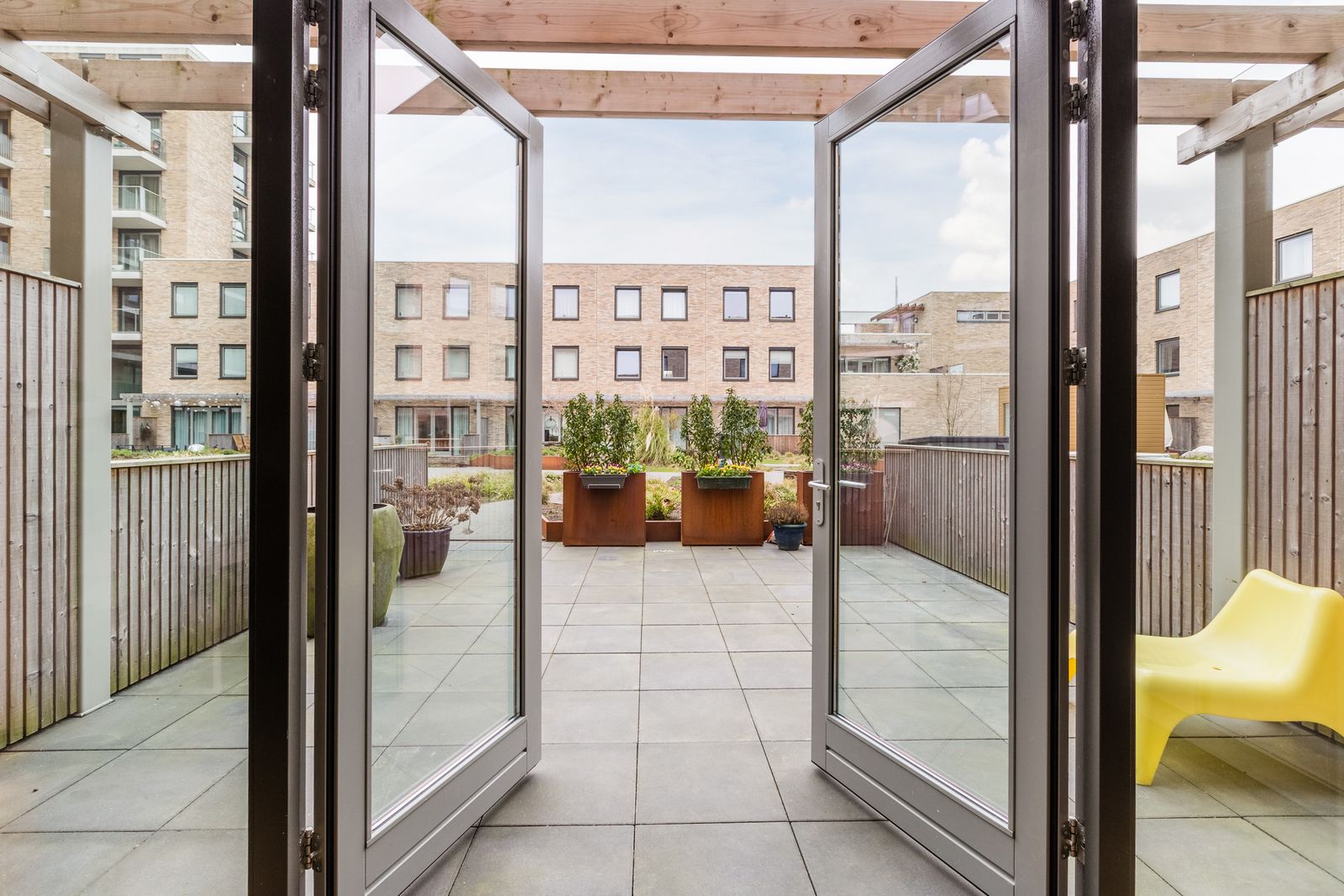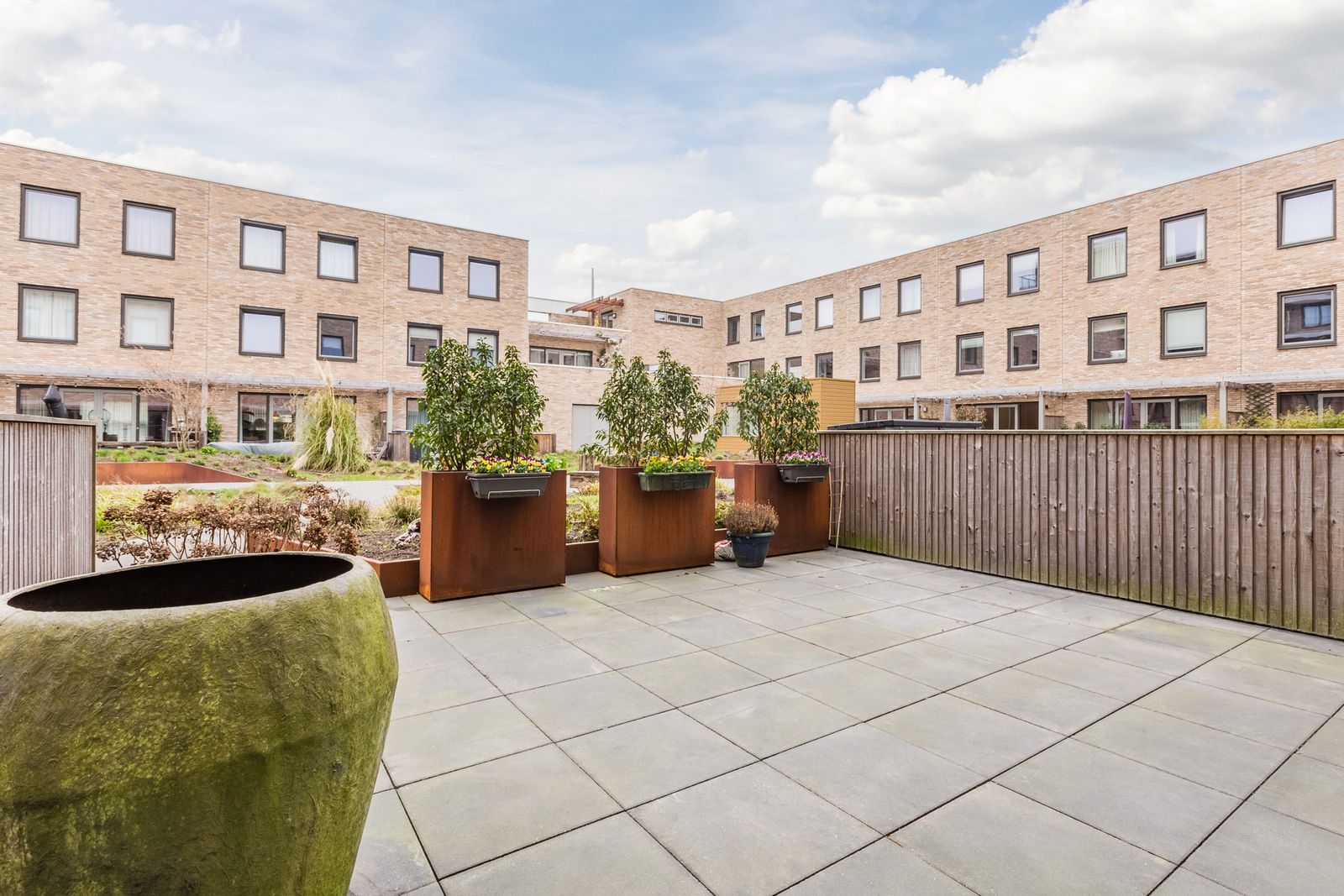 Via de openslaande deuren heb je toegang tot de betegelde achtertuin, direct grenzend aan de gemeenschappelijke, fraai aangelegde en professioneel onderhouden binnentuin. Aan de voorzijde van de woning bevindt zich een zonnig terras op het zuiden.