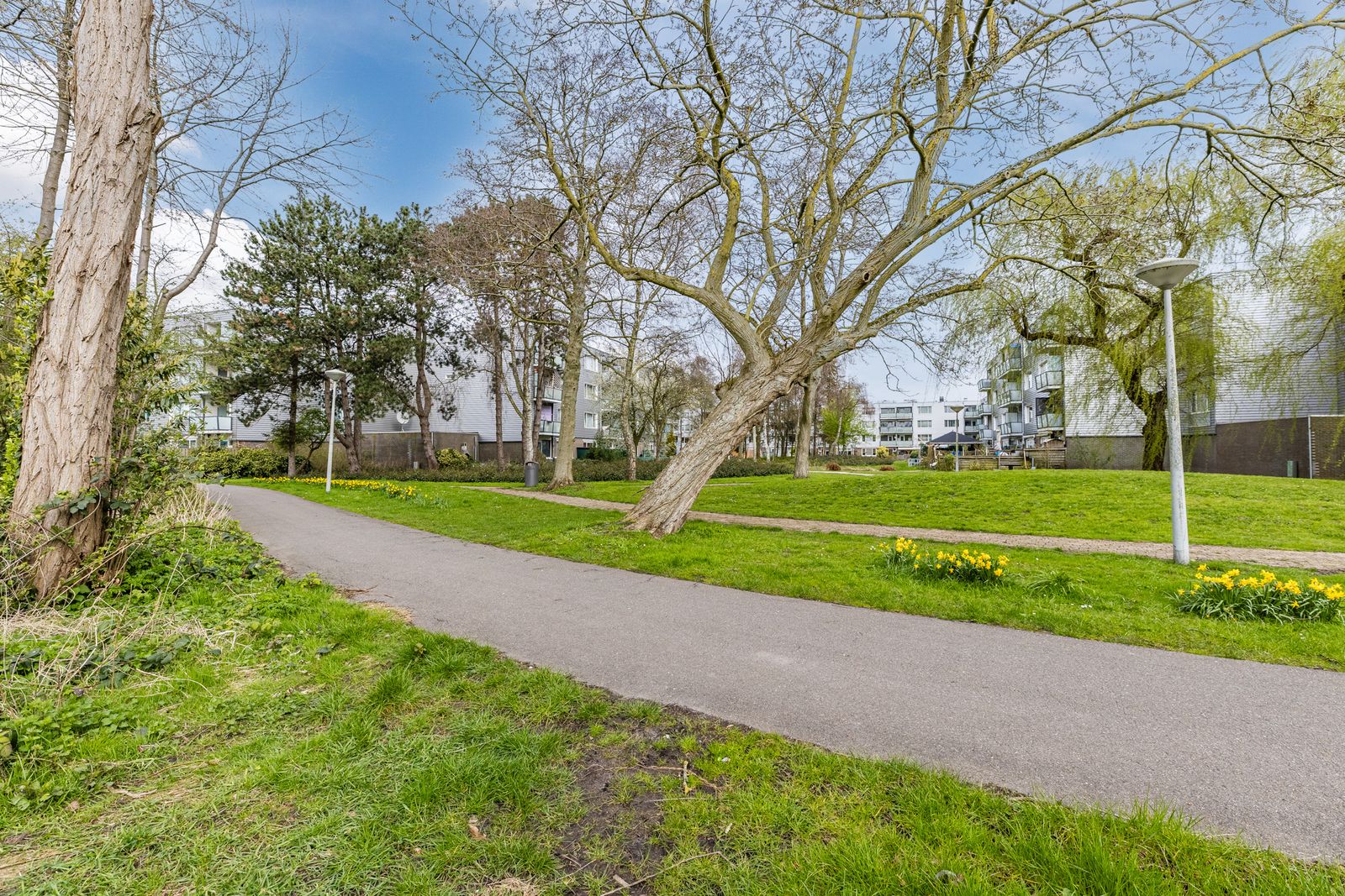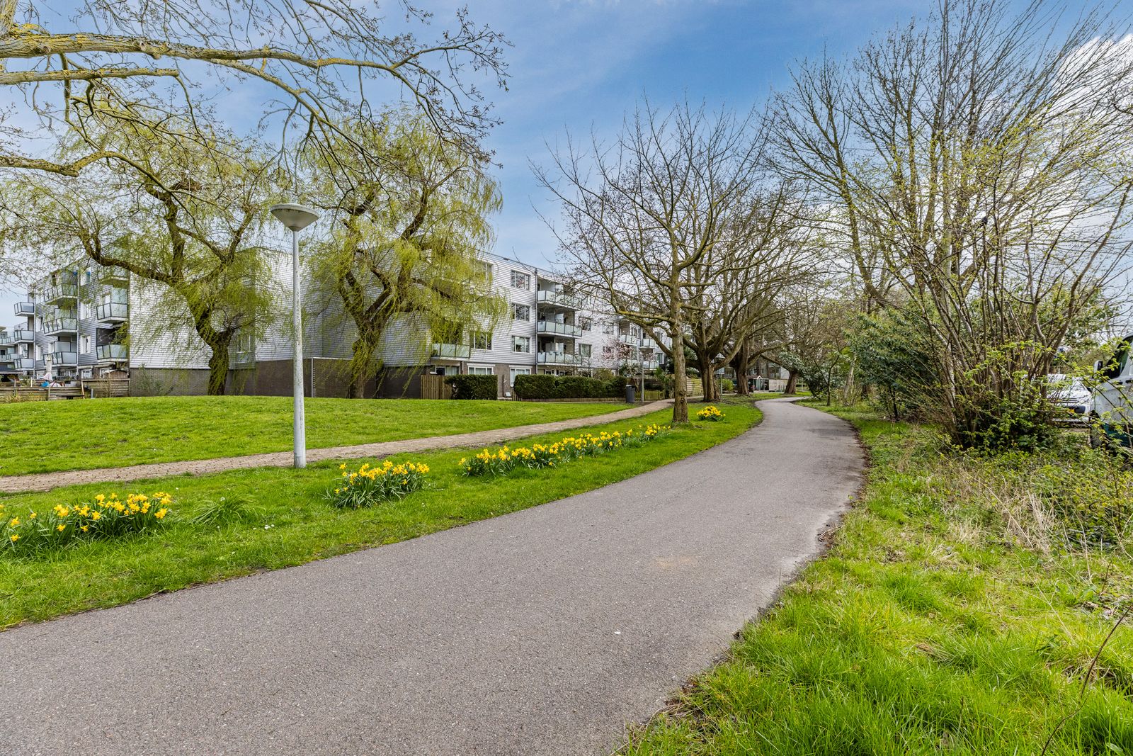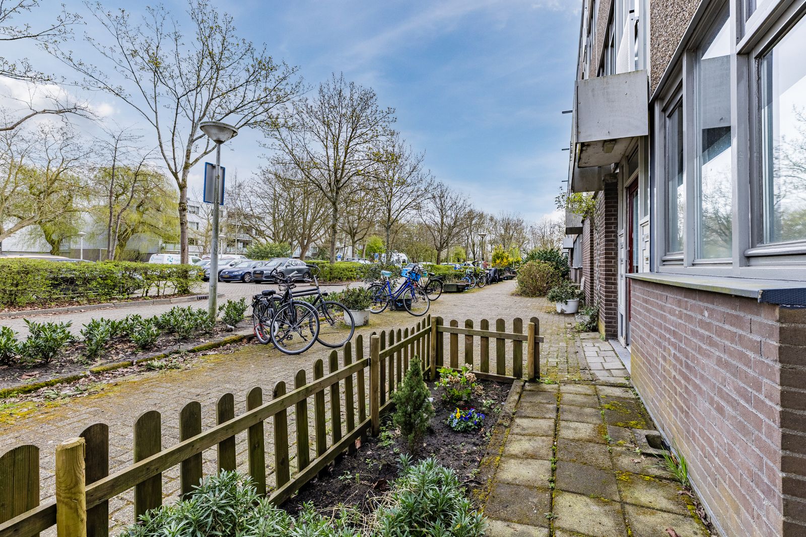 - aan rustige weg, in woonwijk, vrij uitzicht