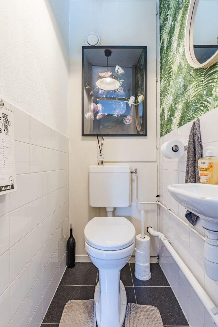 De woning beschikt over een apart toilet en een complete badkamer voorzien van een ligbad, douche, wastafel en aansluiting voor de wasmachine. De royale woonkamer vormt het hart van de woning en is heerlijk licht. De open keuken is uitgerust met diverse inbouwapparatuur en sluit naadloos aan op de leefruimte, wat zorgt voor een fijne, open sfeer.