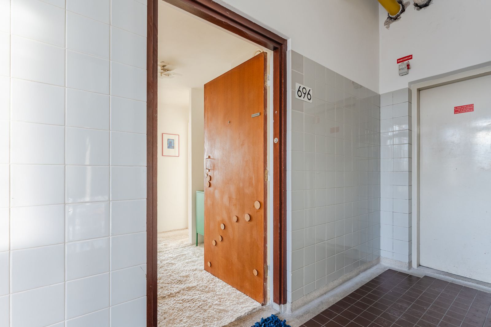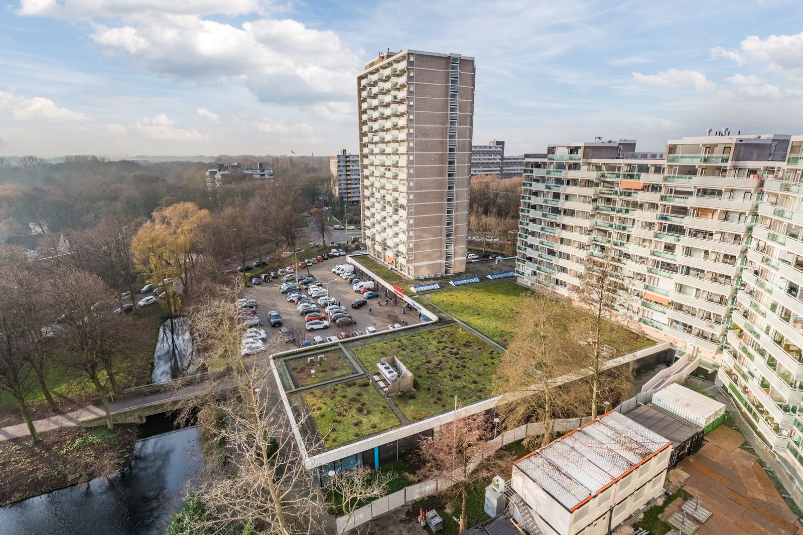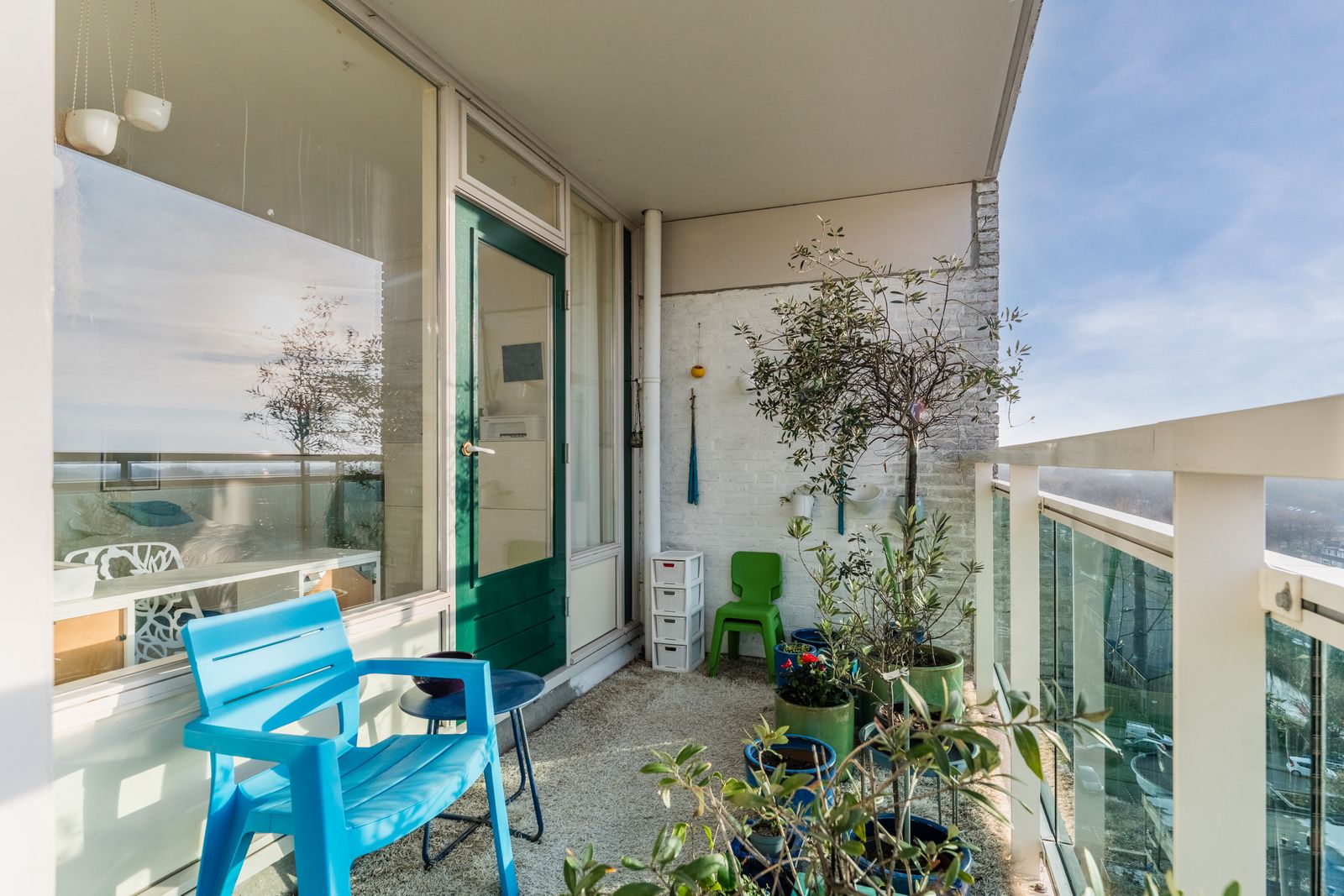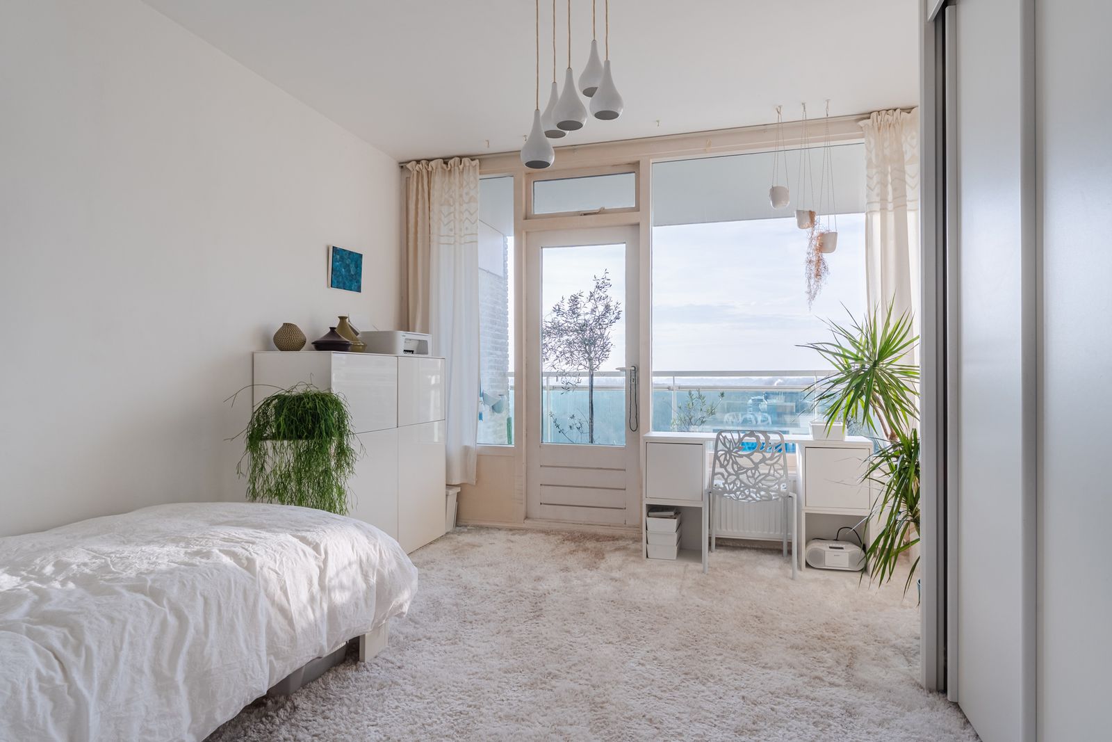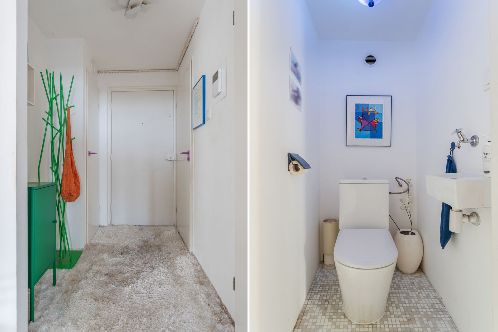 De woning bevindt zich op de elfde verdieping, waar maar een appartement is en er dus geen buren zijn. Door de ligging aan het groen zijn er ook geen overburen waardoor er nergens inkijk is.