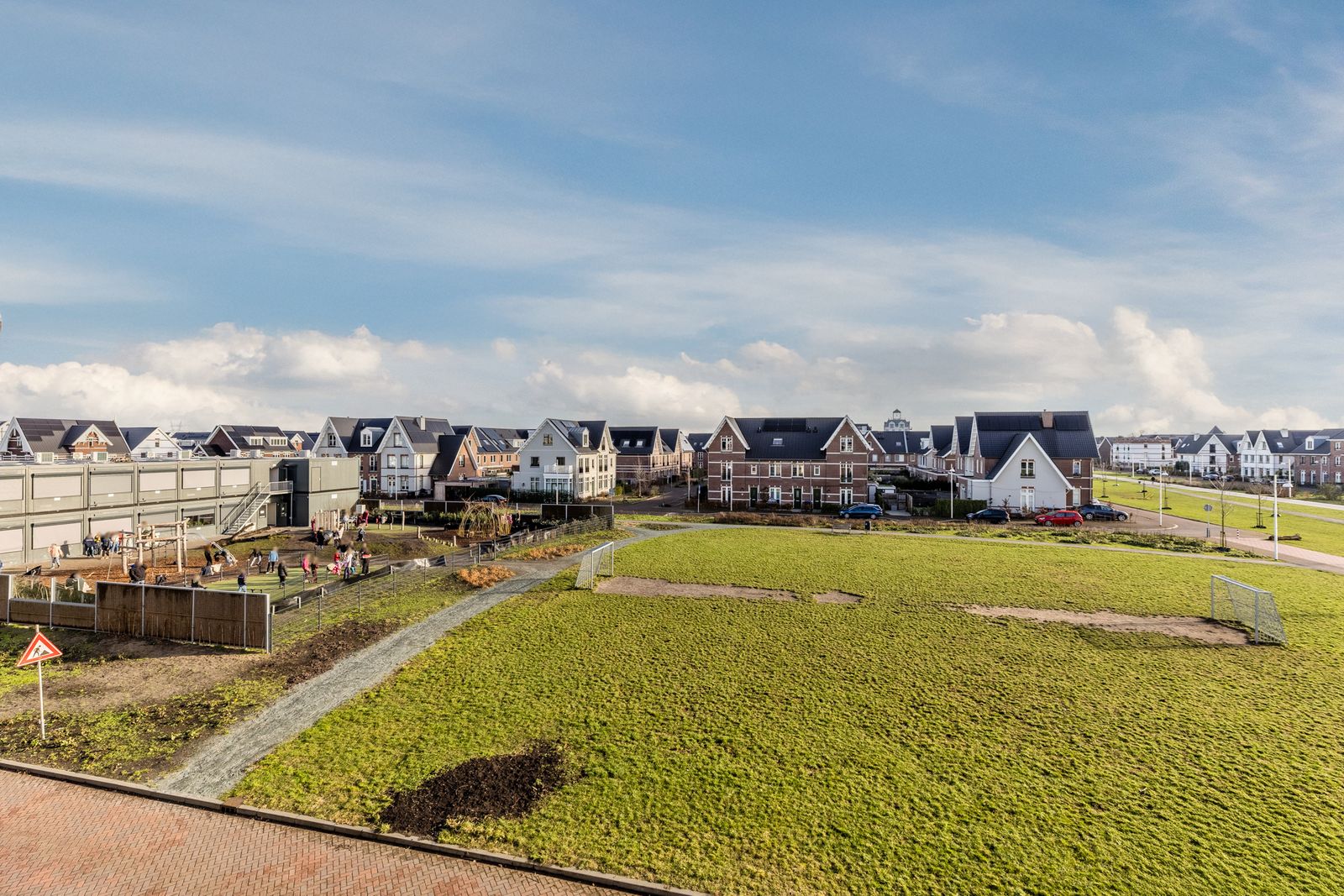 - aan park, aan rustige weg, in woonwijk, vrij uitzicht